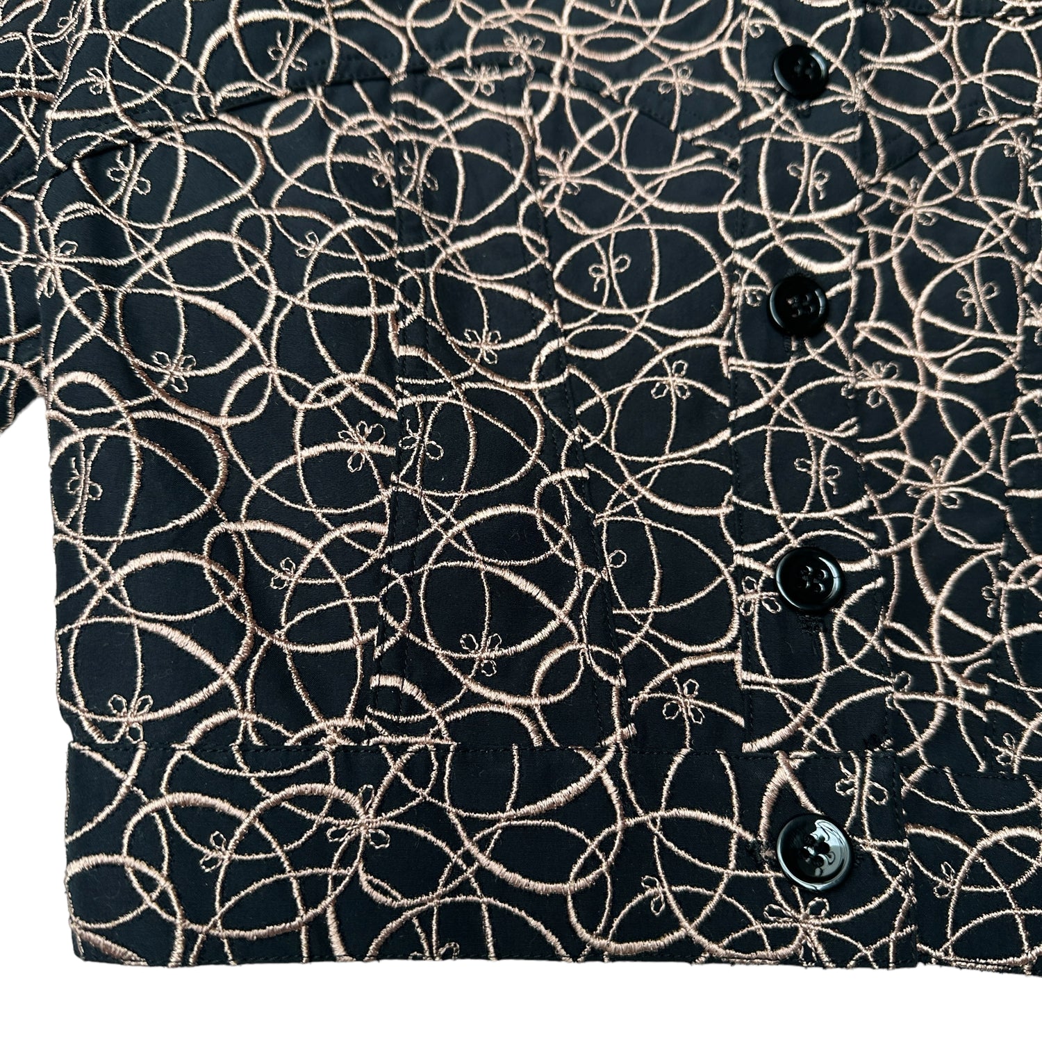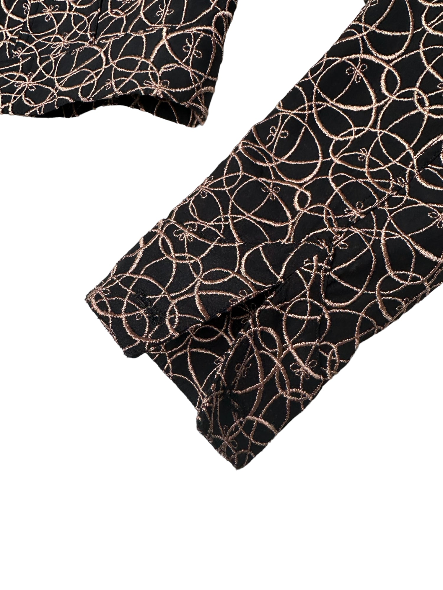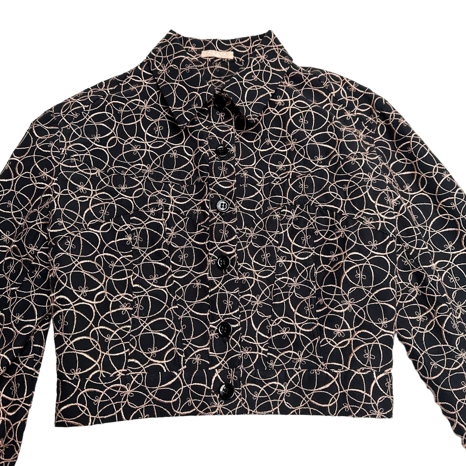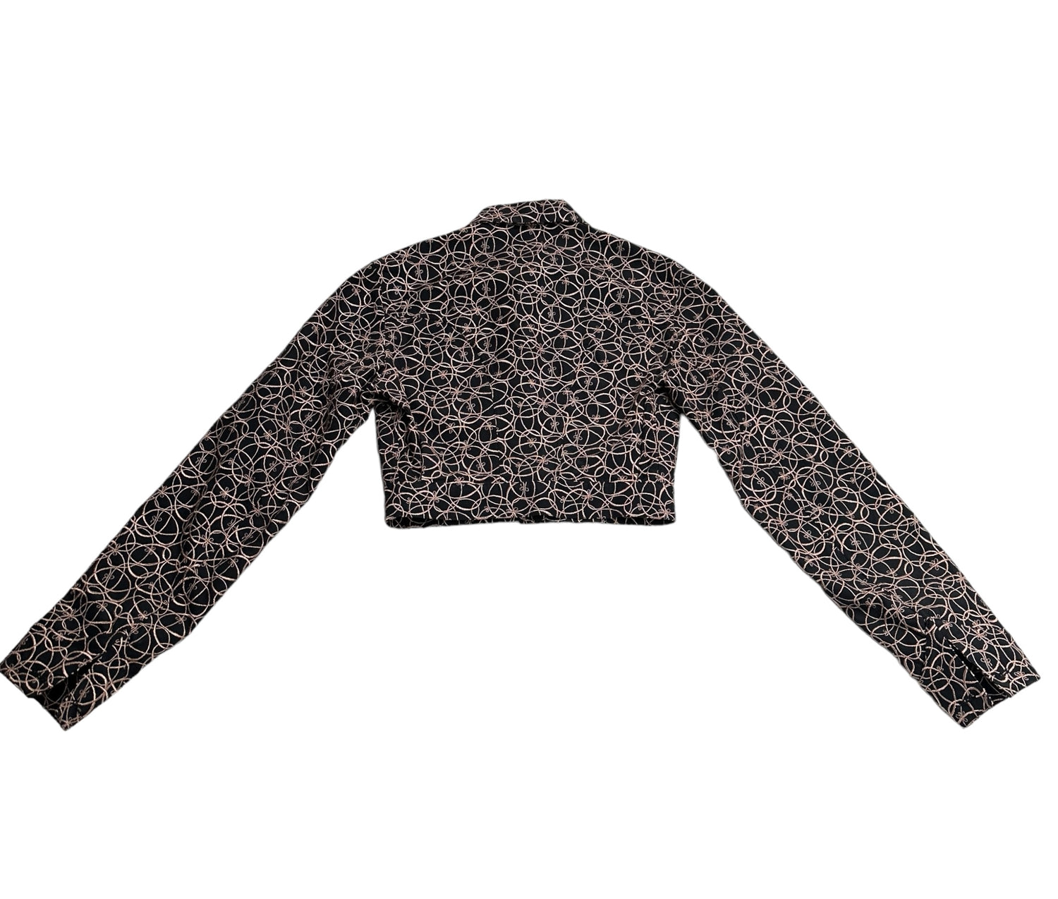 Alaia black cropped jacket with pink embroidery. Pointed collar. Button closure at front. Designer size 38.