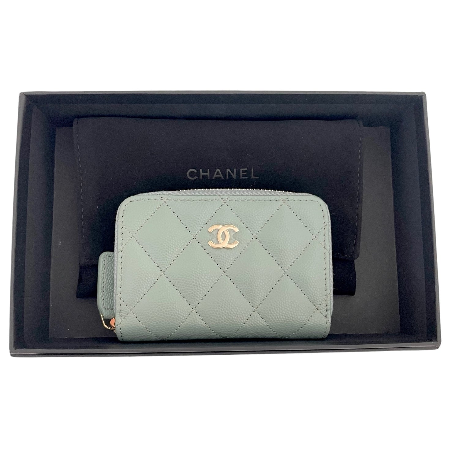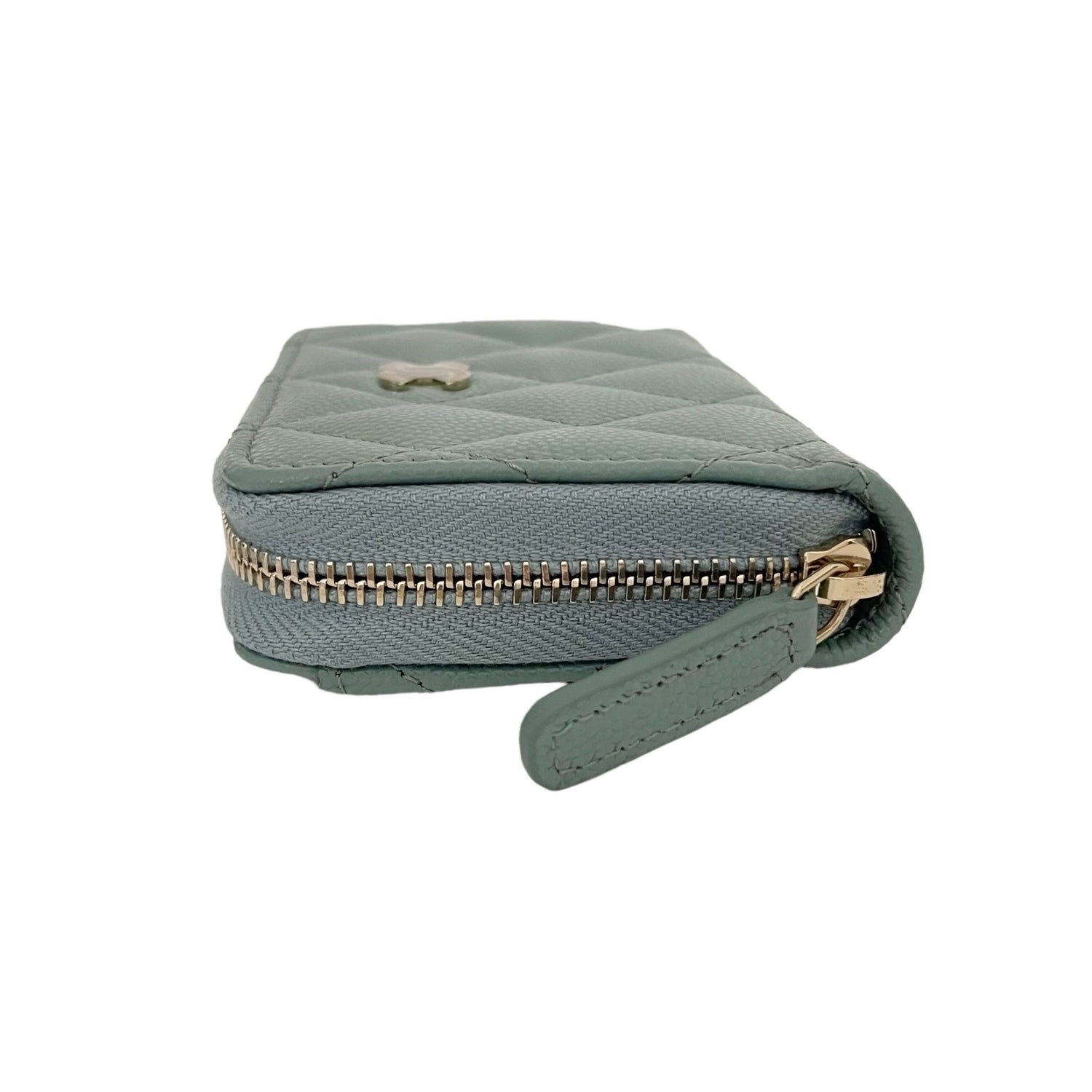 Chanel 2022 compact wallet. Beautiful blue/grey caviar leather. Champagne hardware. Zip around closure.