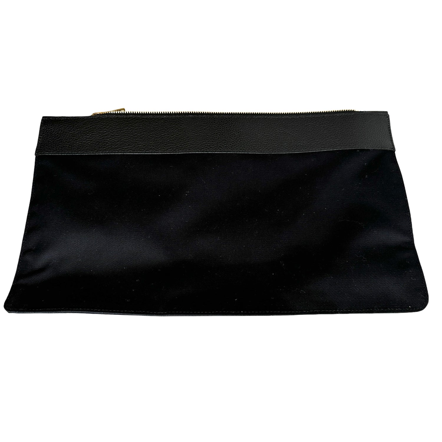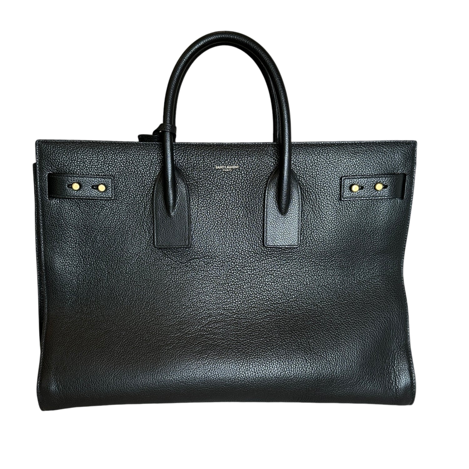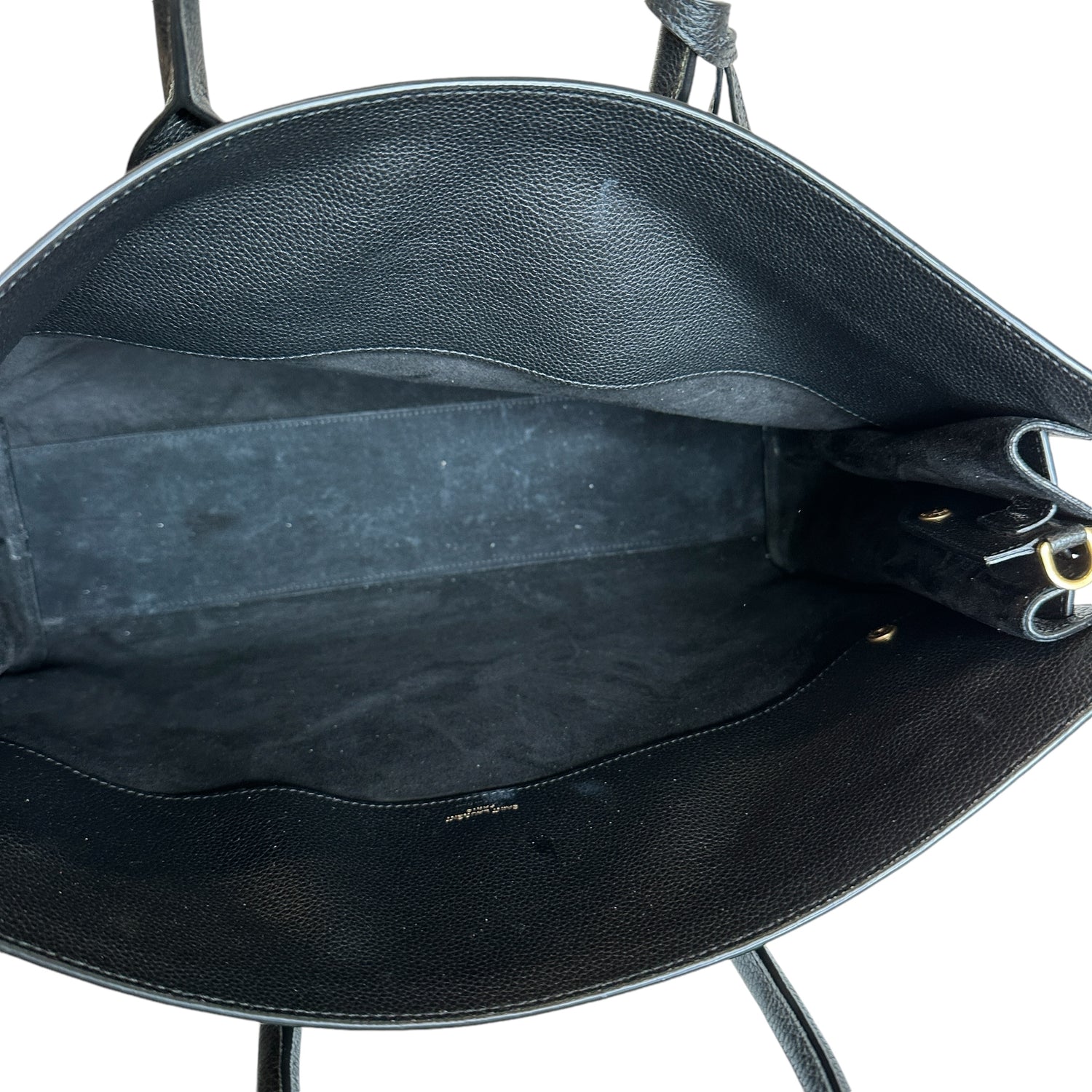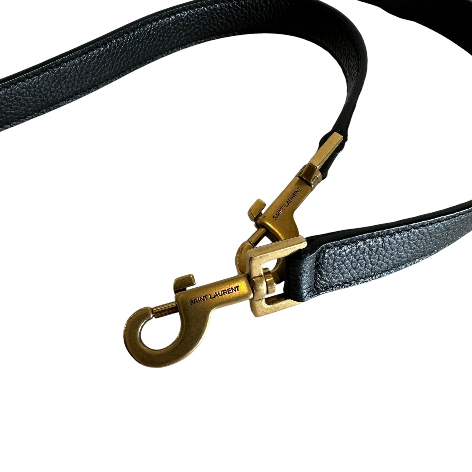 Saint Laurent 2024 Sac De Jour. Black leather. Brushed gold hardware. Pochette which divides the bag in two can be worn on its own. Leather and suede lining.