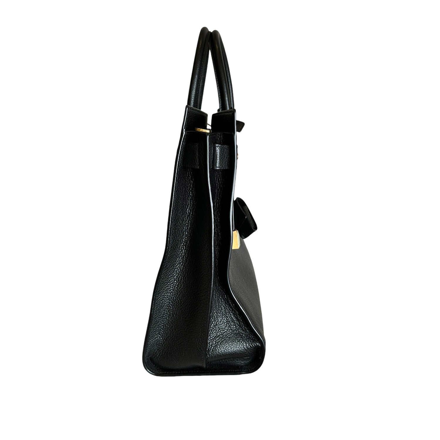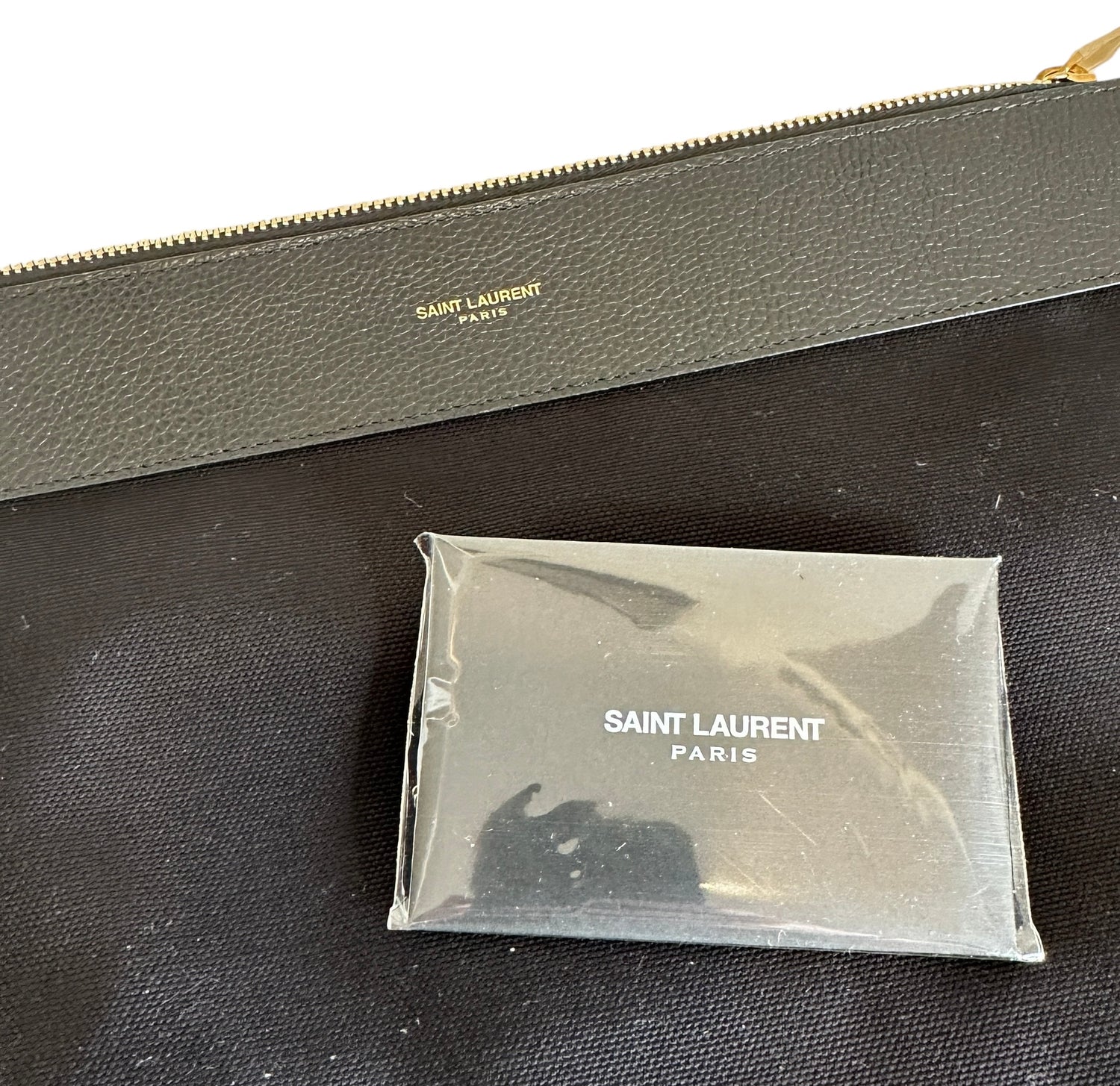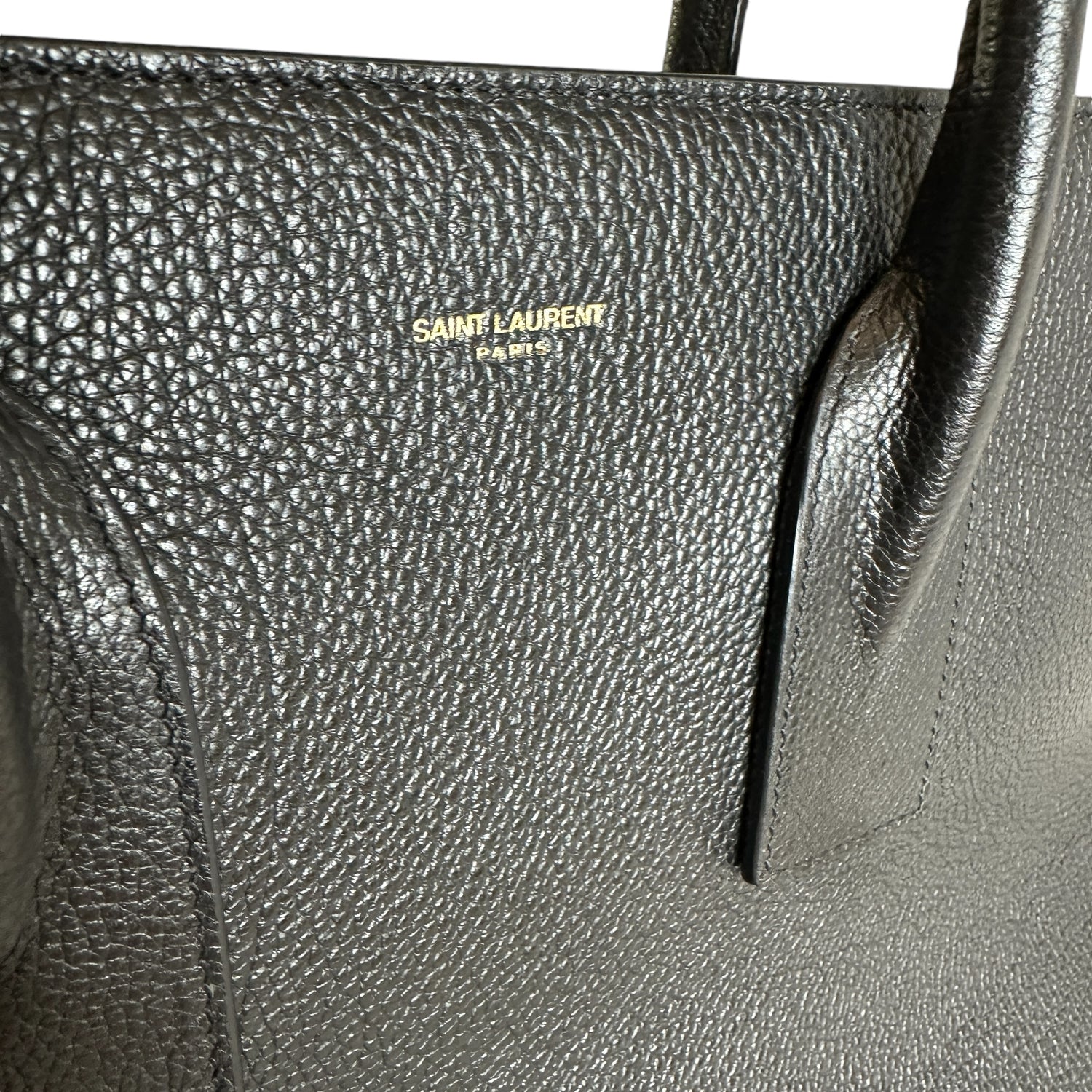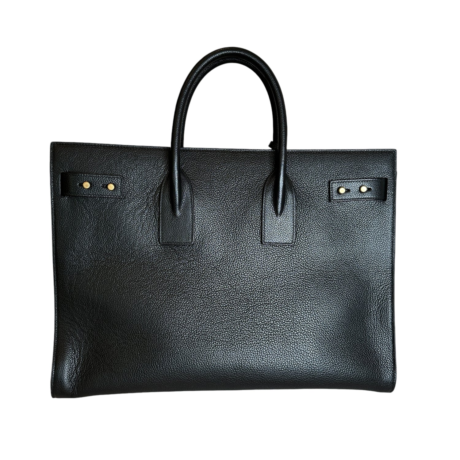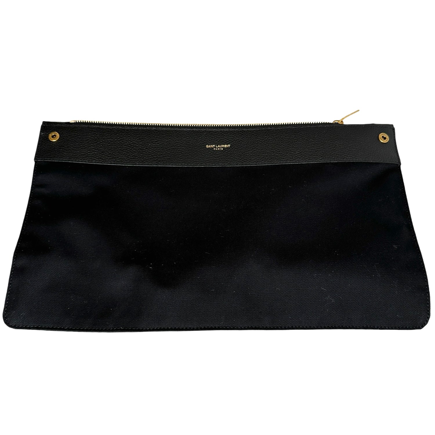 Saint Laurent 2024 Sac De Jour. Black leather. Brushed gold hardware. Pochette which divides the bag in two can be worn on its own. Leather and suede lining.