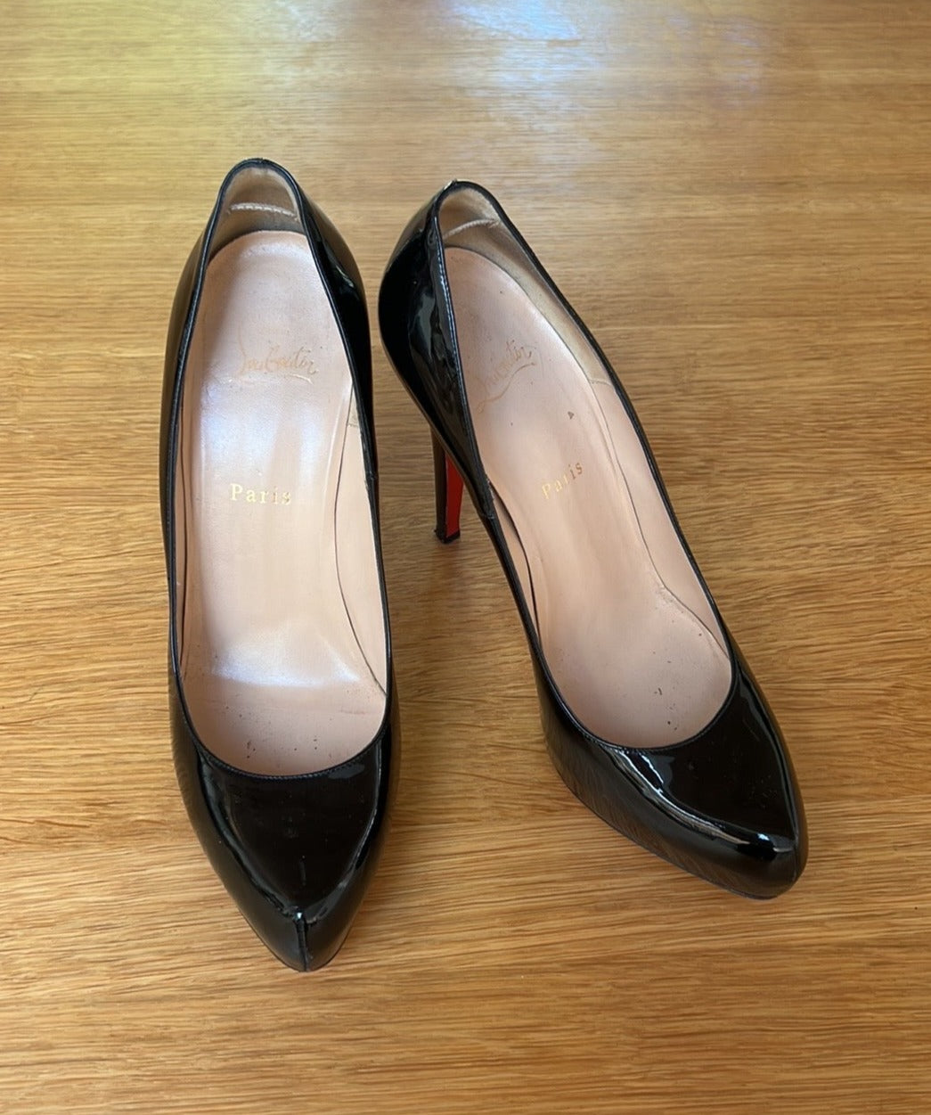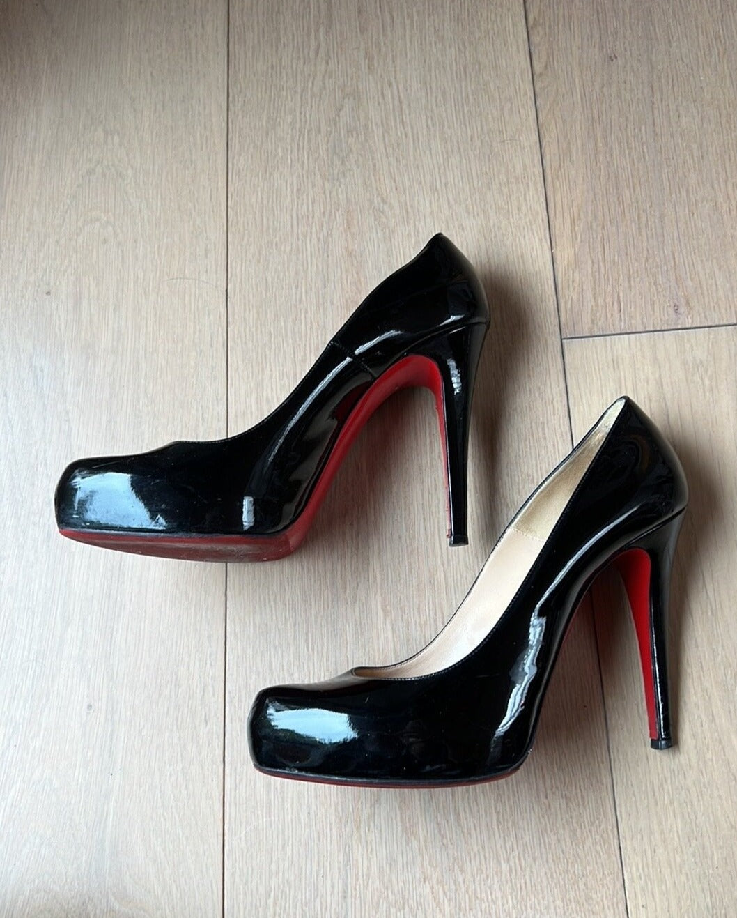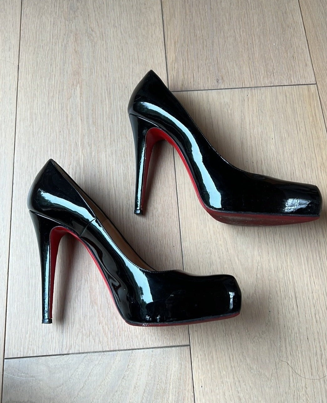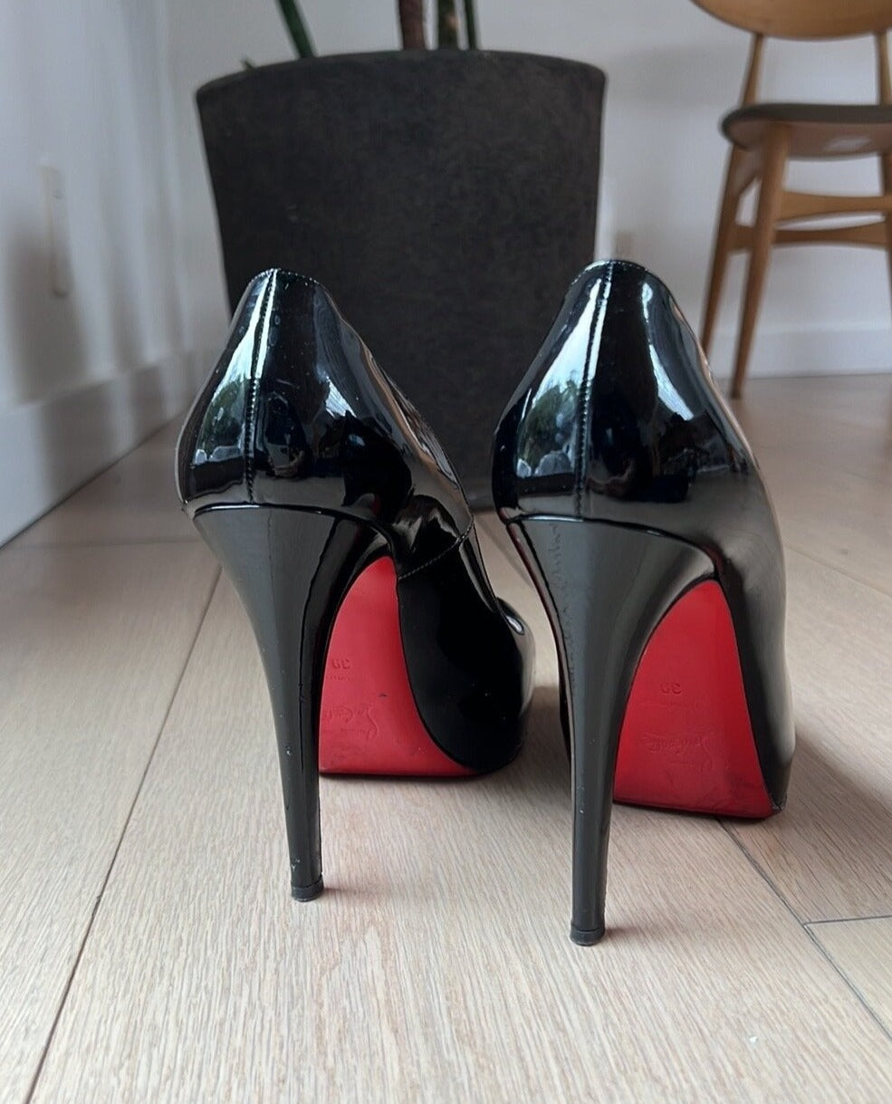 Details: Patent leather, iconic red bottoms. Comfortable thanks to added platform.
