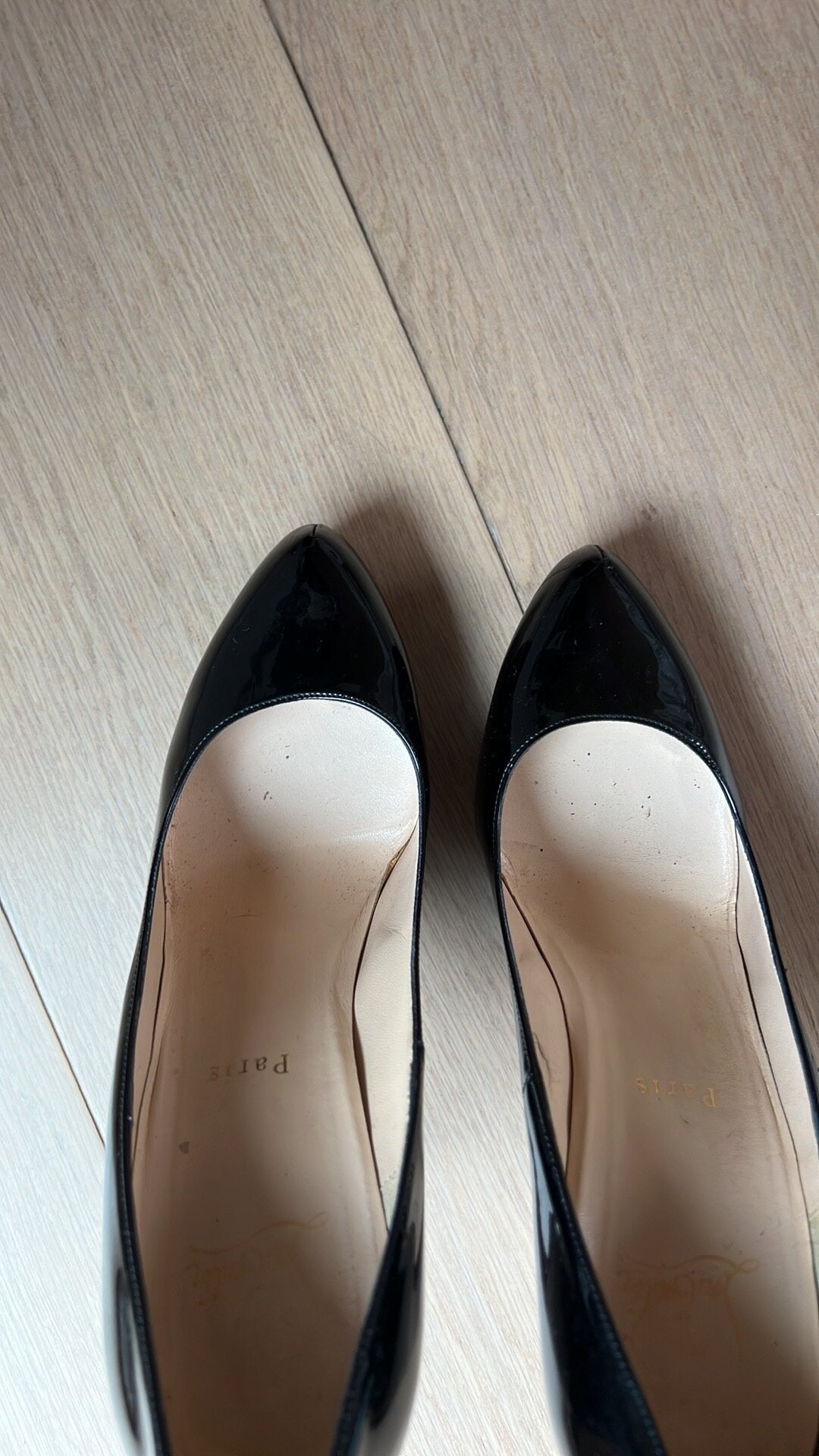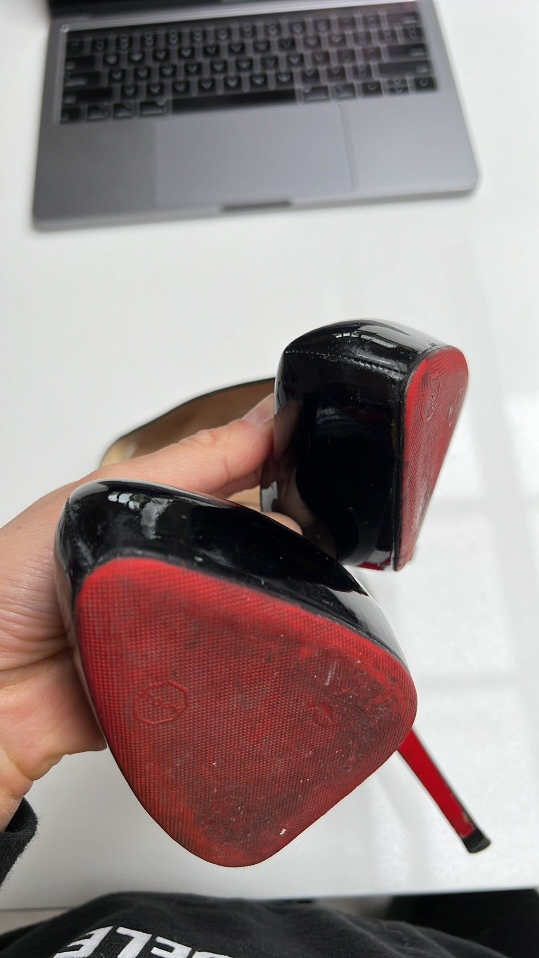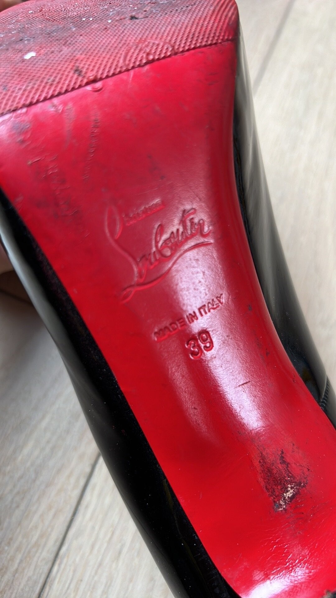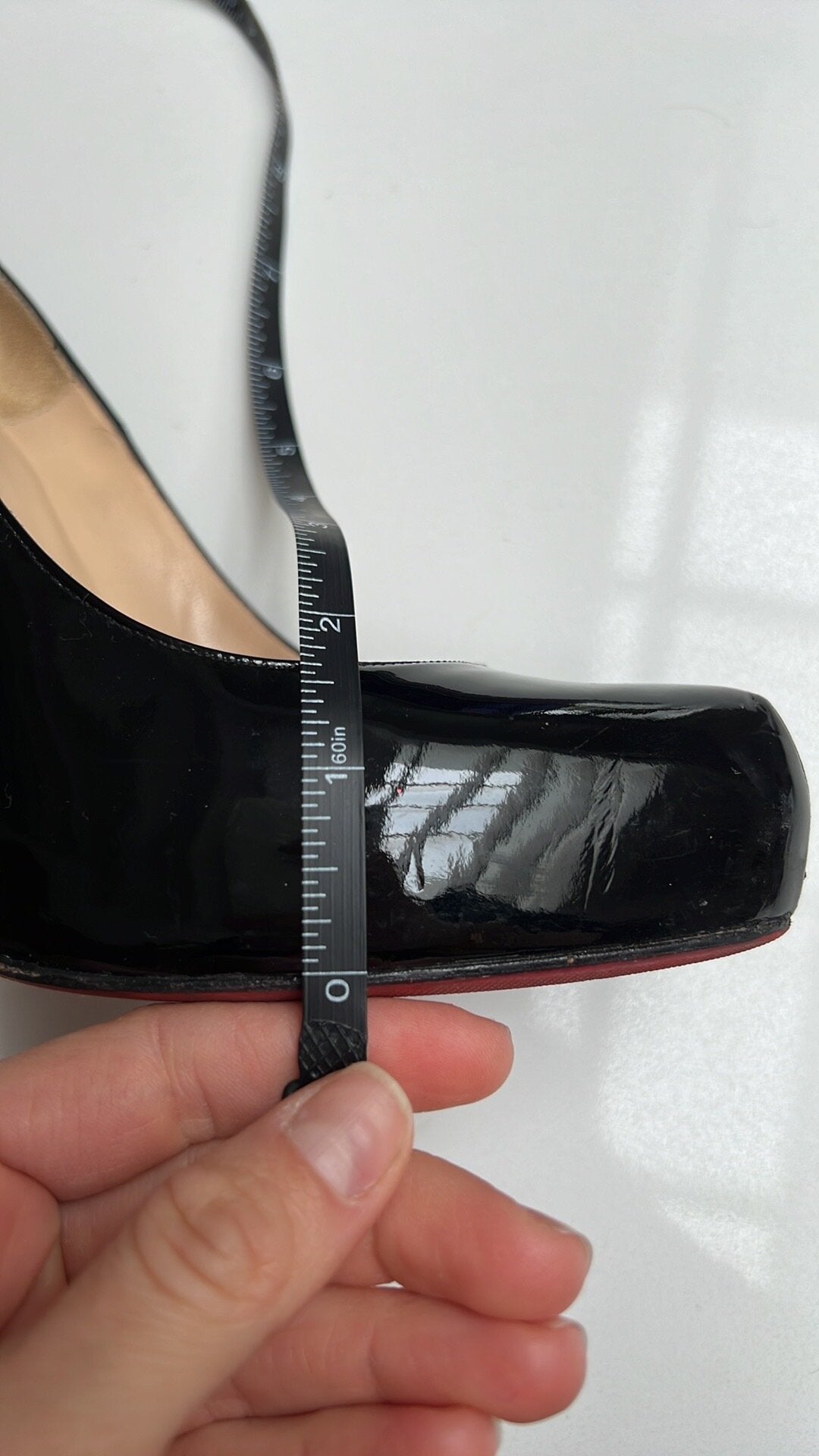 Details: Patent leather, iconic red bottoms. Comfortable thanks to added platform.