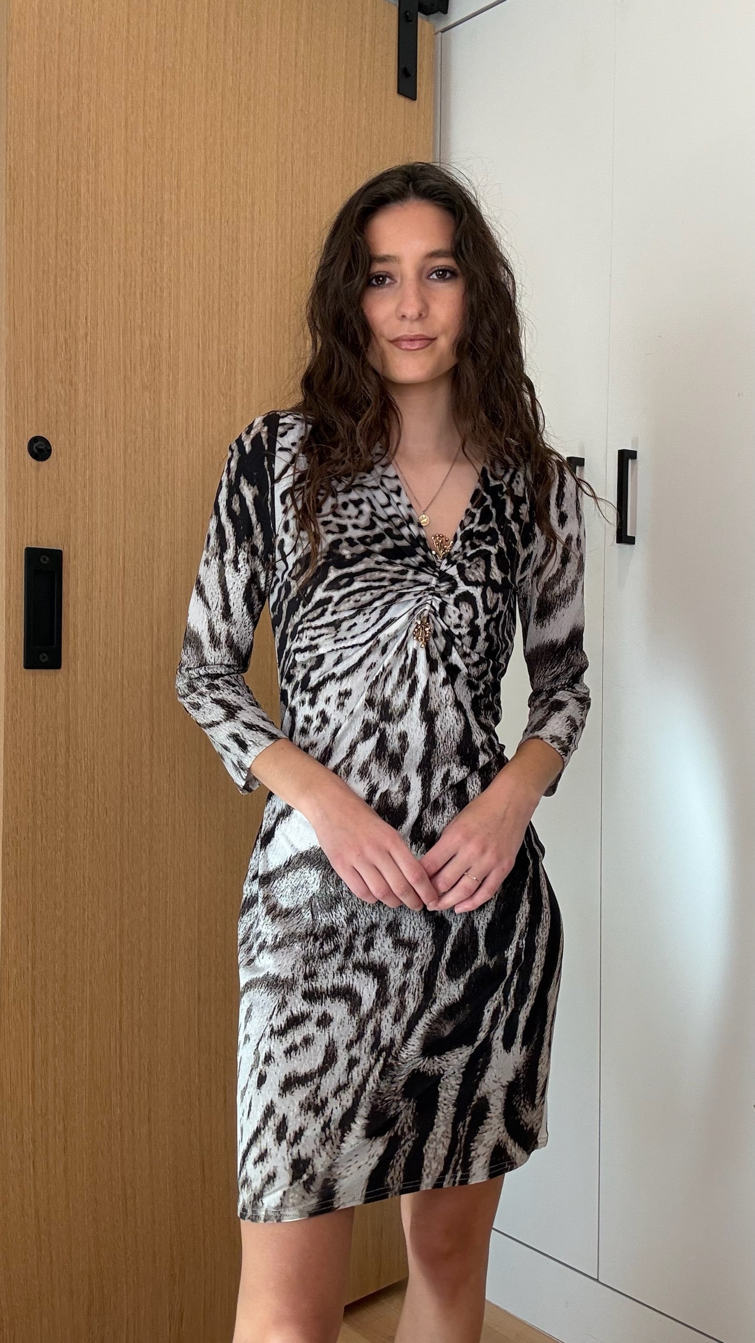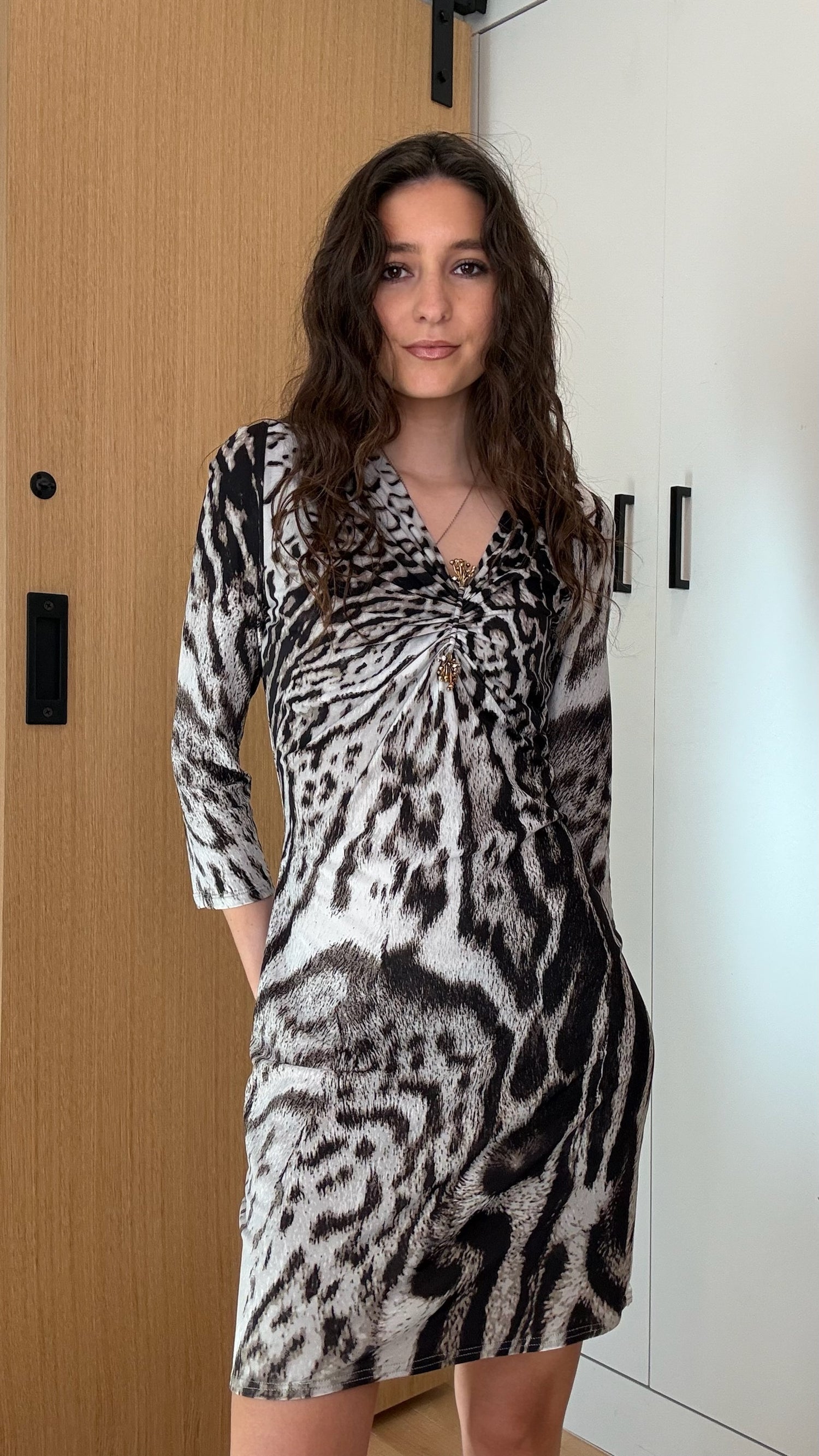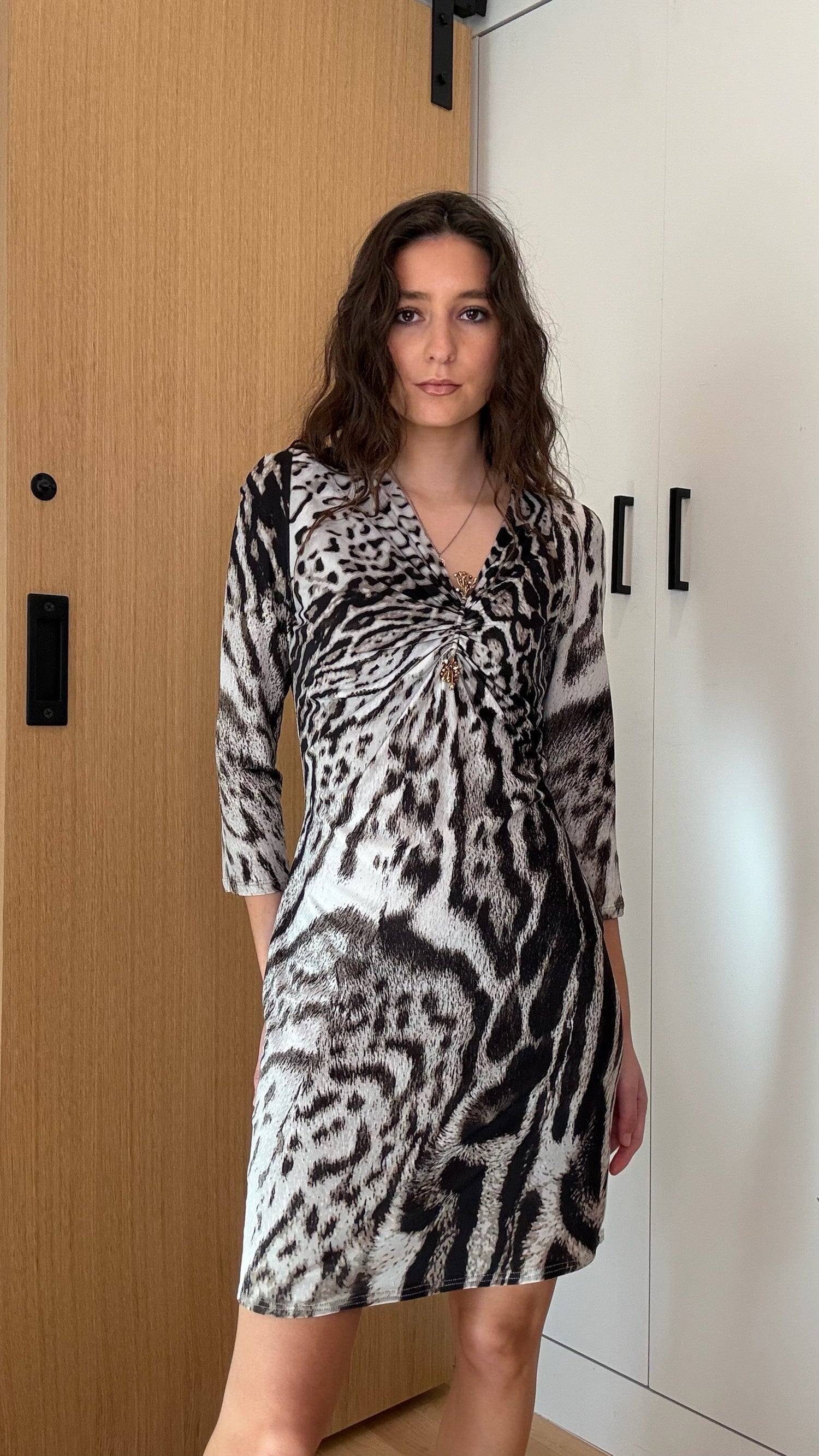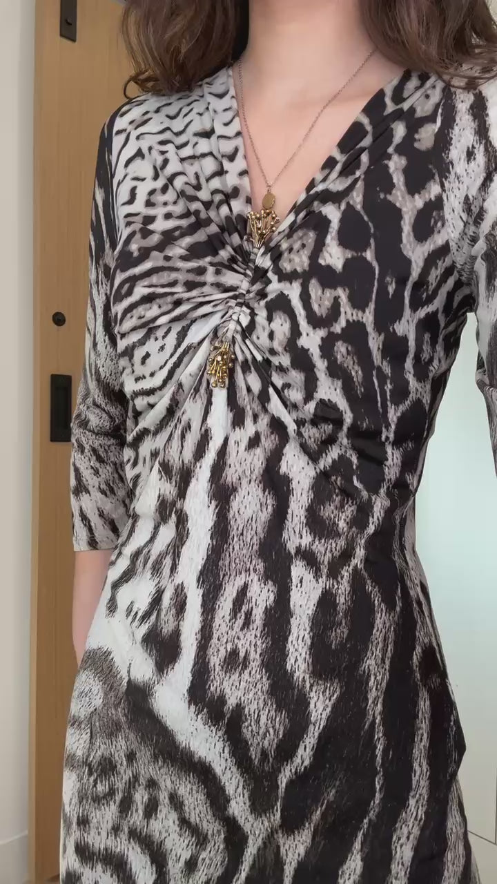 Just Cavalli animal print dress. Crystal and metal detail at front. Stretchy.