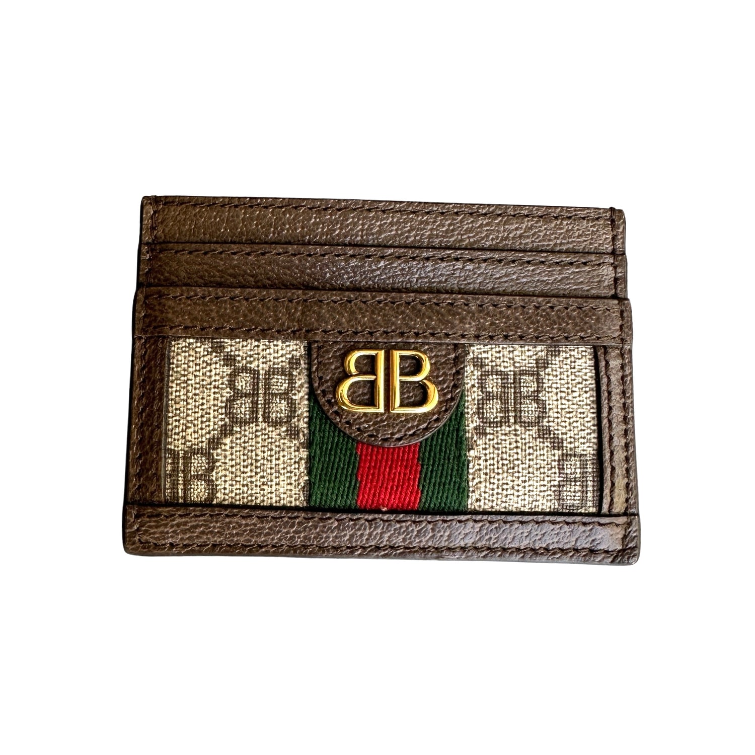 Balenciaga x Gucci "the Hack" cardholder. Coated canvas with brown leather.