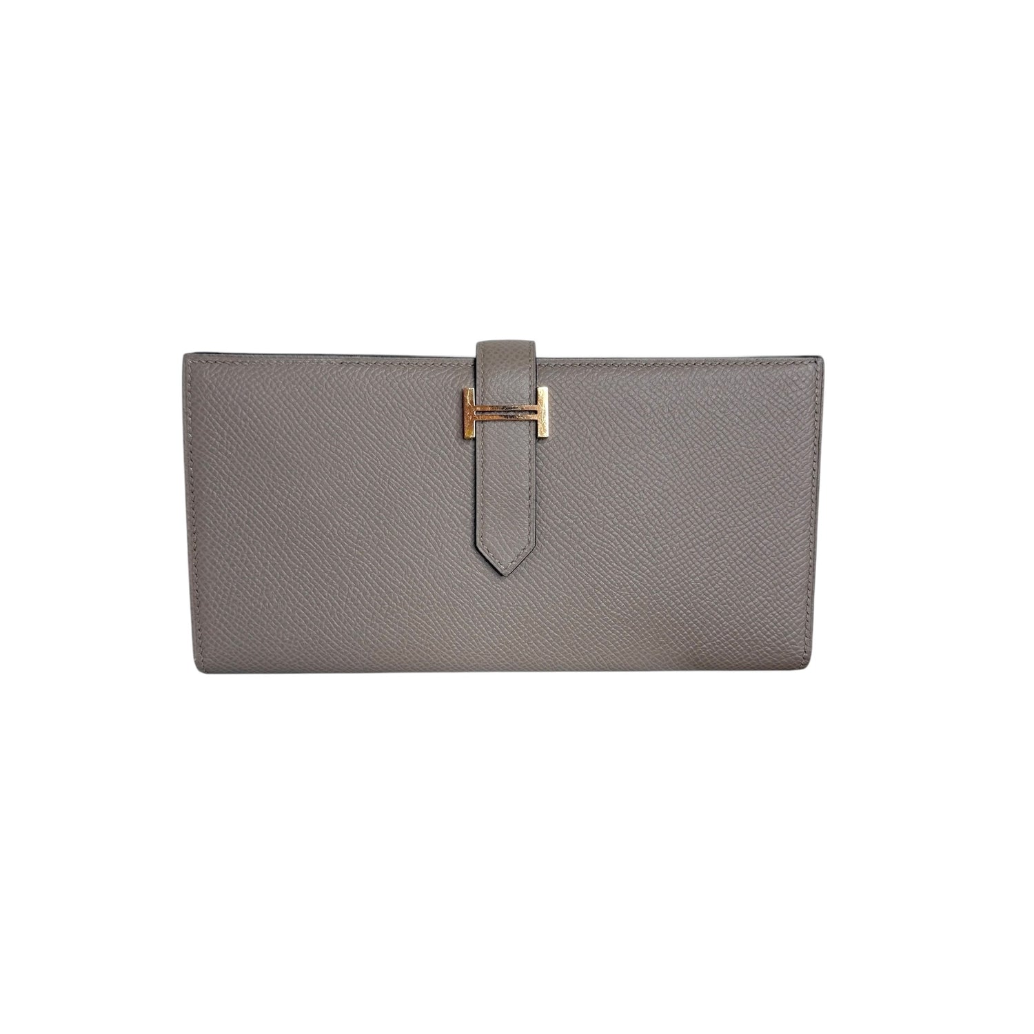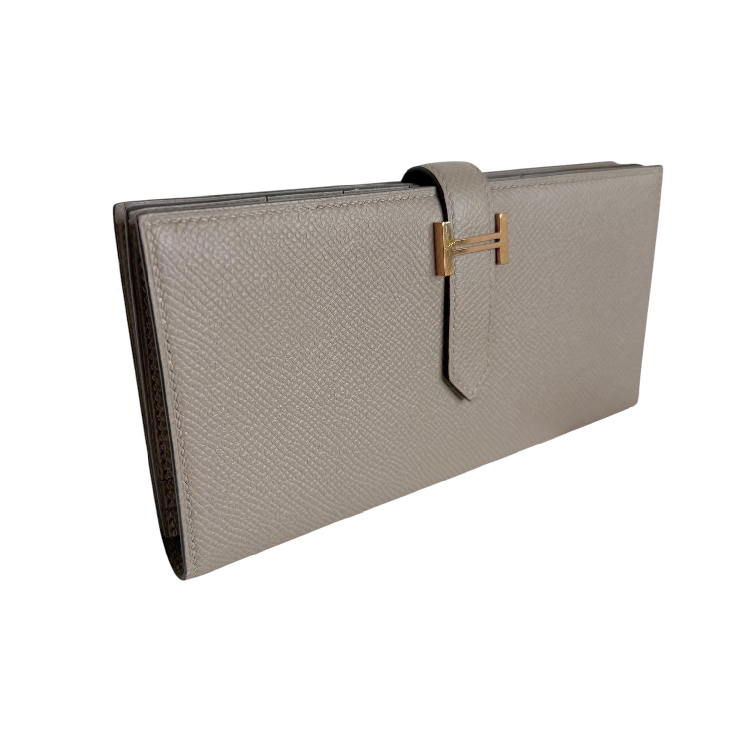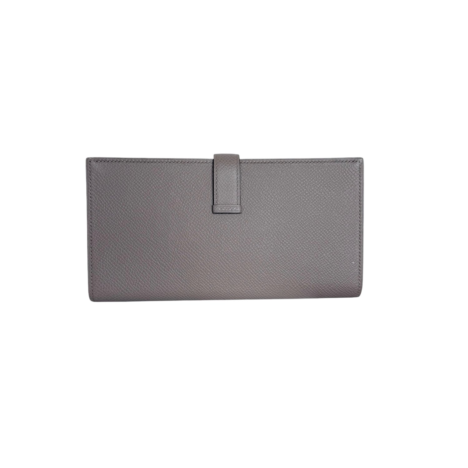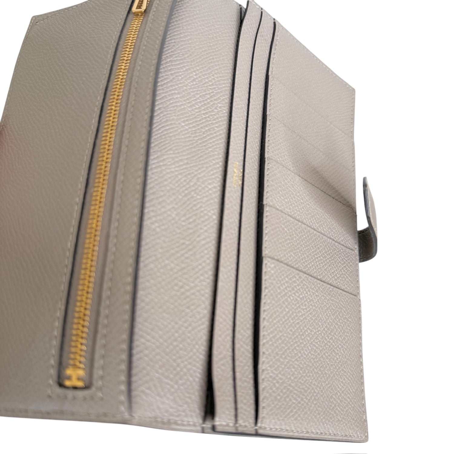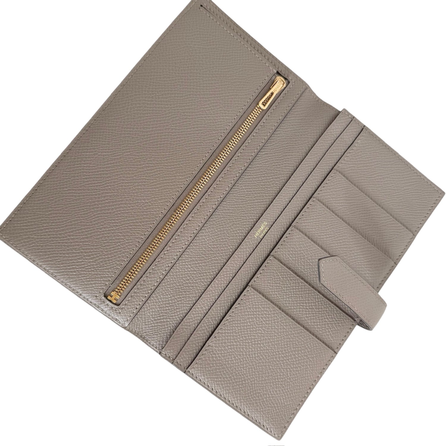Hermes Bearn wallet. Etain Epsom leather and rose gold hardware. Multiple compartments. One zipper pockets.