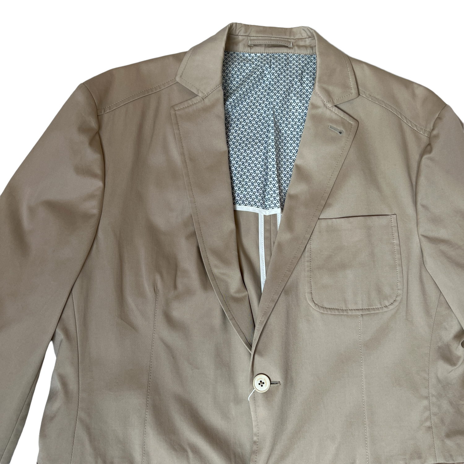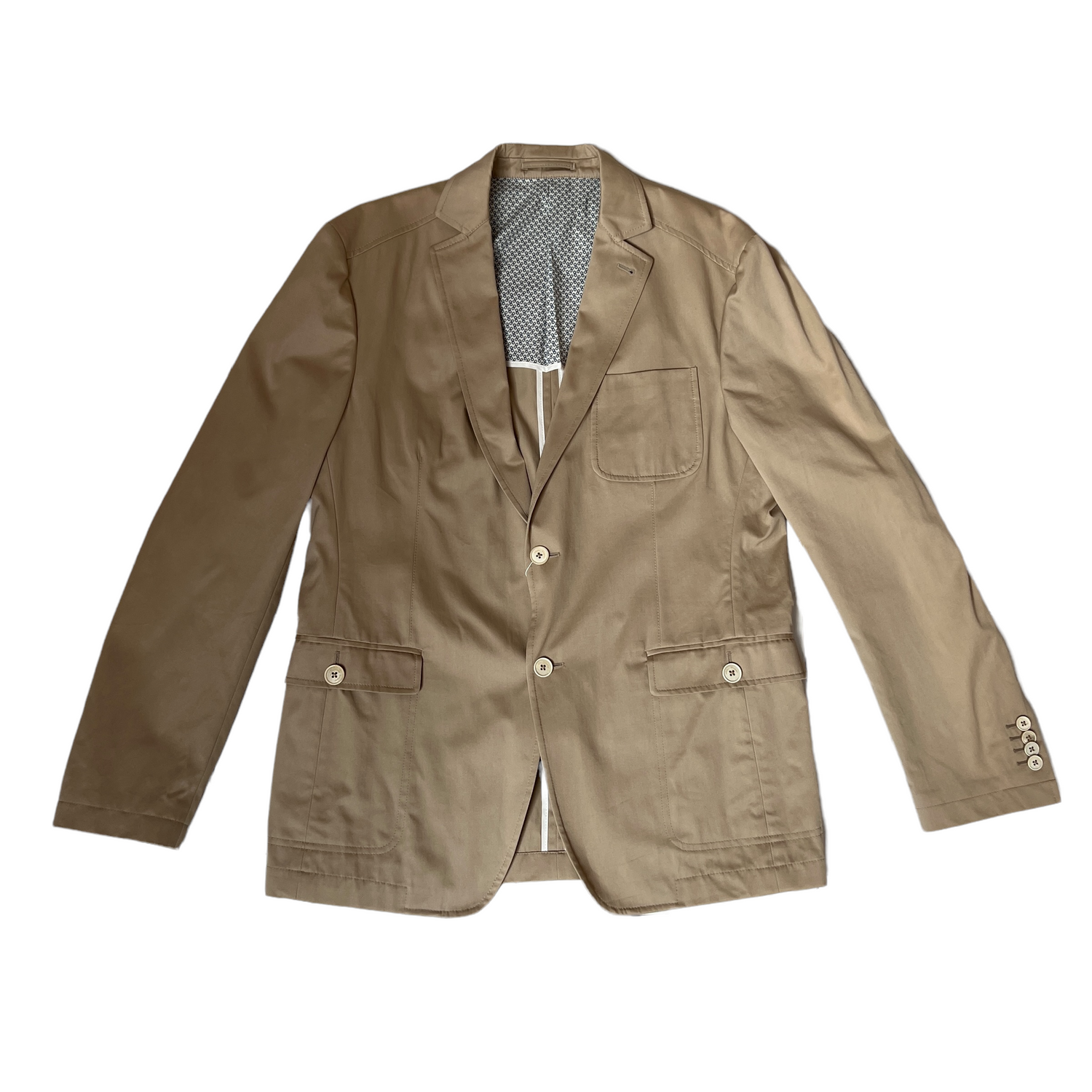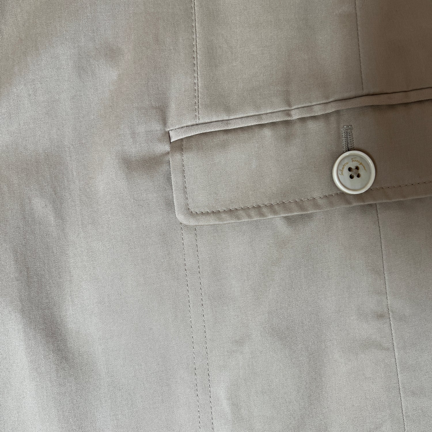 Salvatore Ferragamo Beige Cotton Blazer. Three exterior pockets. Two interior pockets. Two front button closure. Designer size 54 (US 44).