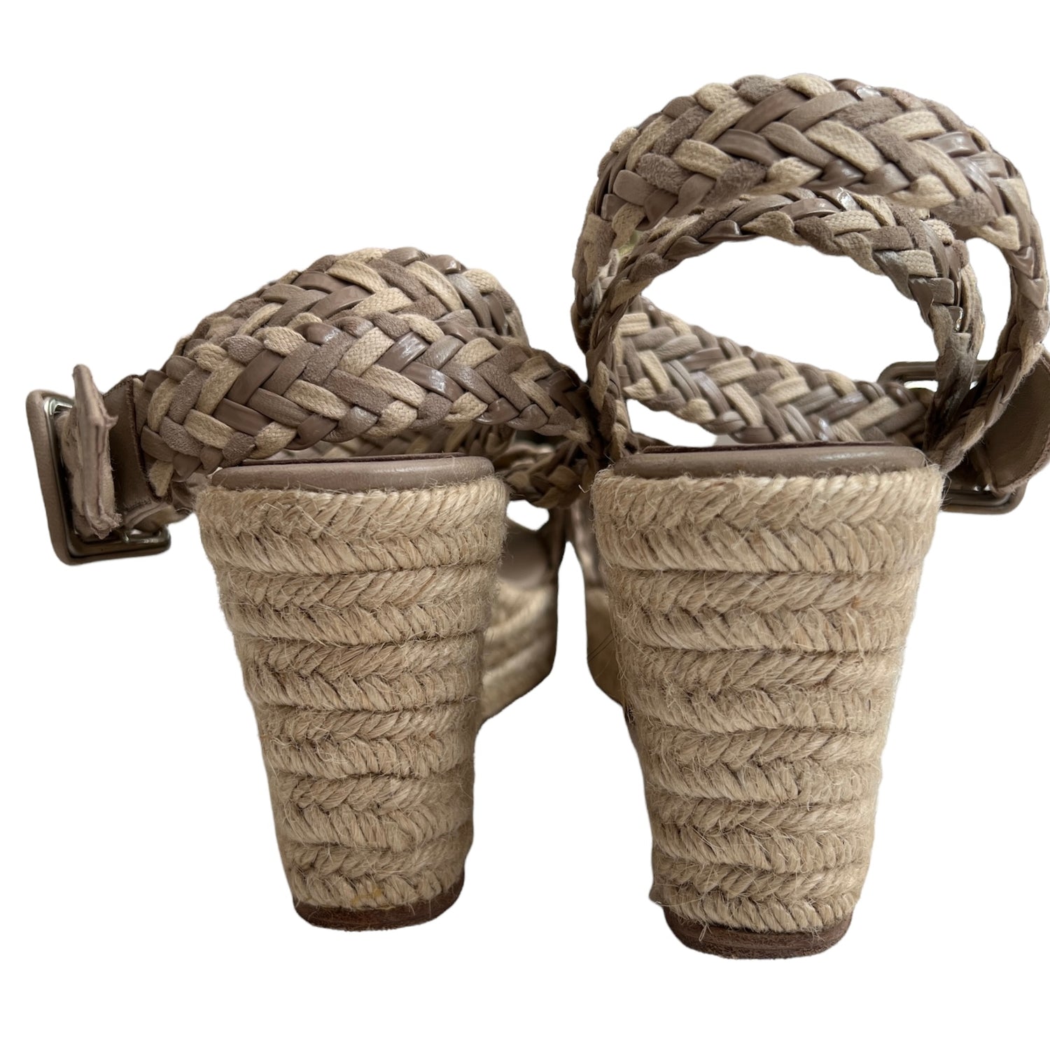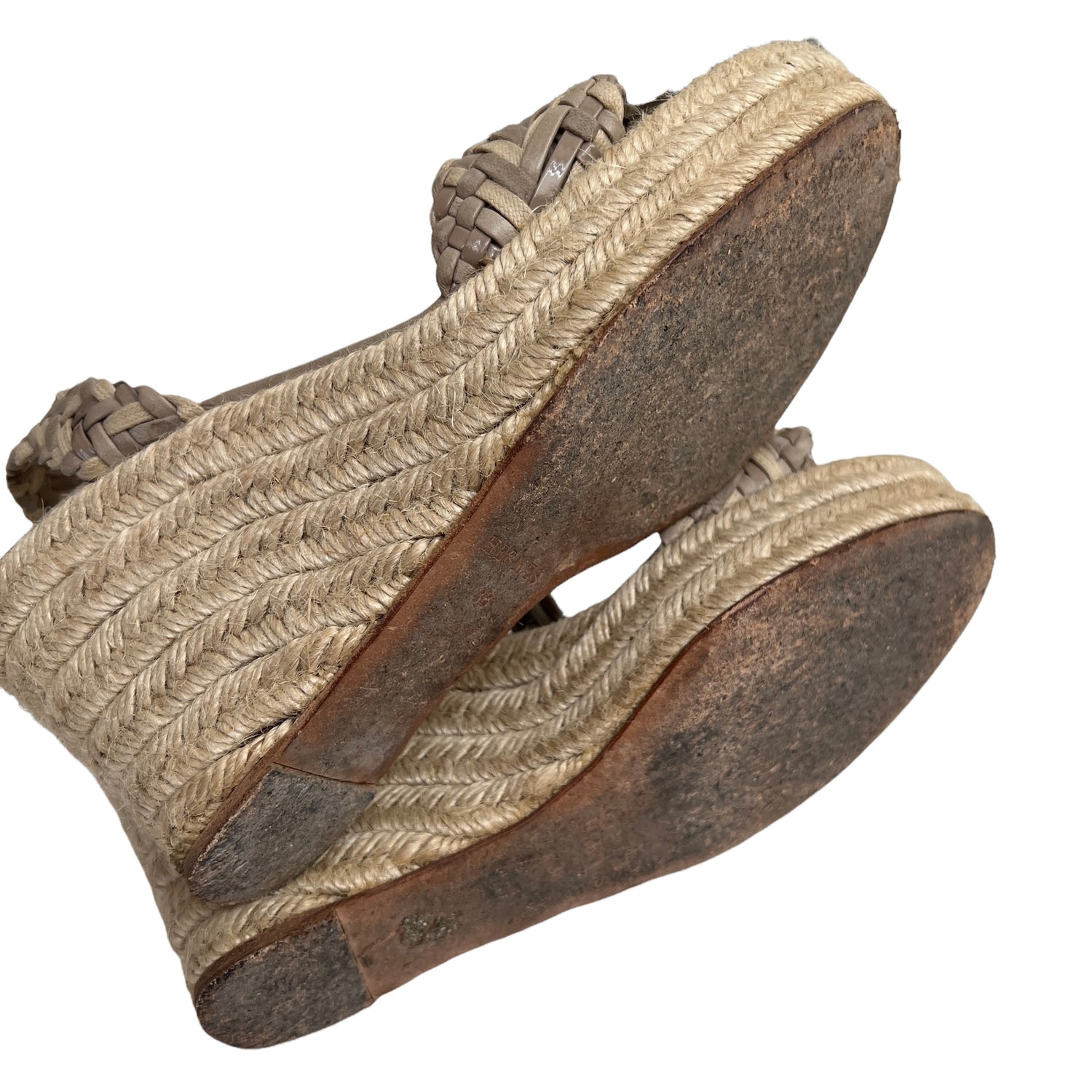 Summer espadrilles by Hermes. Beige and tan leather straps. Size 38.