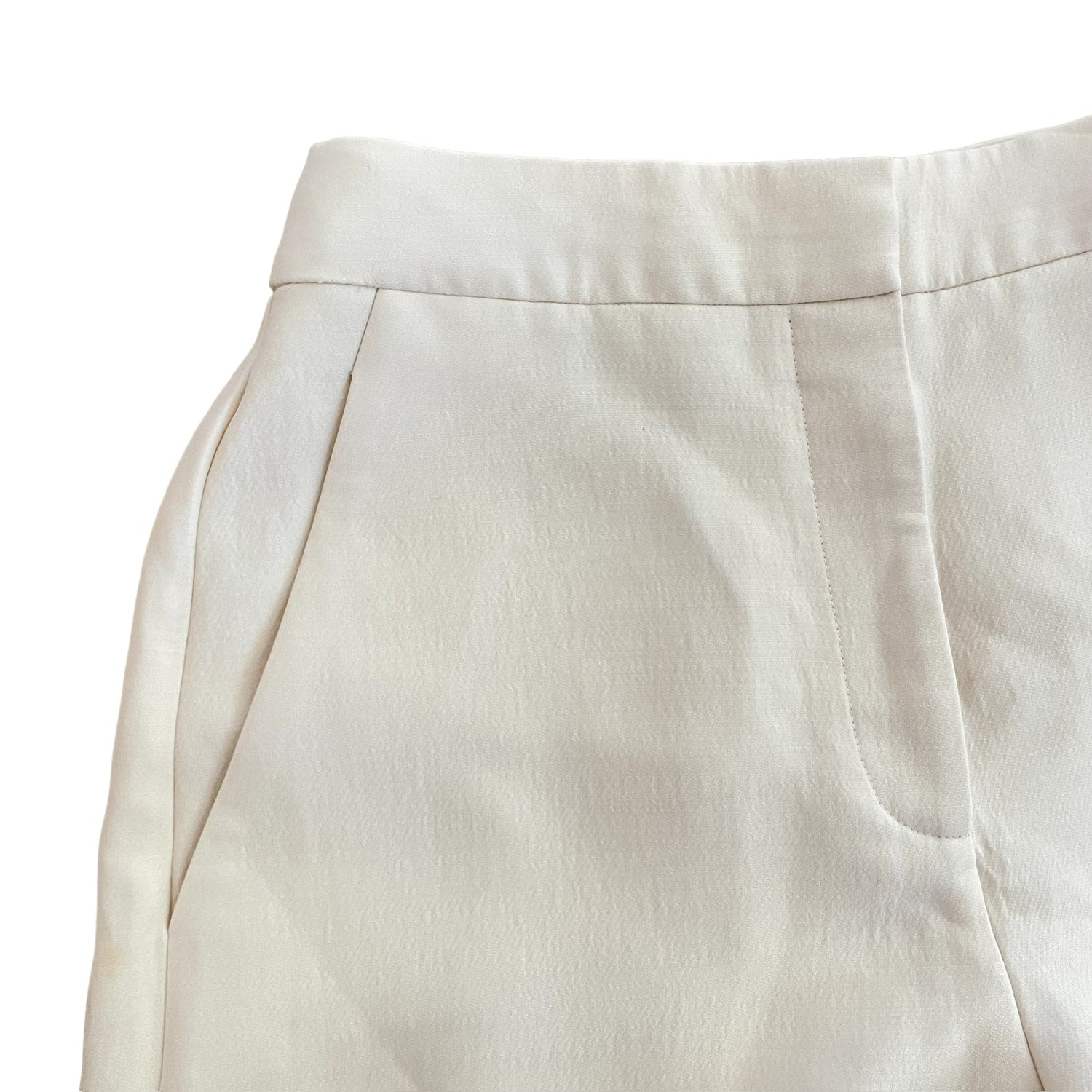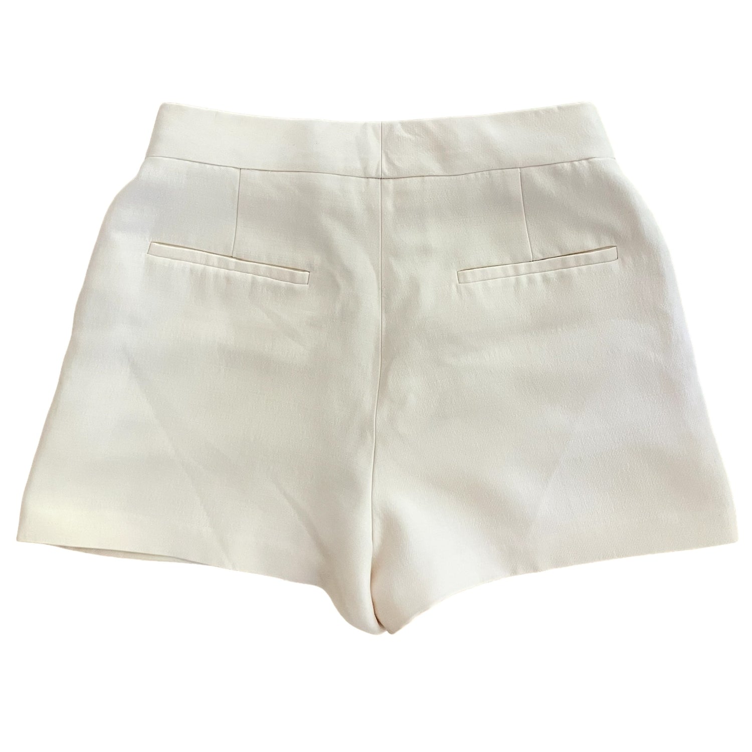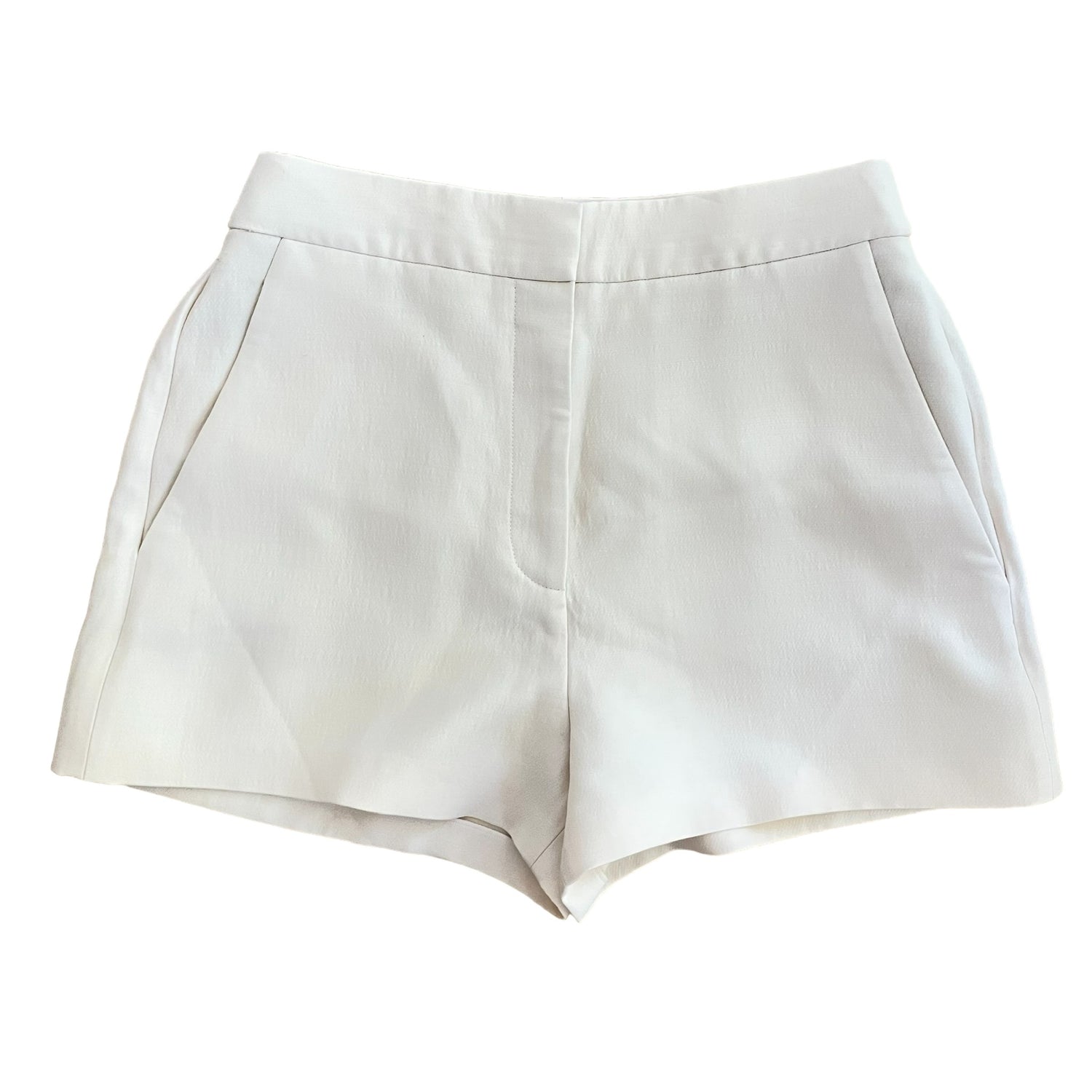 Valentino beige mini shorts. Slit pockets at sides. Concealed zipper closure at front. Designer size 42.