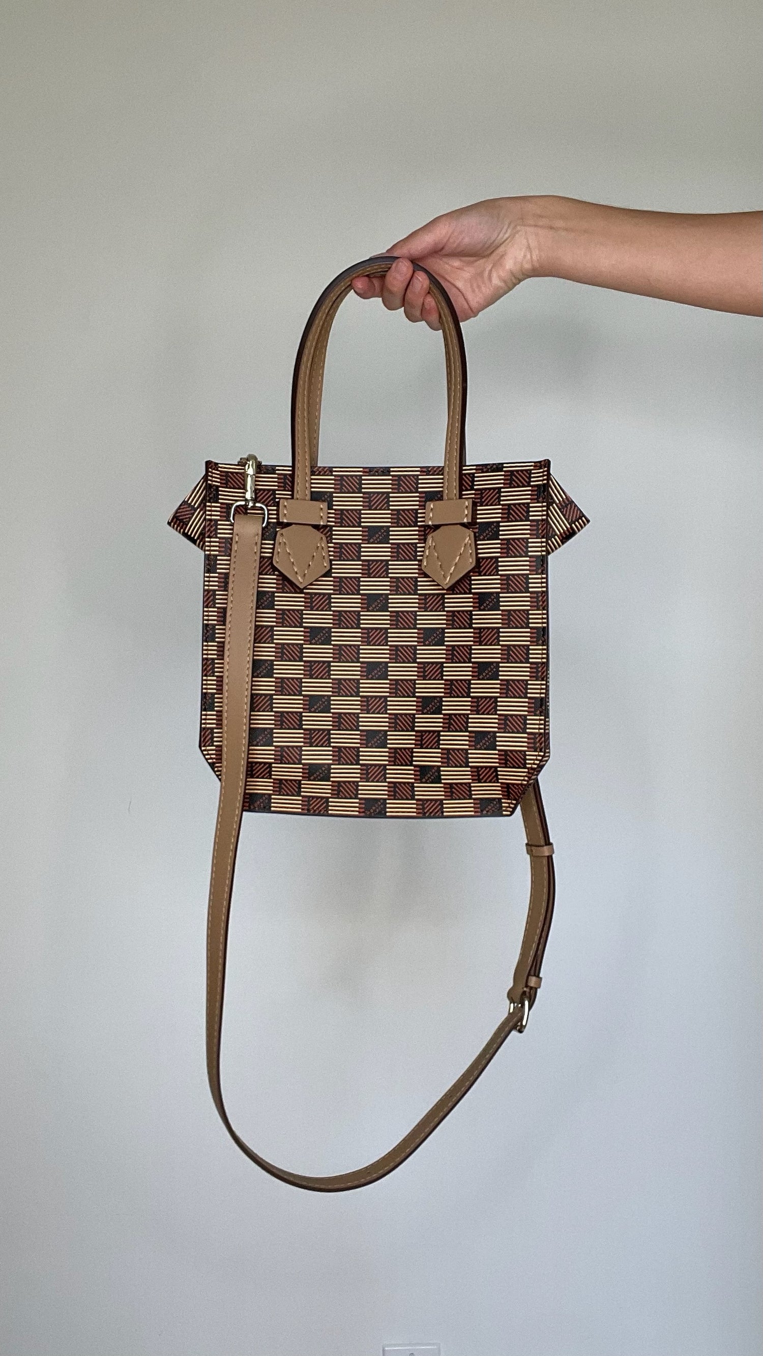 Measurements: Height 10”, Width 9.75”, Depth 4”, Handle drop 6”, Strap drop 23”