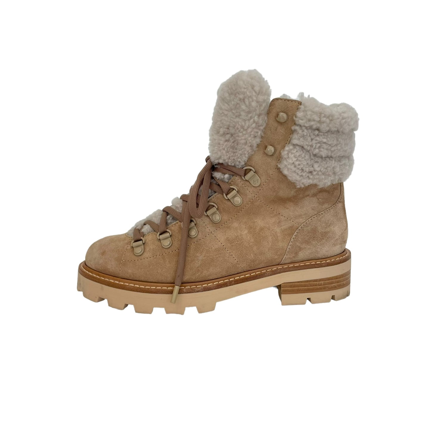 Beige Suede & Shearling Boots - 7.5