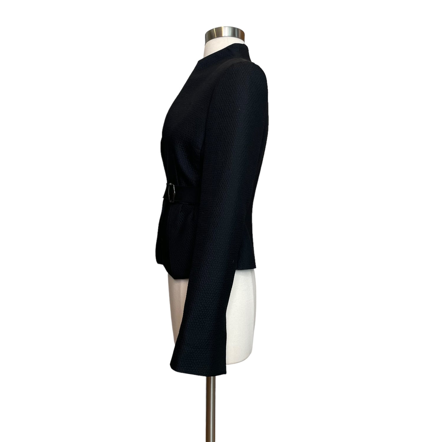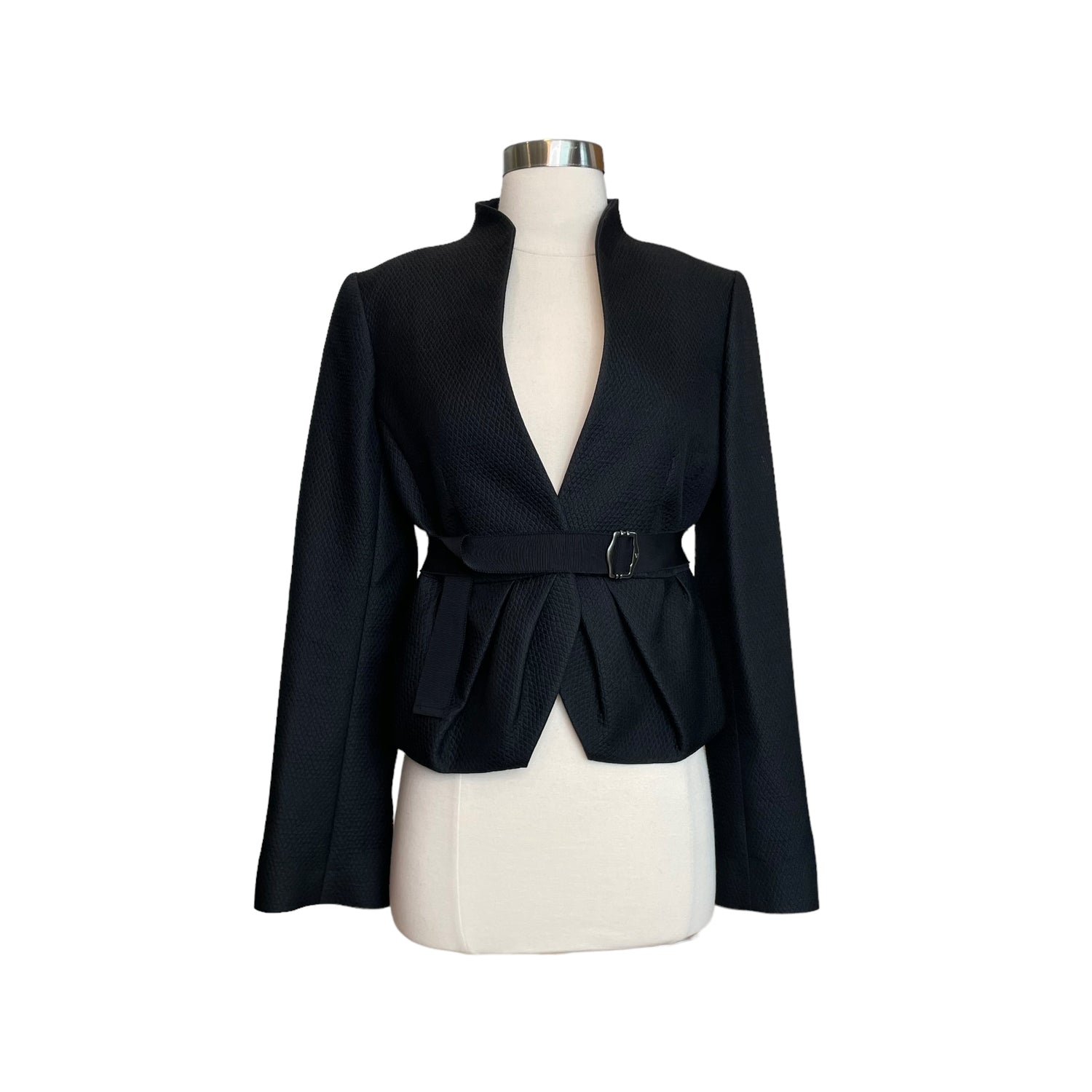 Valentino black quilted blazer with belt. Front concealed button closure. Designer size 4.