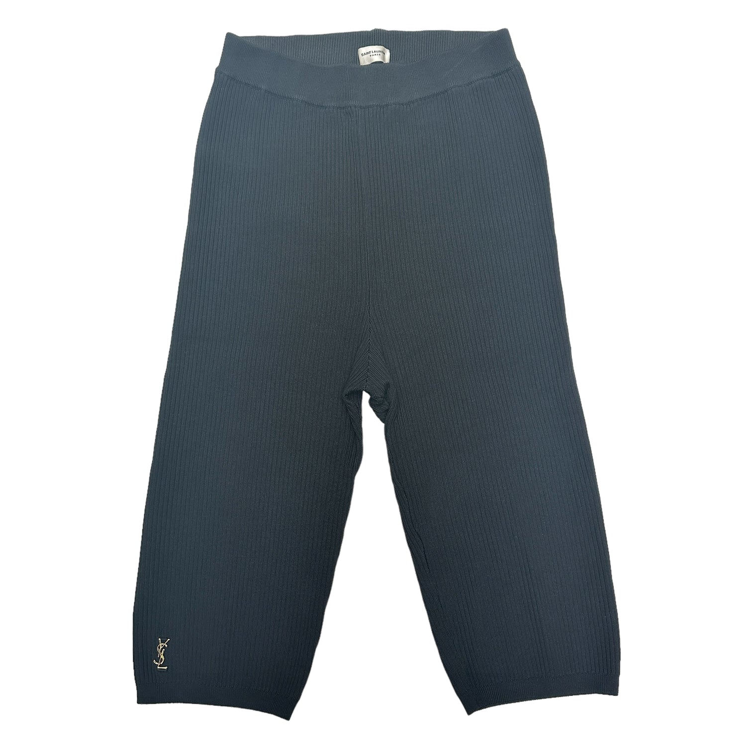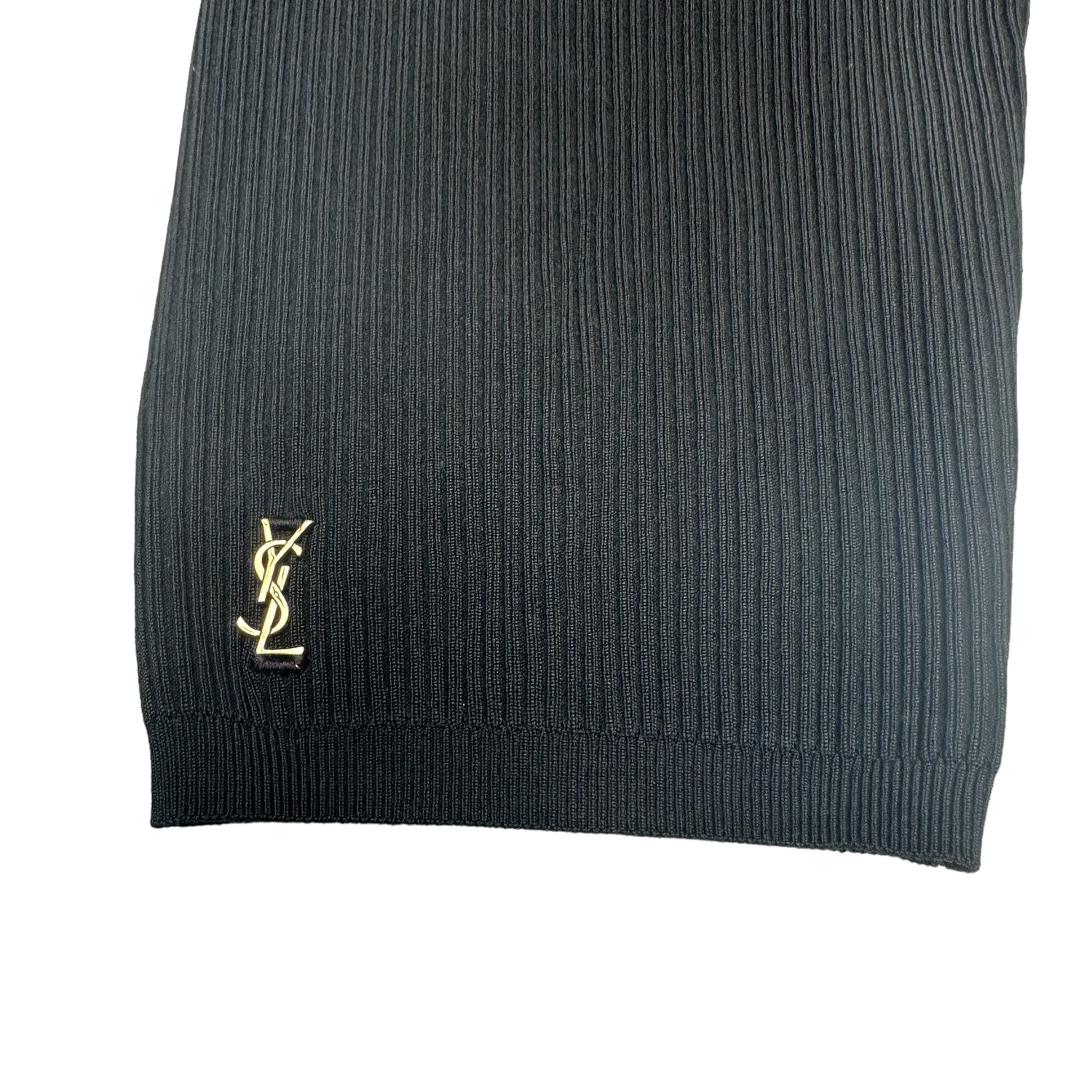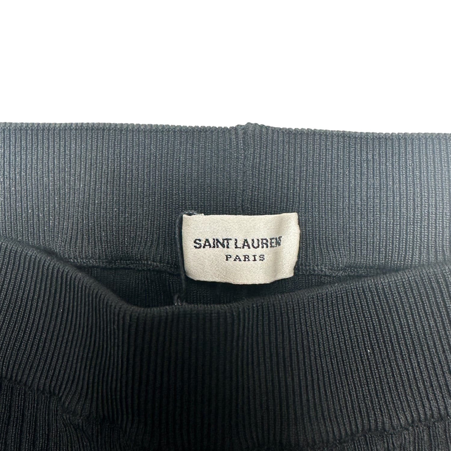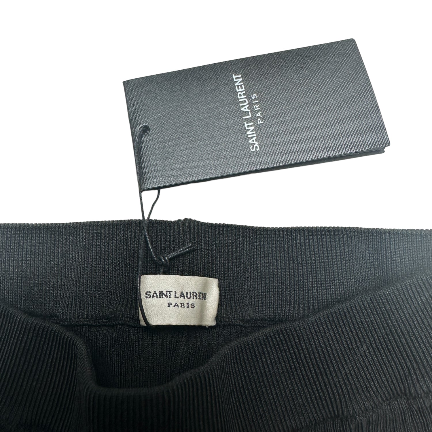 Saint Laurent black biker shorts. Fitted and stretchy fabric. YSL gold-tone logo. Designer size XS.