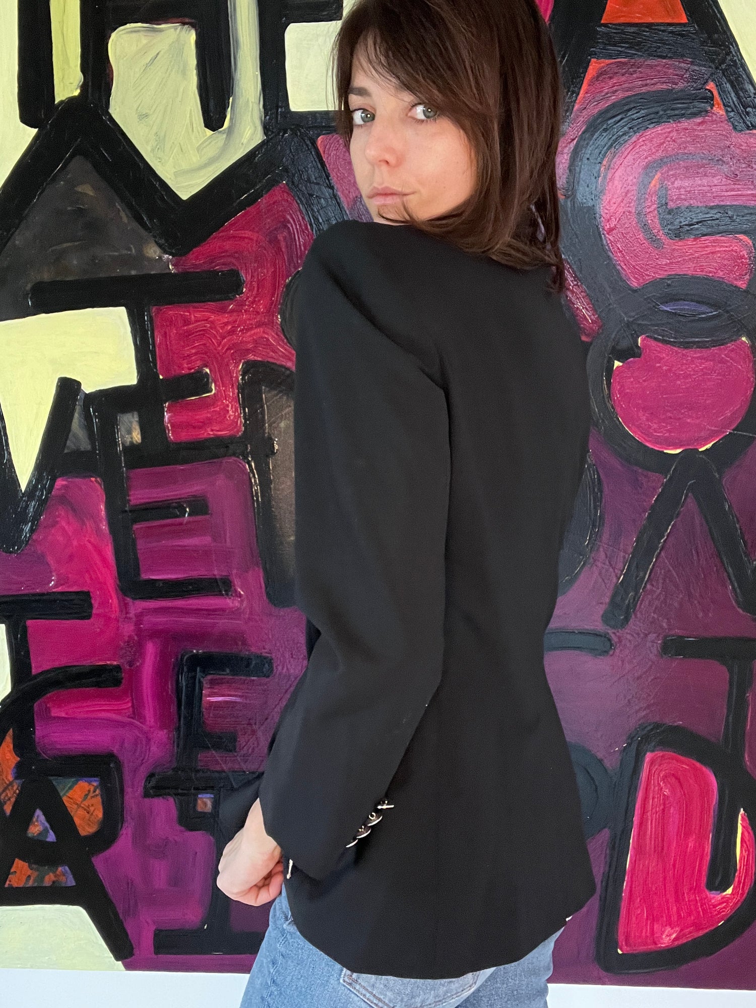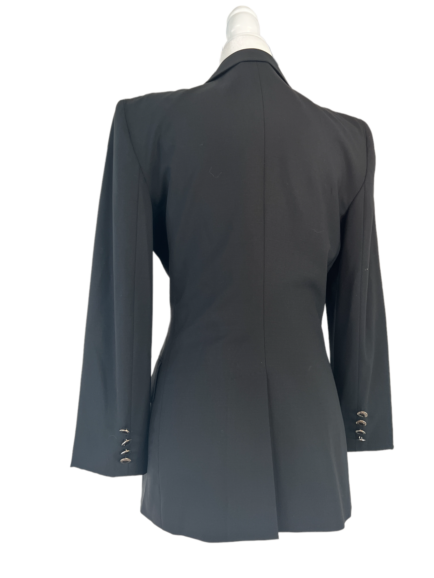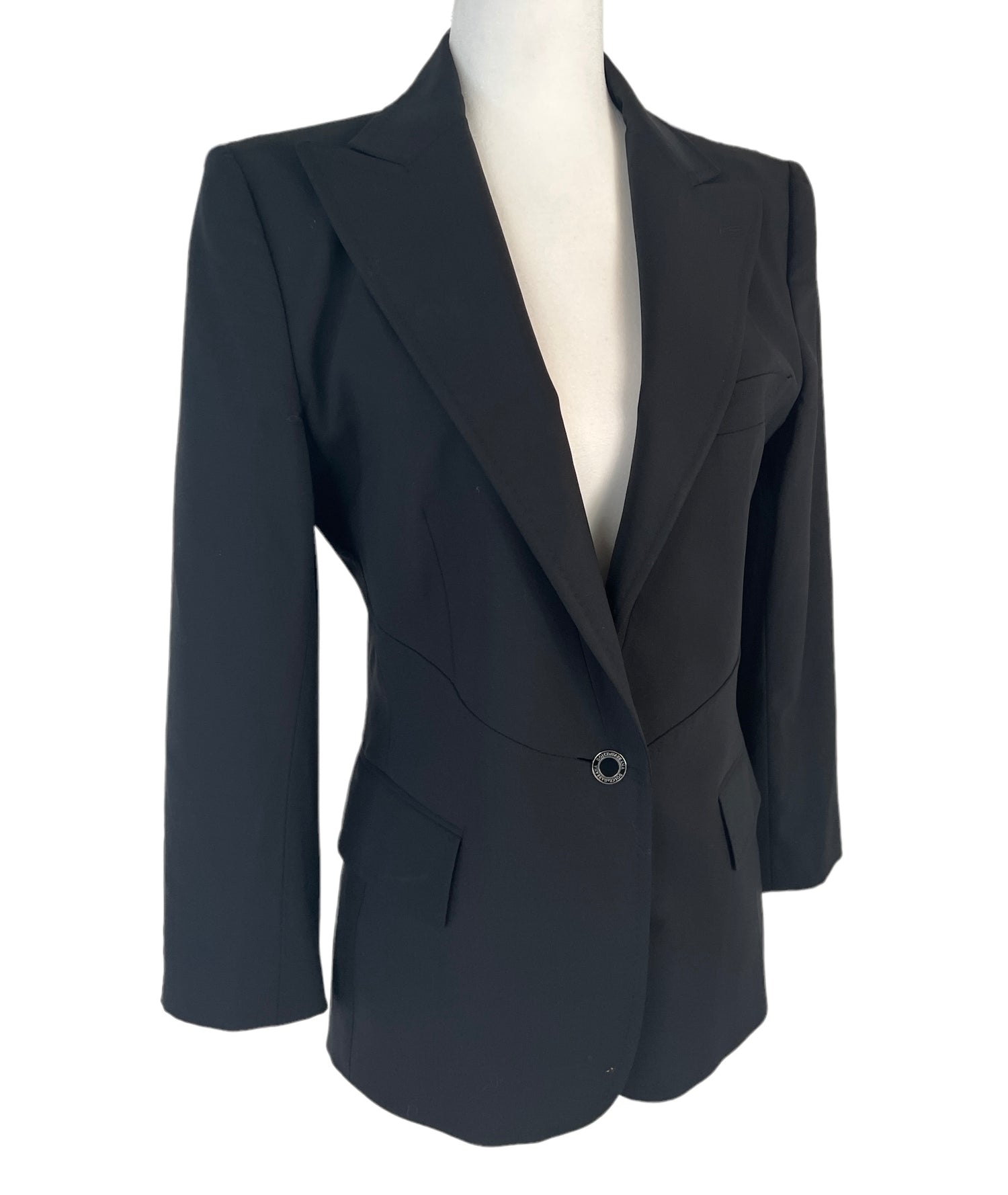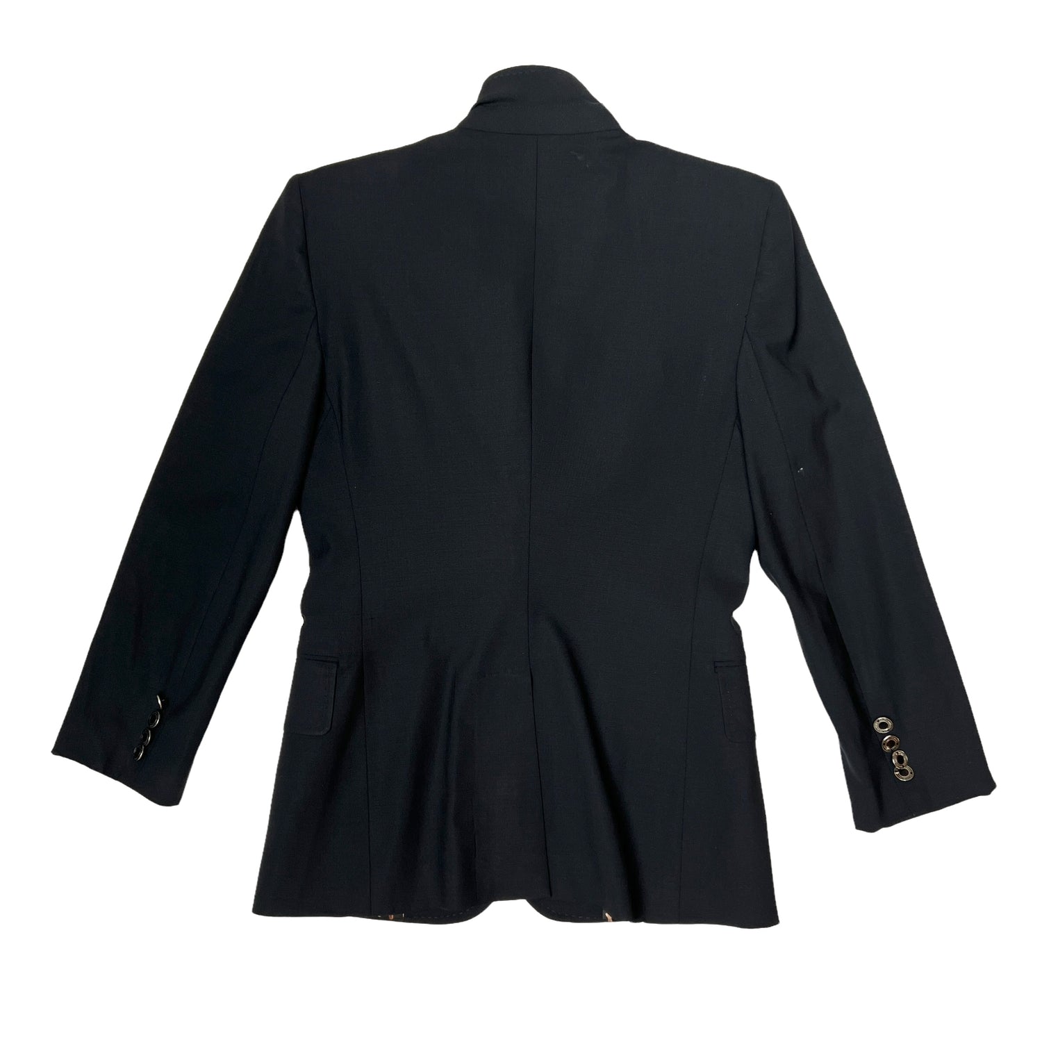 Dolce & Gabbana black blazer made out of wool. Light Blazer. Silver-tone buttons with logos throughout. One button closure at front. Four buttons at sleeves. Leopard lining which gives it such a nice touch. Designer size 46.
