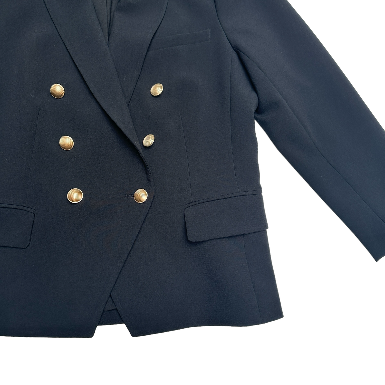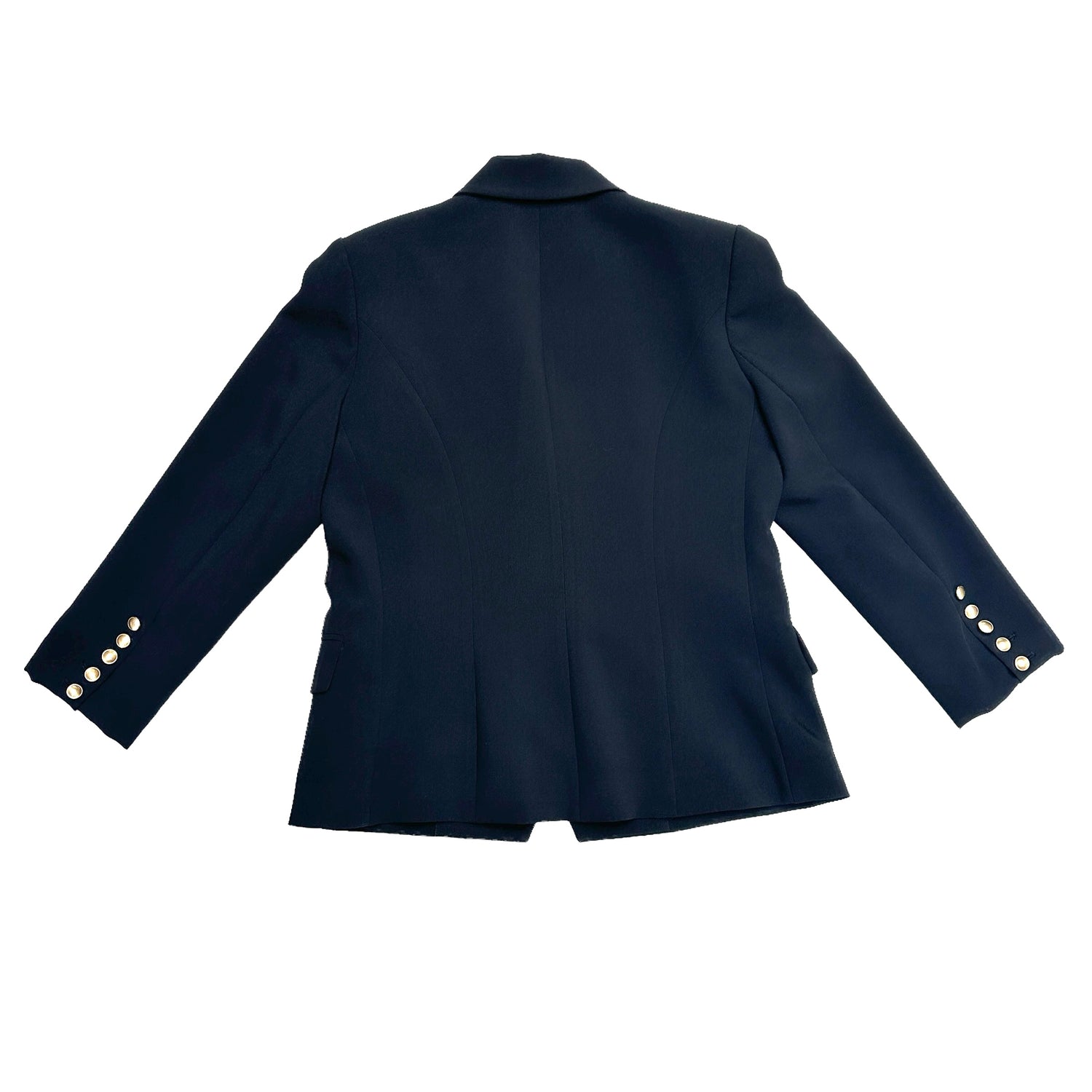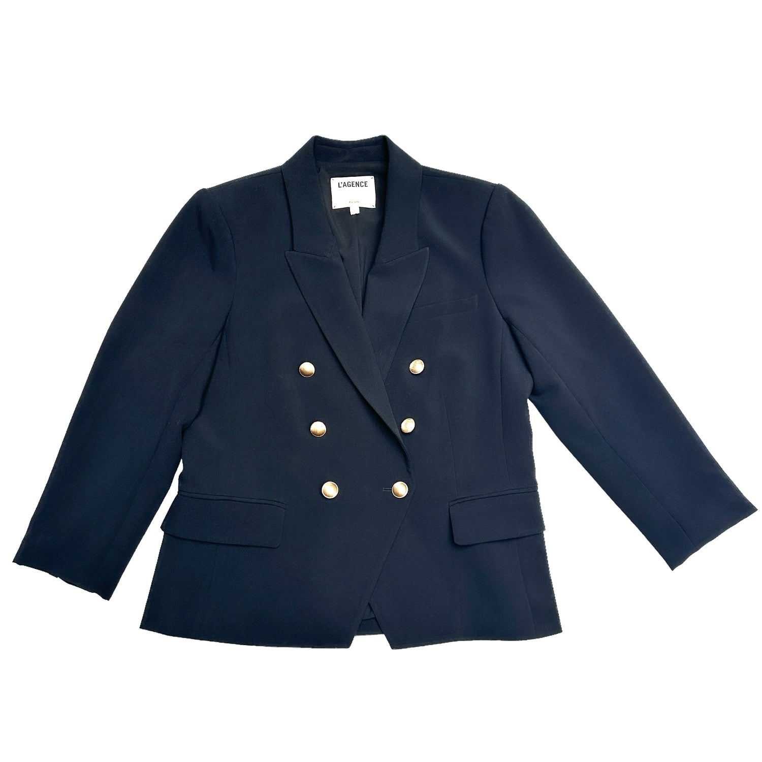 L'Agence black blazer. Button closure at front. Gold-tone metal. Pointed collar. Designer size 12.