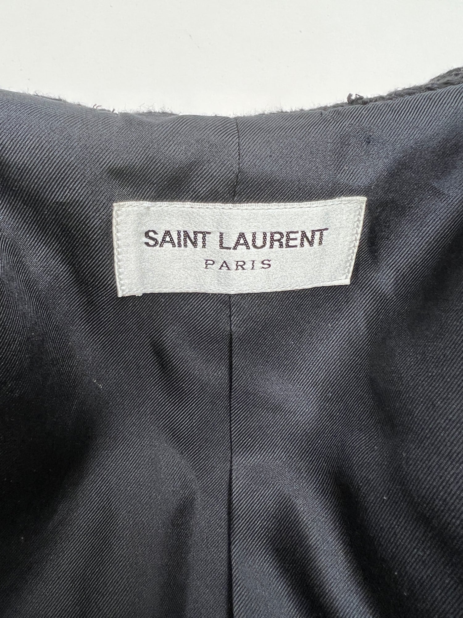 Beautiful Iconic Saint Laurent elegant jacket. Tweed Cotton. Single breasted, five-button closure. Silk Lining. Front pockets. Size 36.