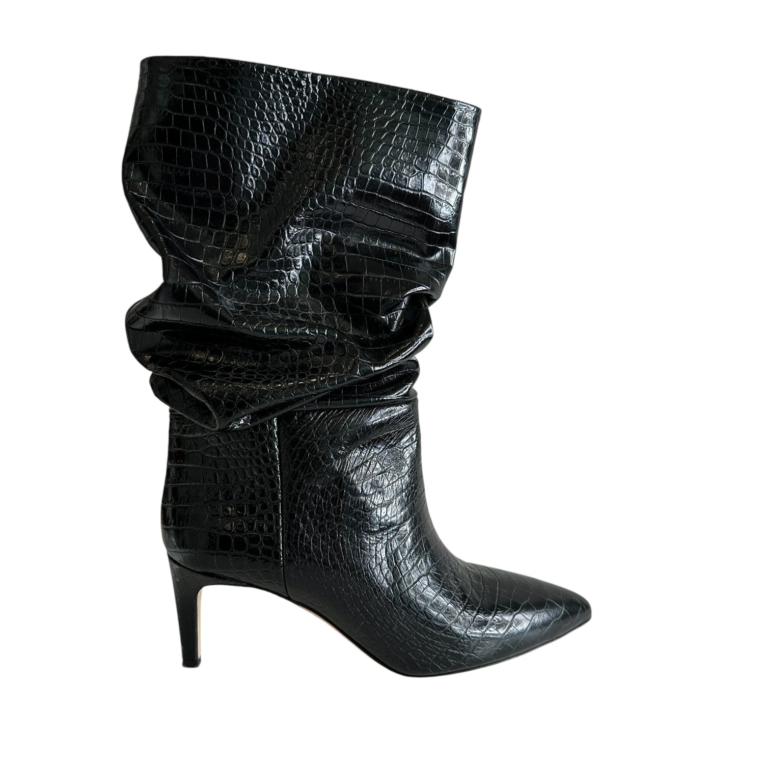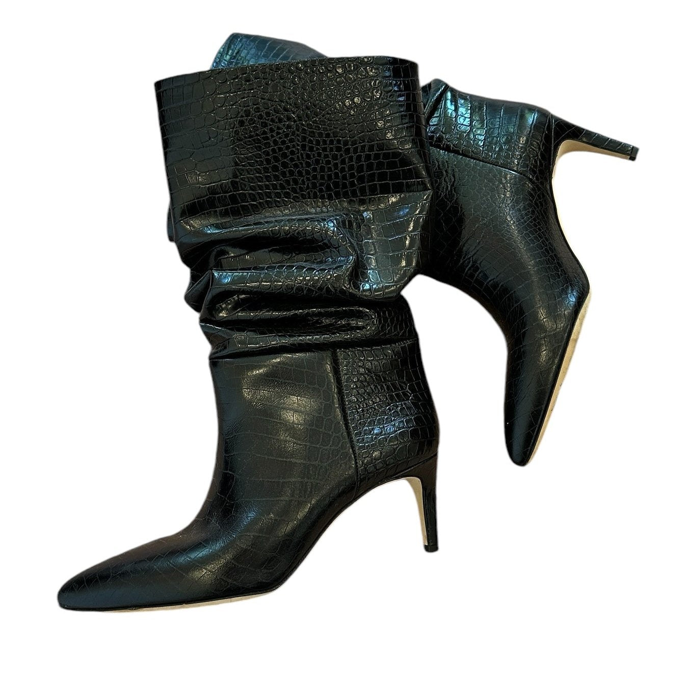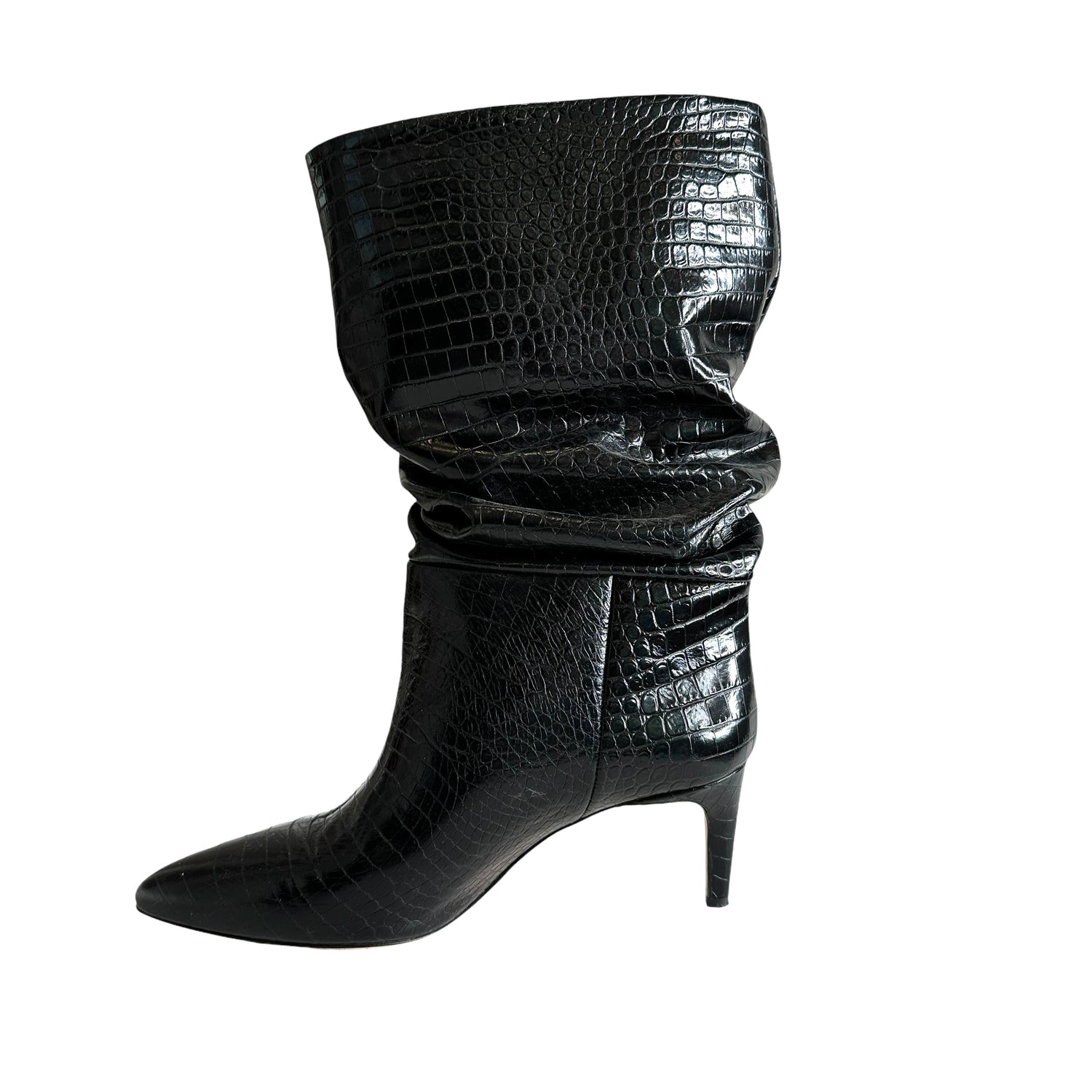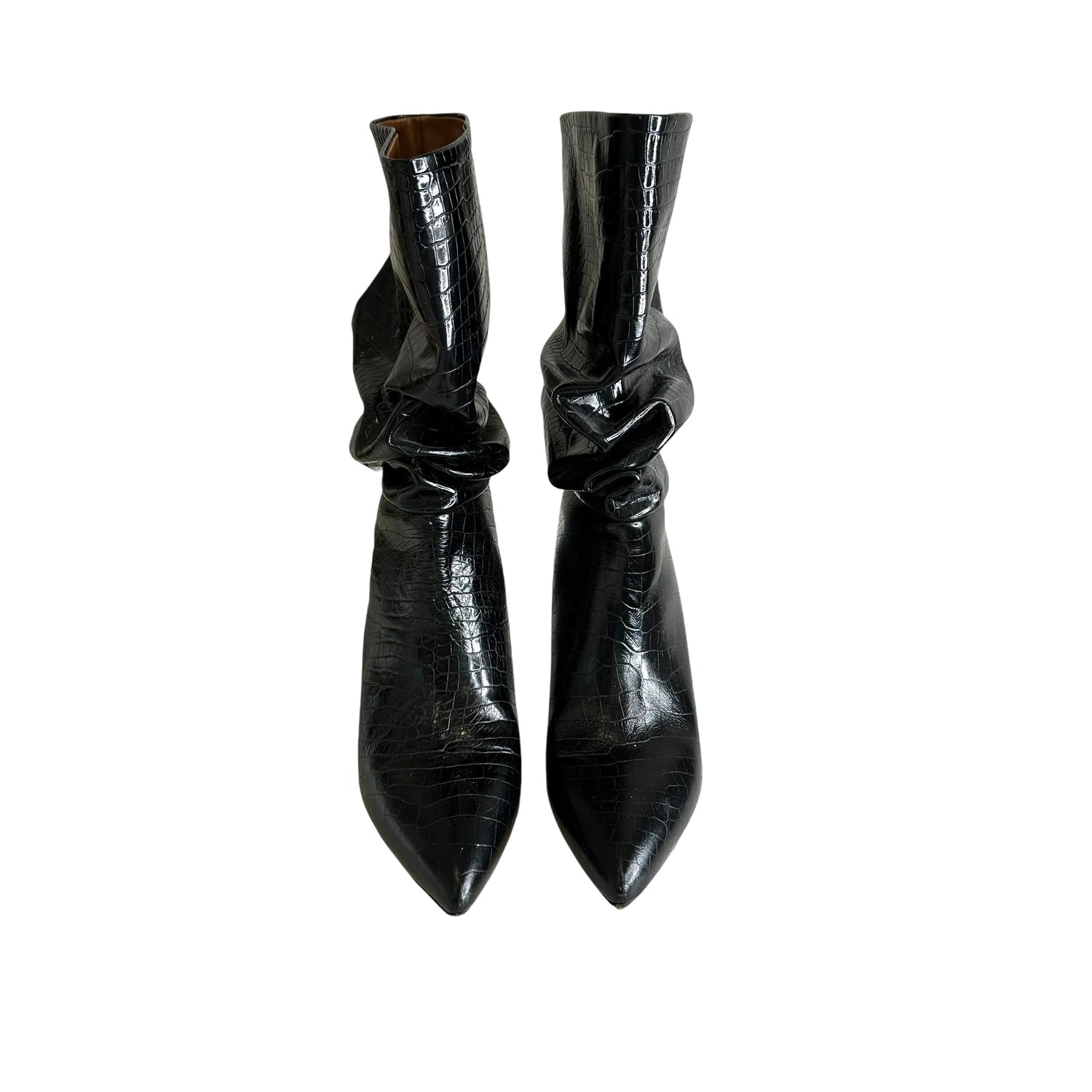 Paris Texas crocodile embossed leather boots. Black. Pointed toe. Designer size 40.