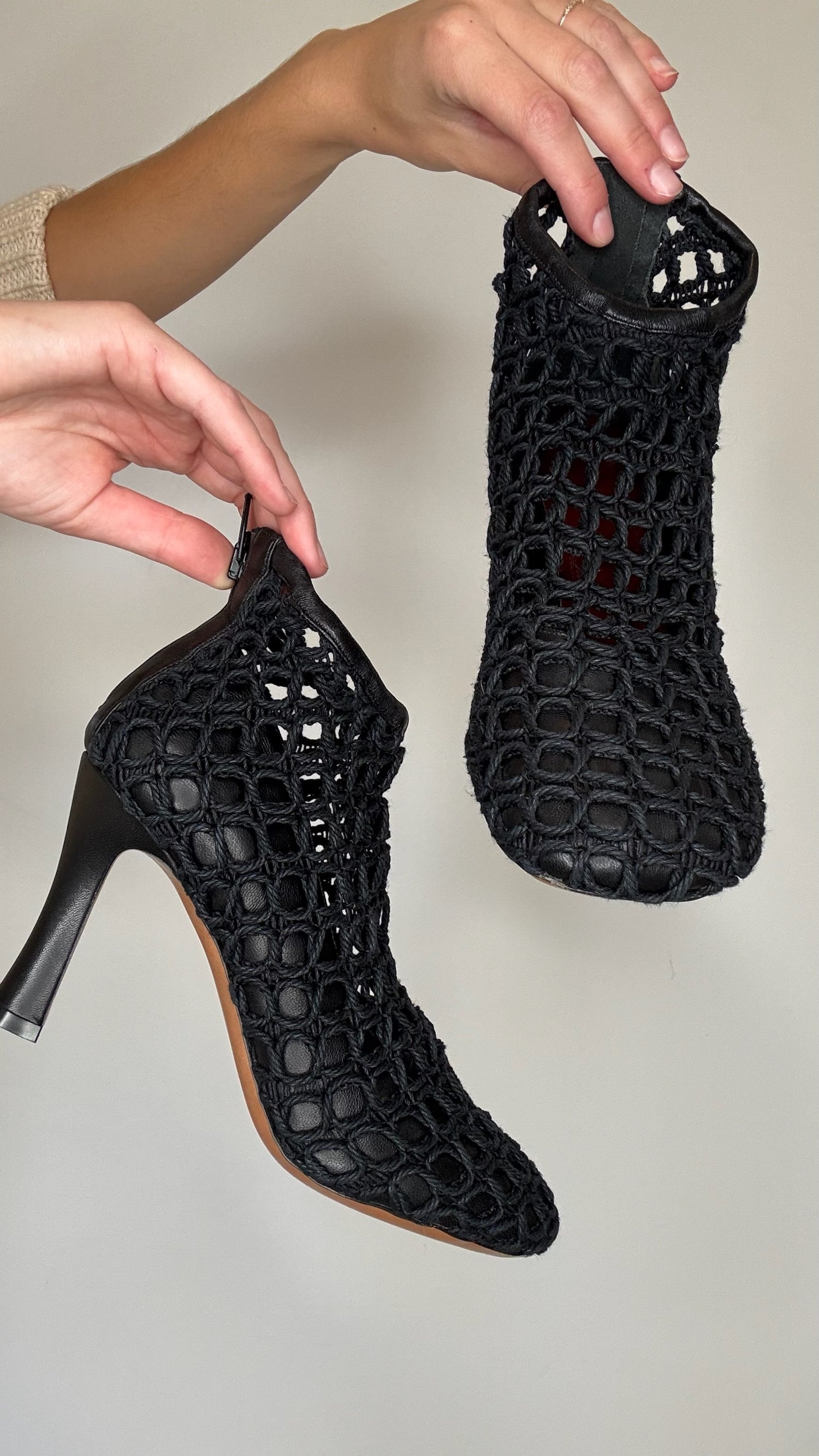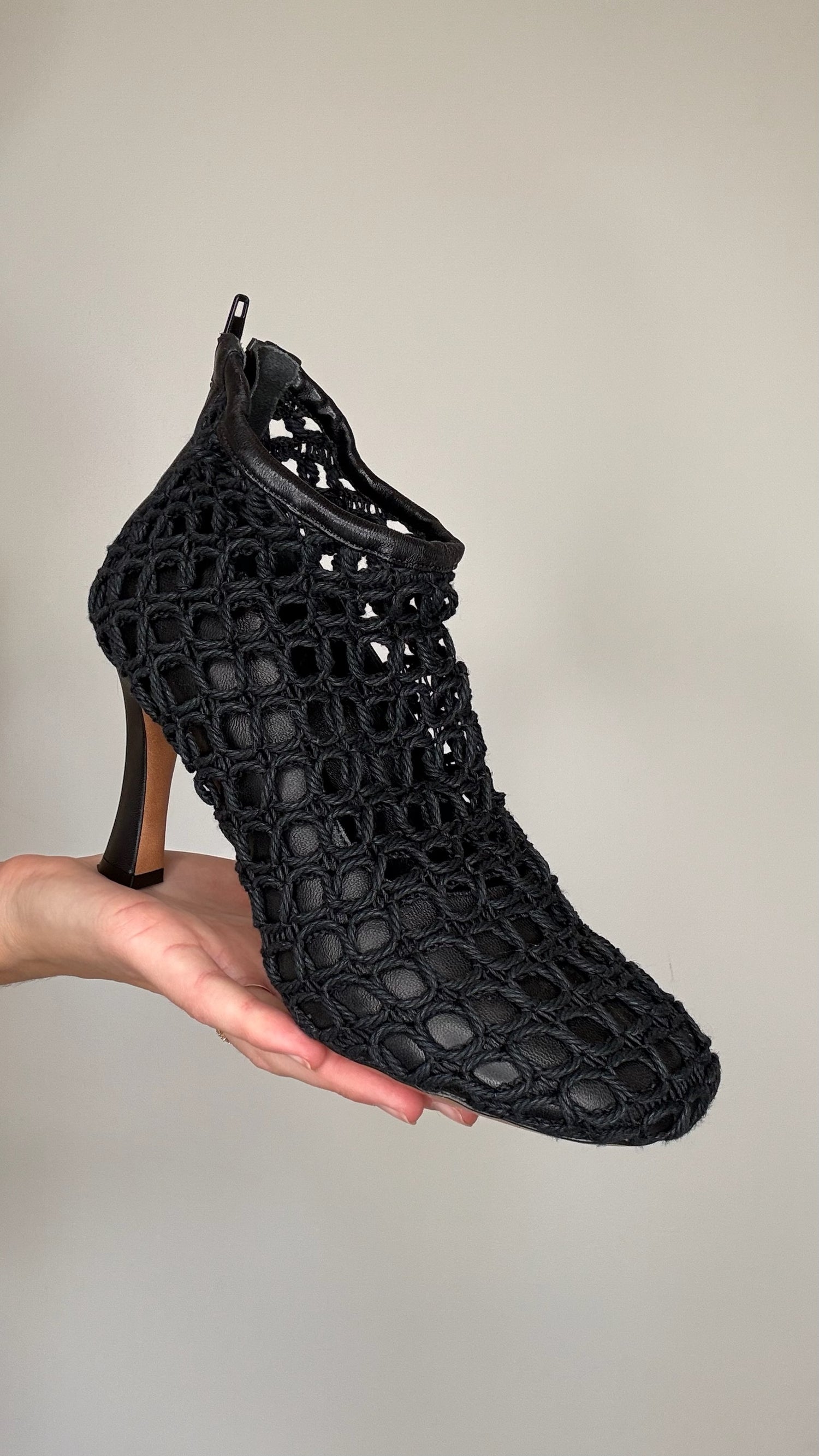 Celine by Phoebe Philo crochet black heeled boots. Zipper closure at back. Designer size 37.5
