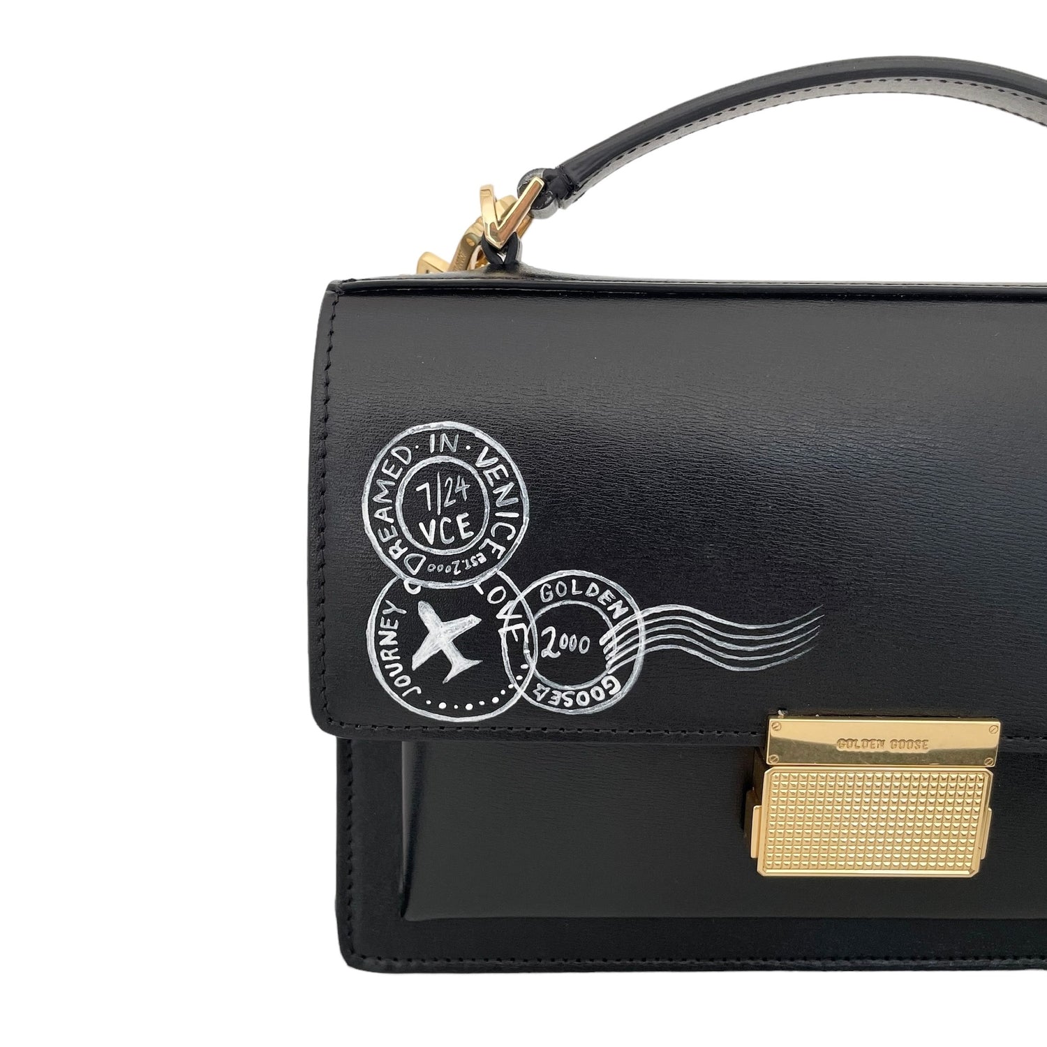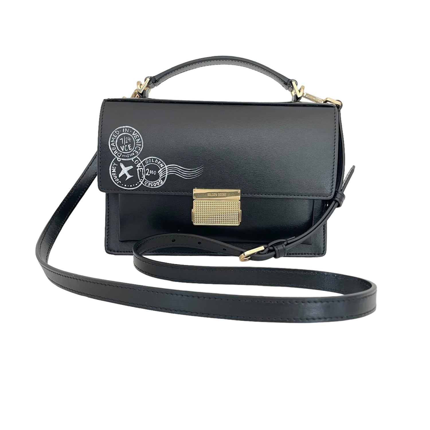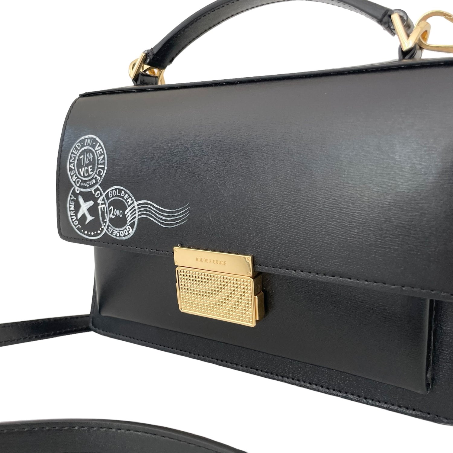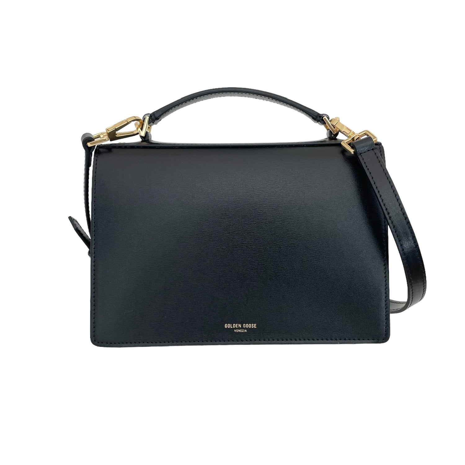 Golden Goose black leather crossbody bag. Gold-tone hardware. Handle at top and removable crossbody strap. Multiple compartments at interior.