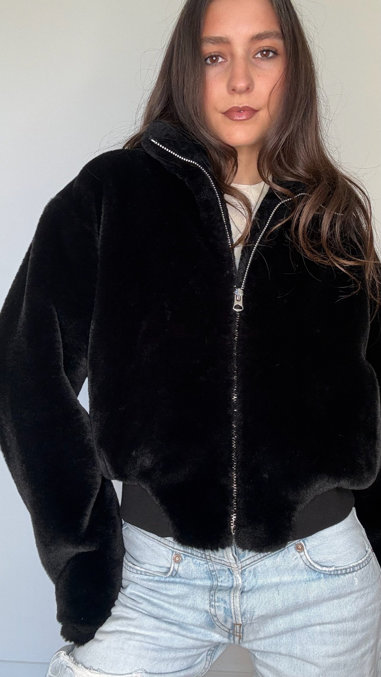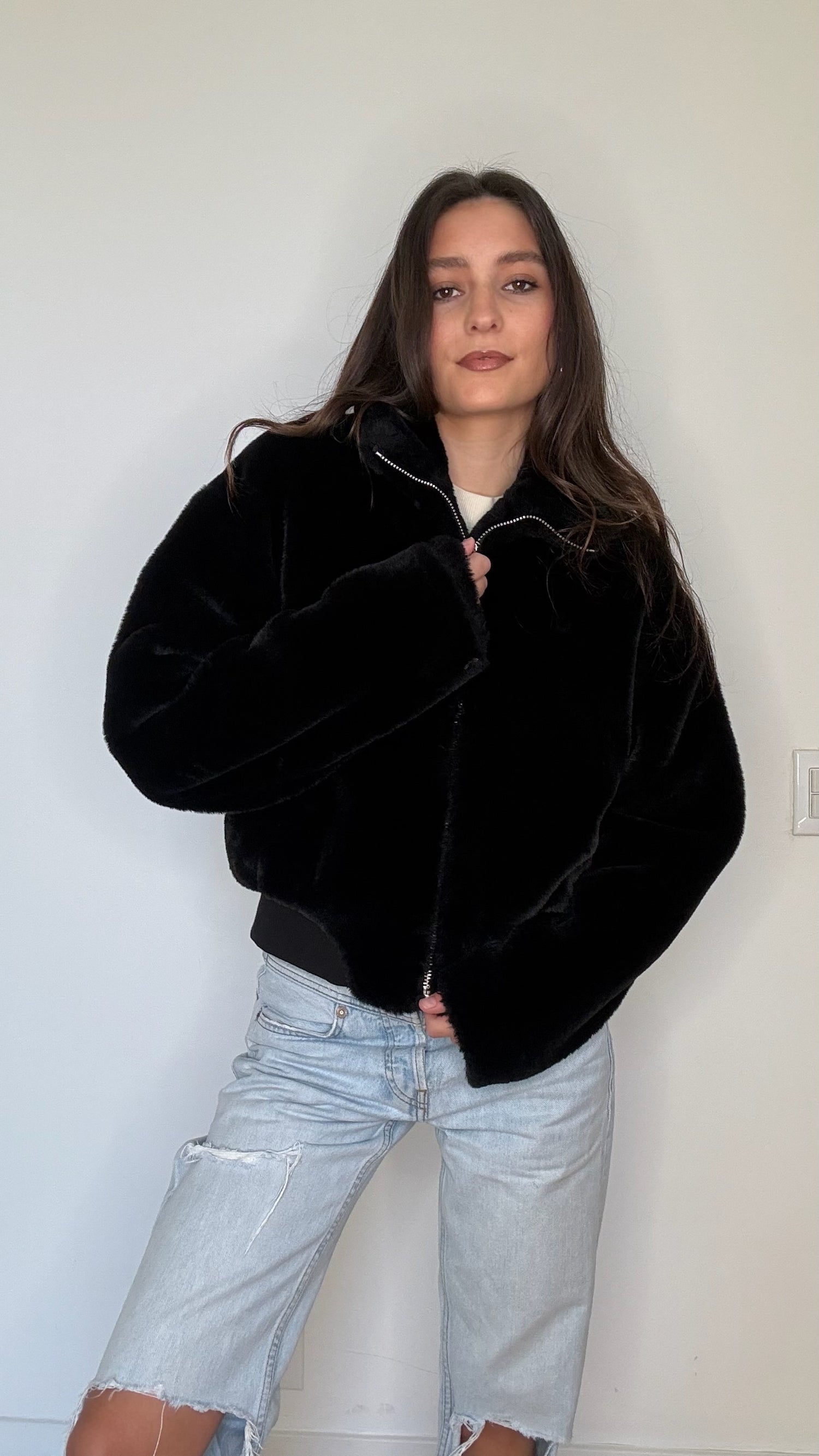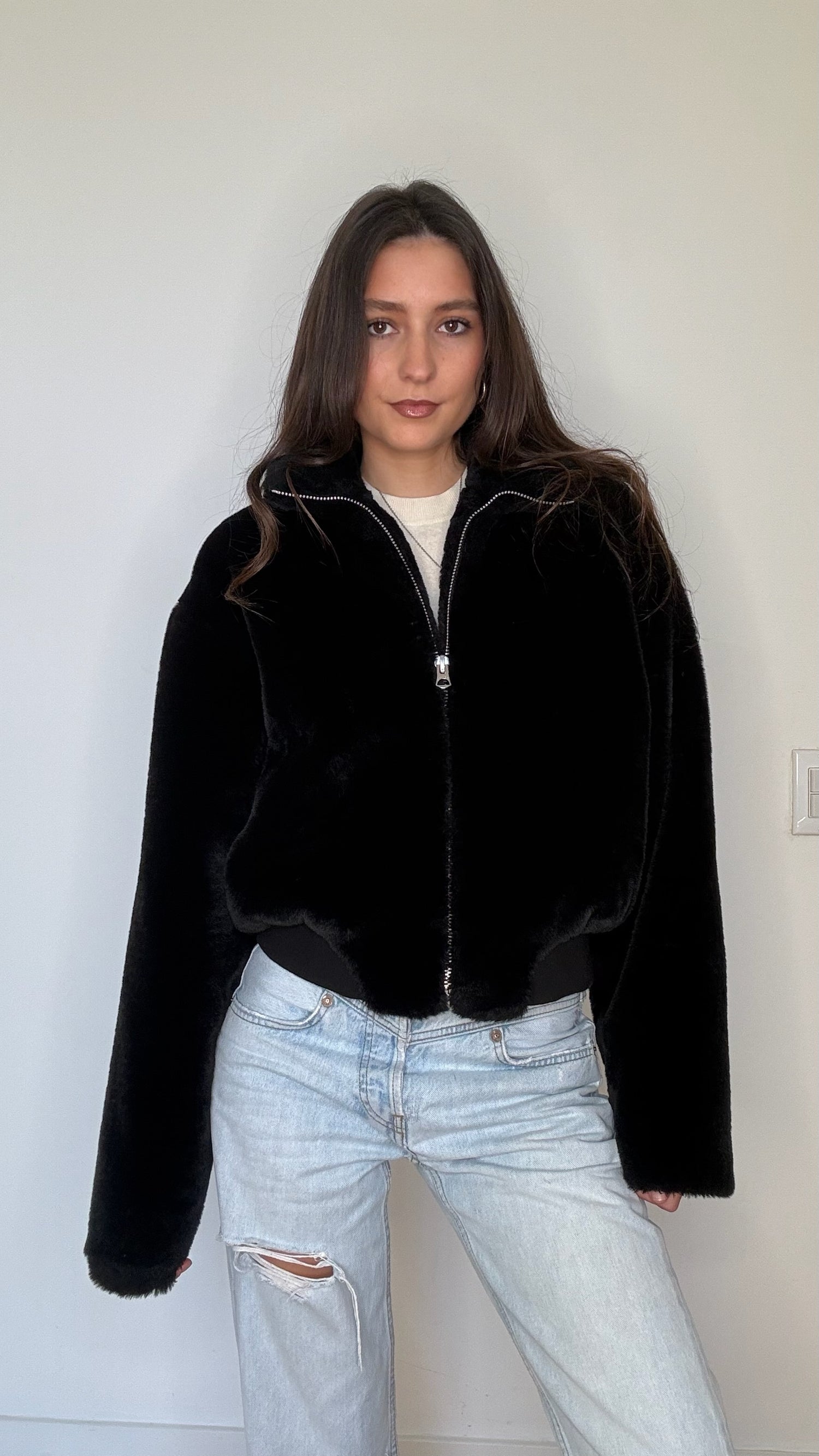 Rag & Bone faux-fur bomber jacket. Pockets. Silver zipper closure. Designer size small.