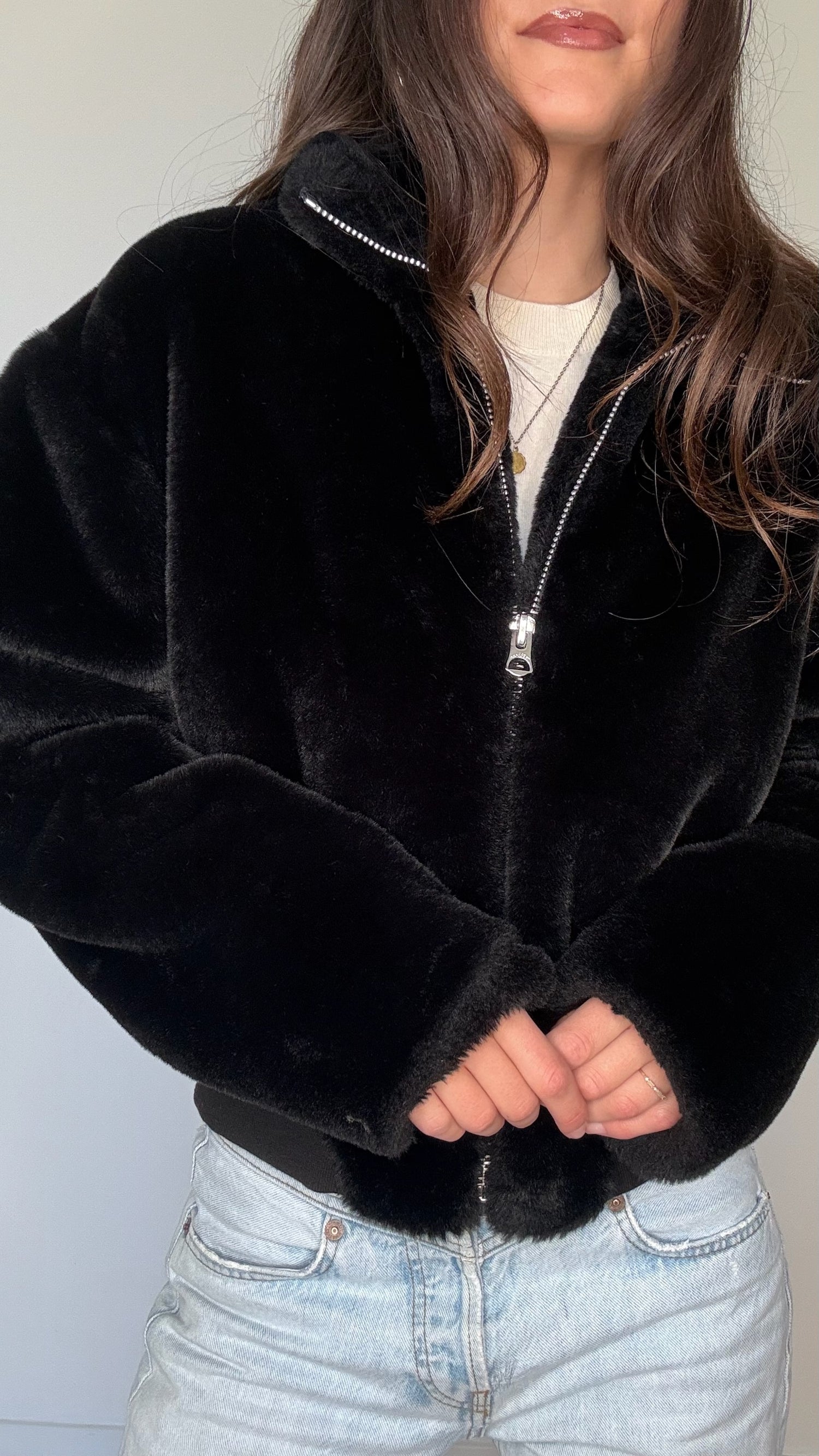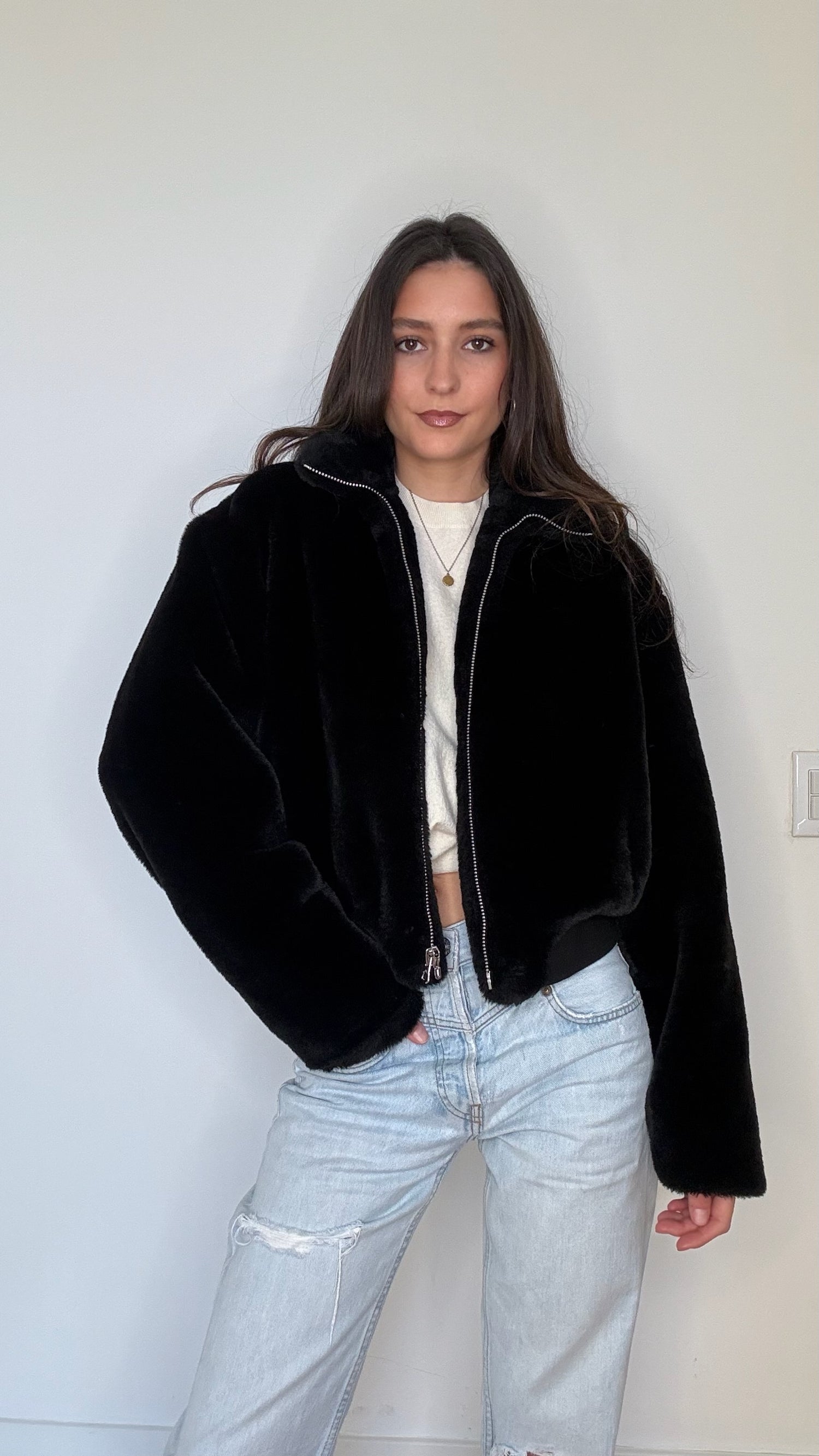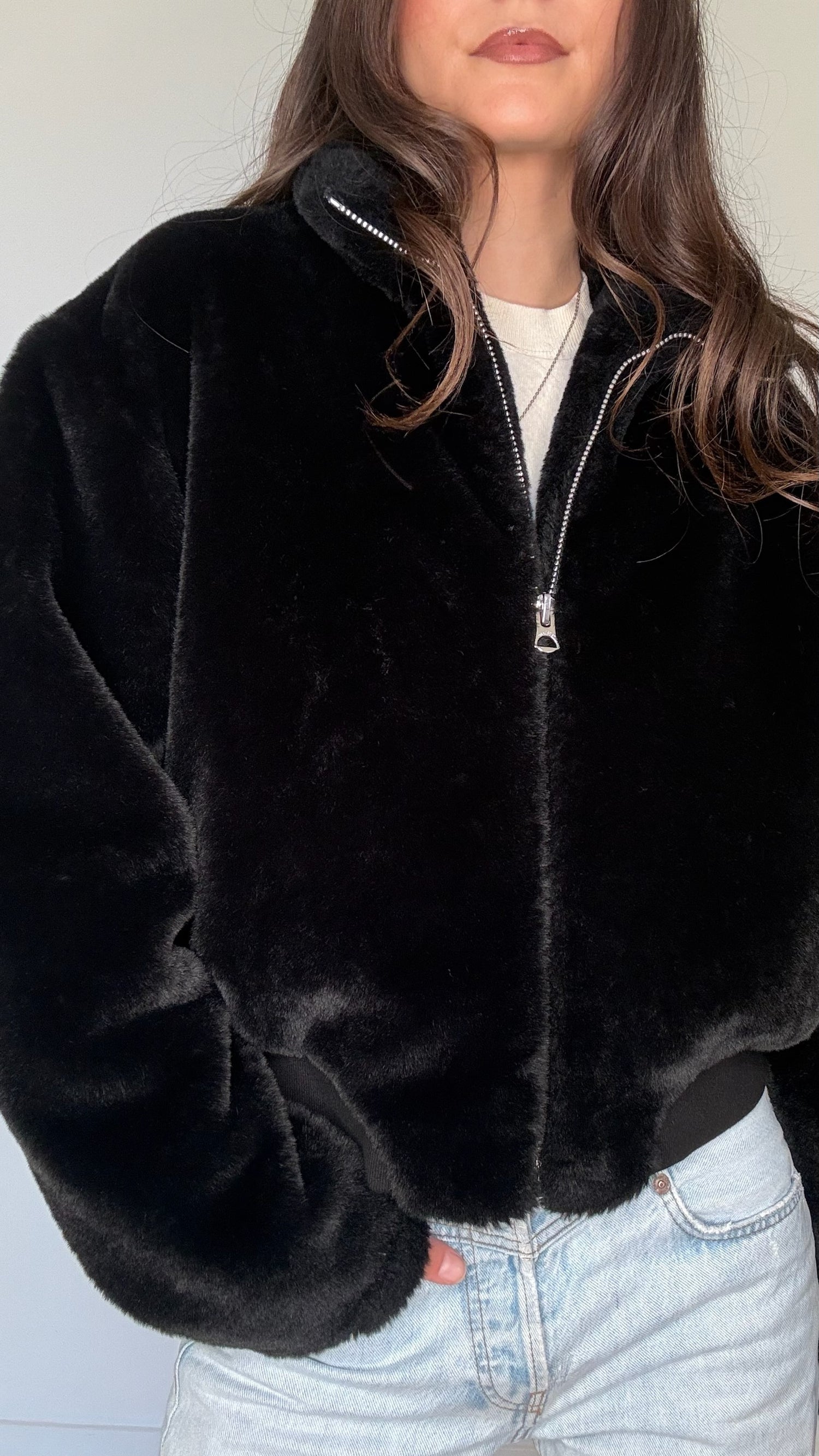 Rag & Bone faux-fur bomber jacket. Pockets. Silver zipper closure. Designer size small.