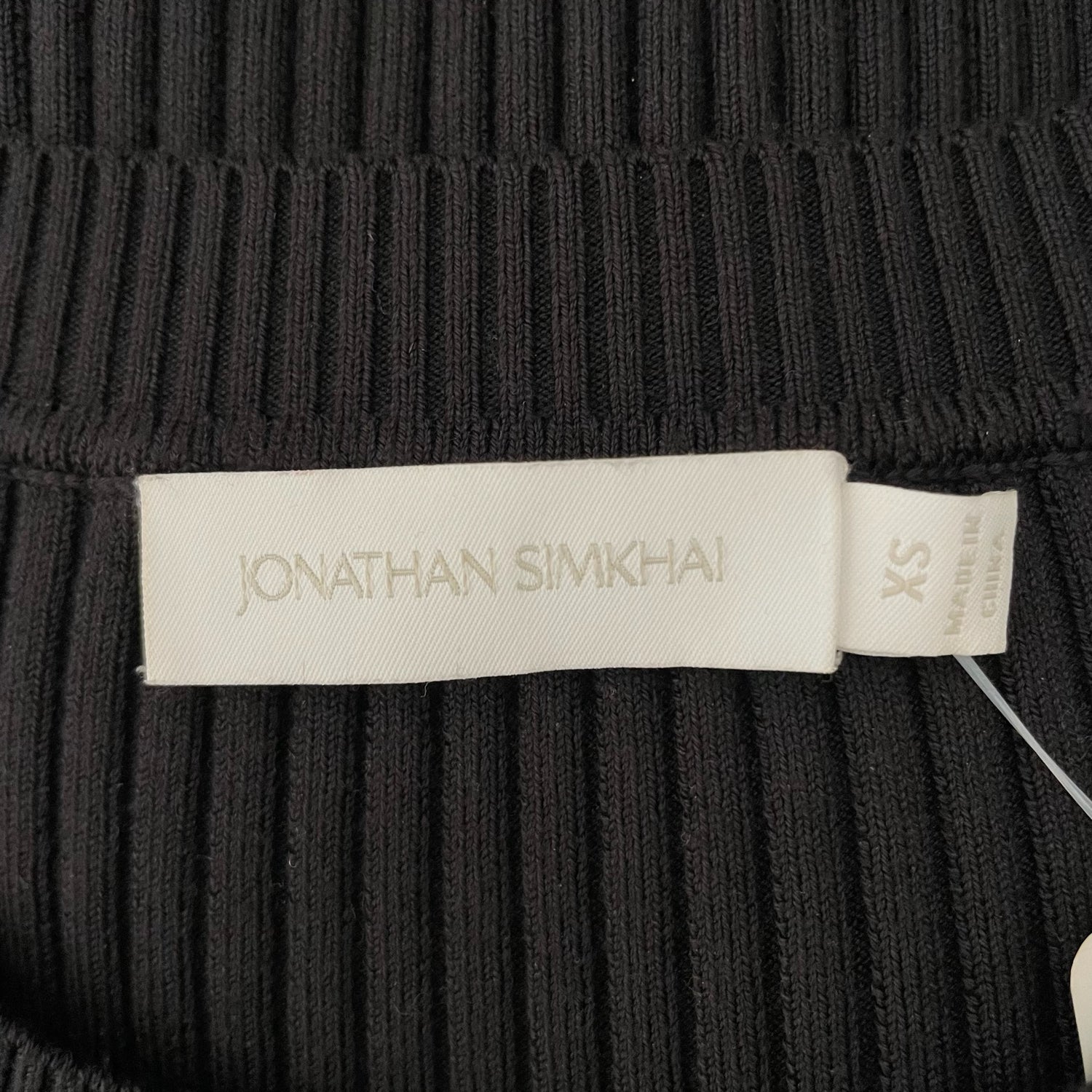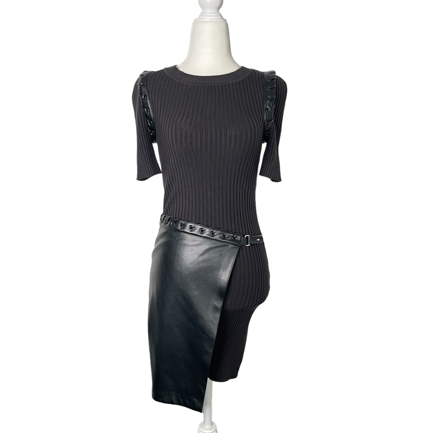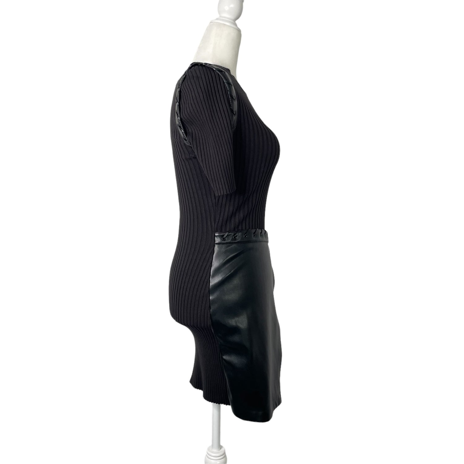 Jonathan Simkhai black dress. Black ribbed mini dress with faux-leather panels. Designer size XS.