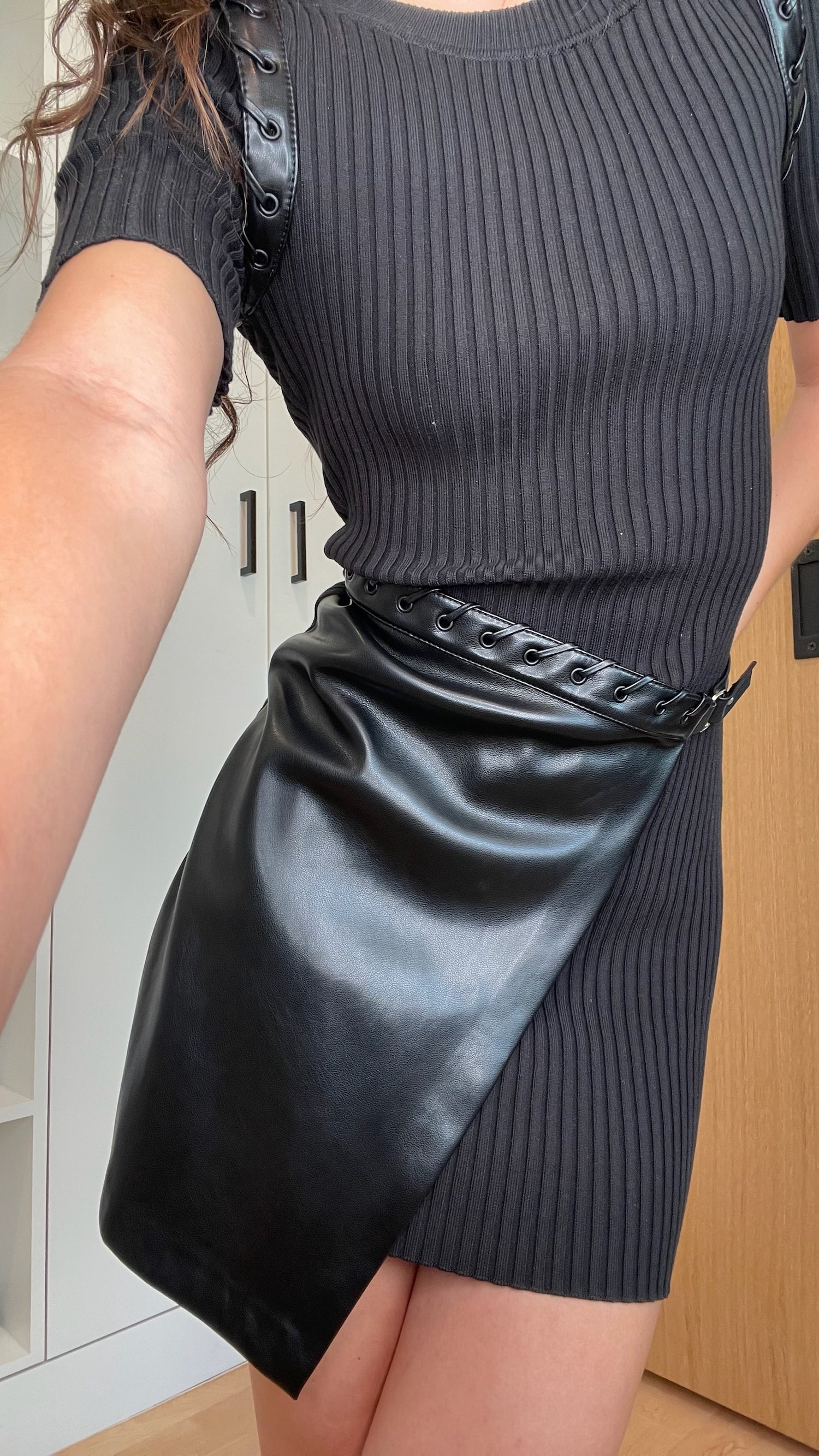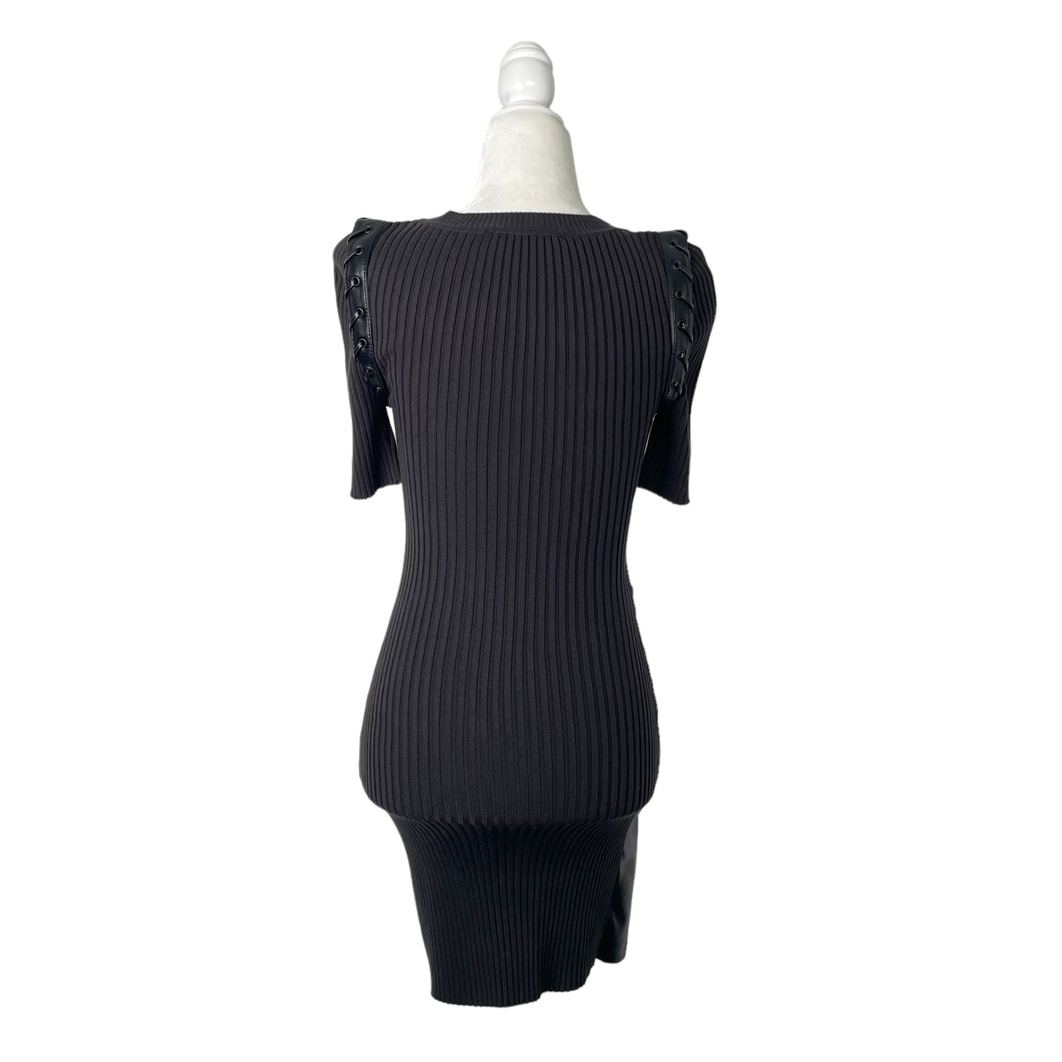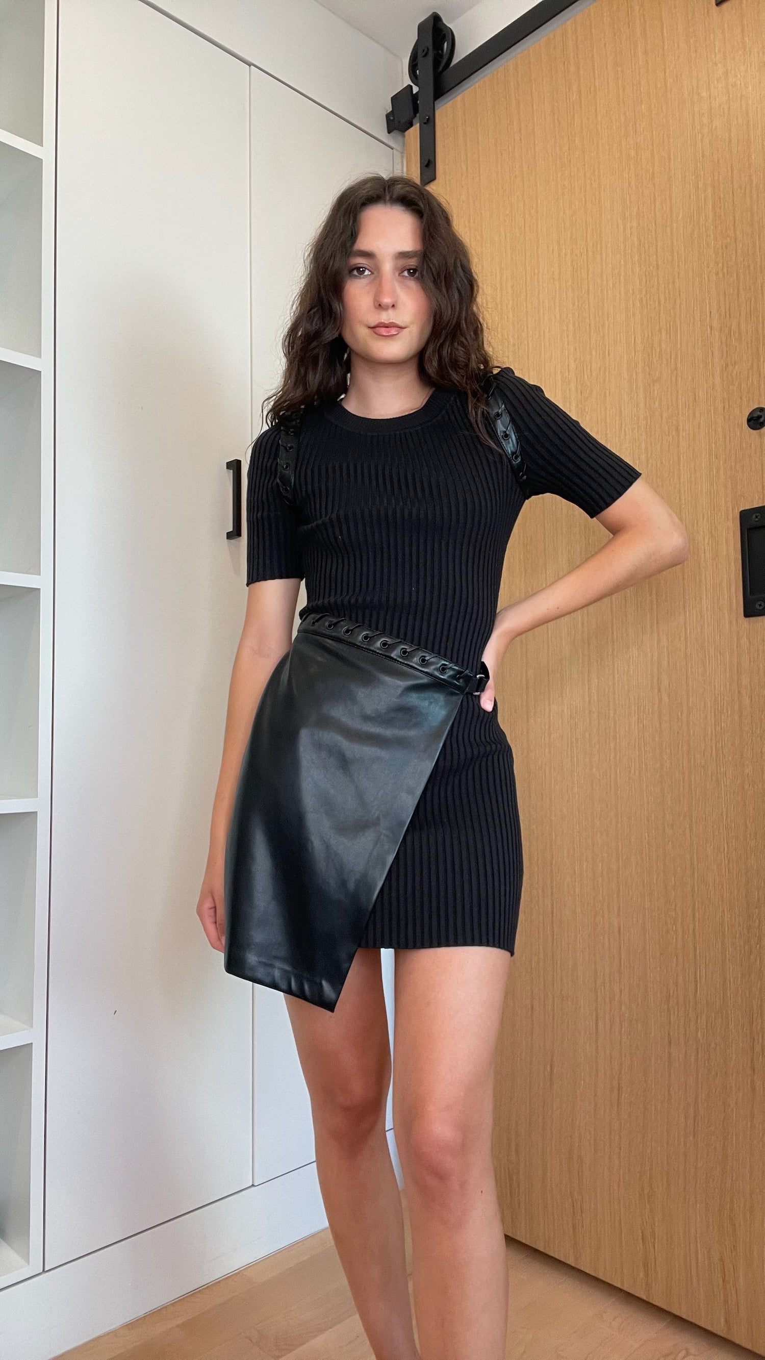 Jonathan Simkhai black dress. Black ribbed mini dress with faux-leather panels. Designer size XS.