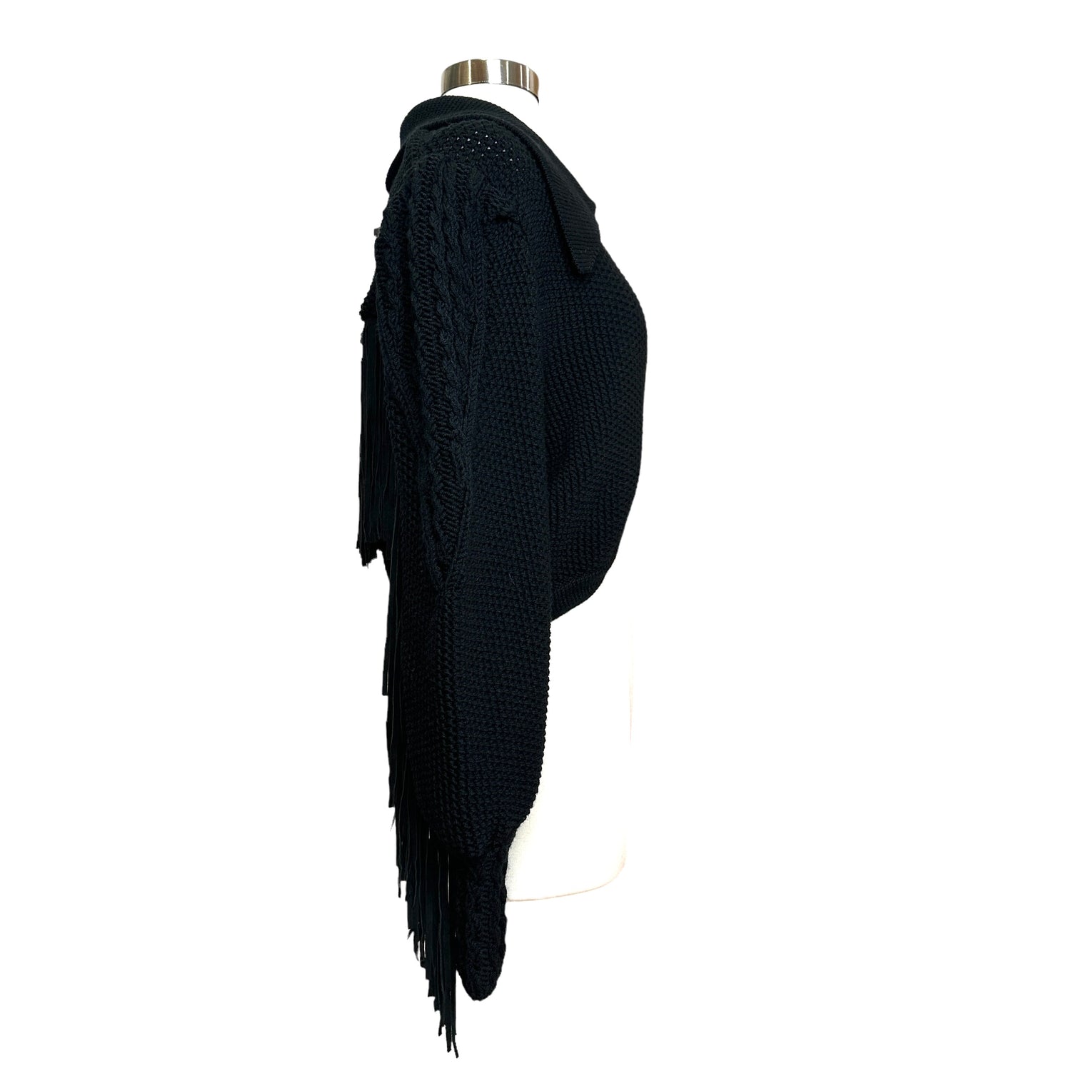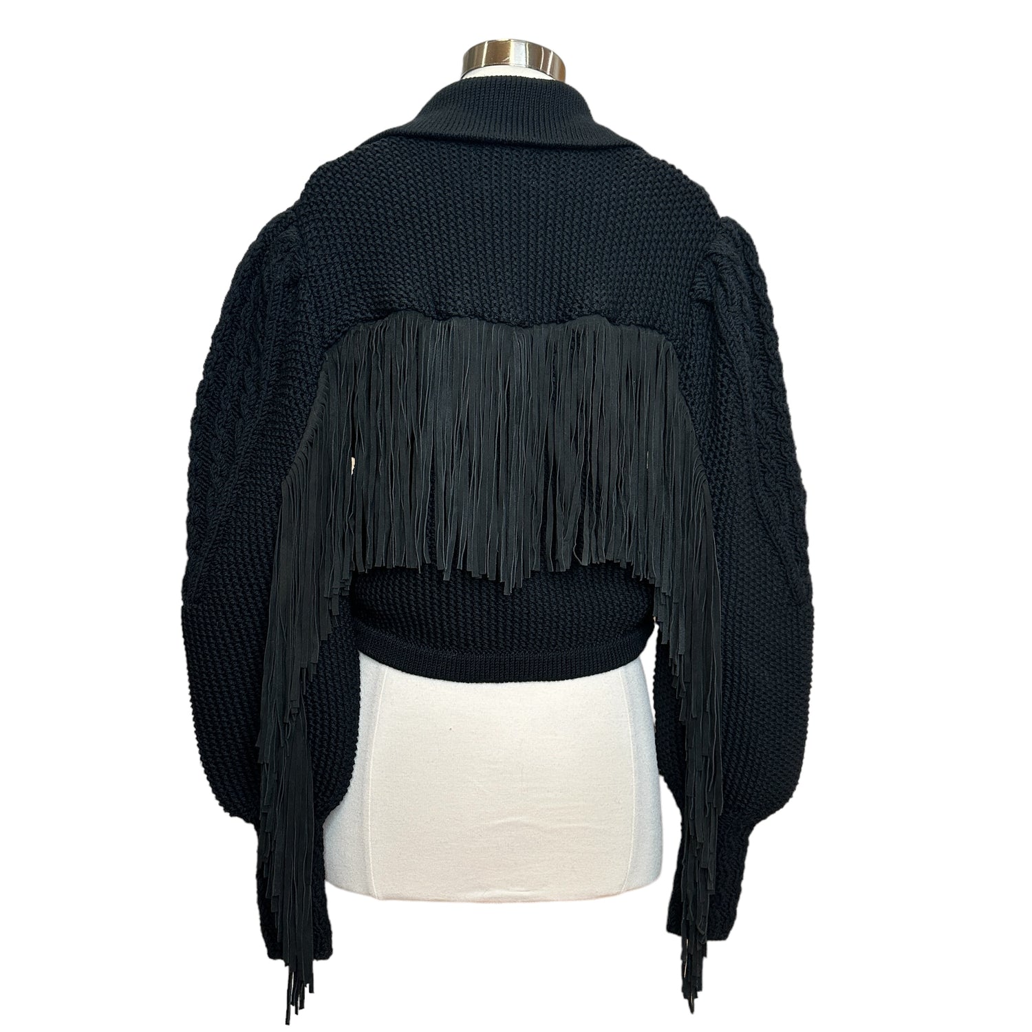 Hayley Menzies wool cardigan. Open front. Suede fringe details. Designer size small.
