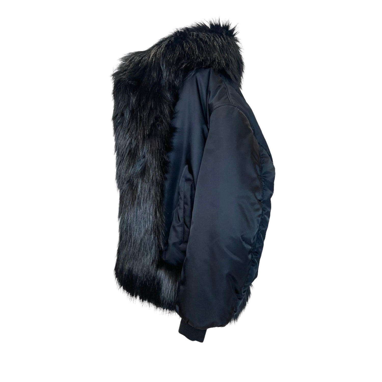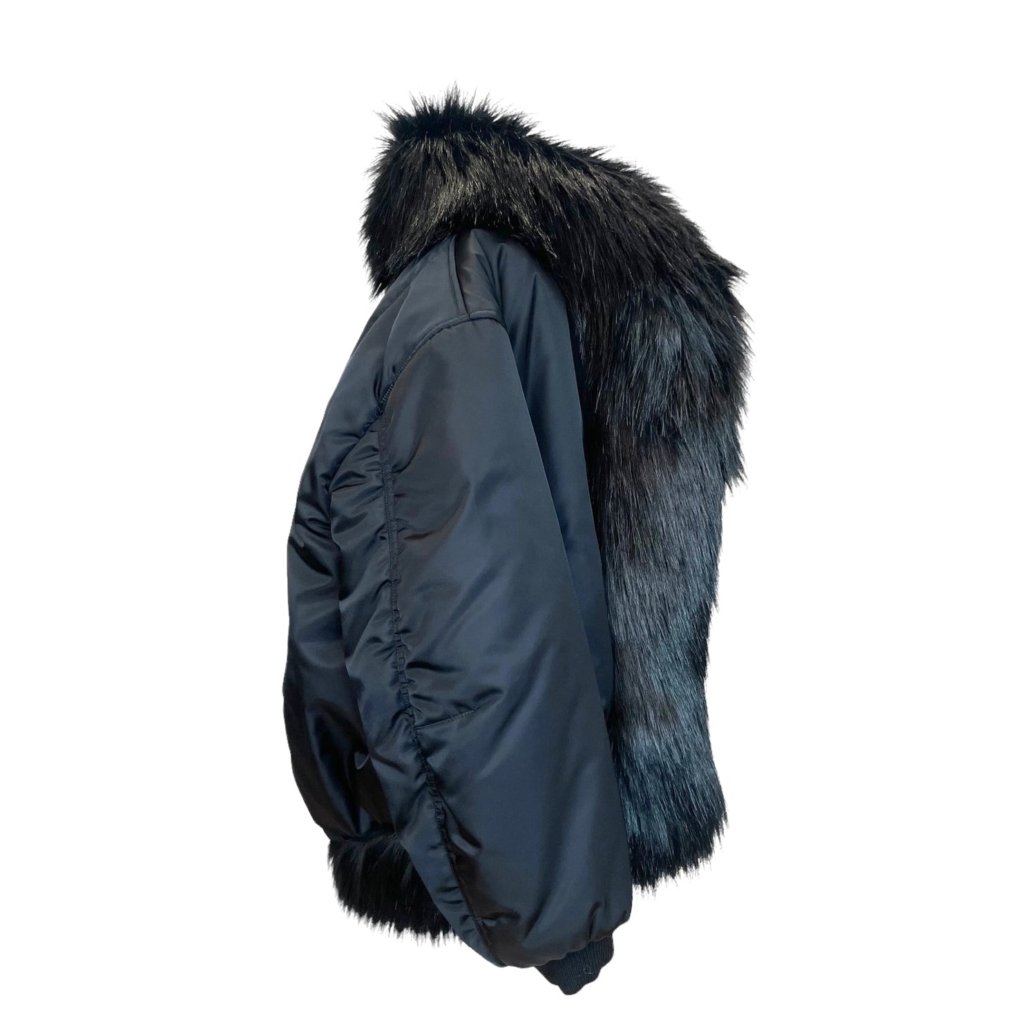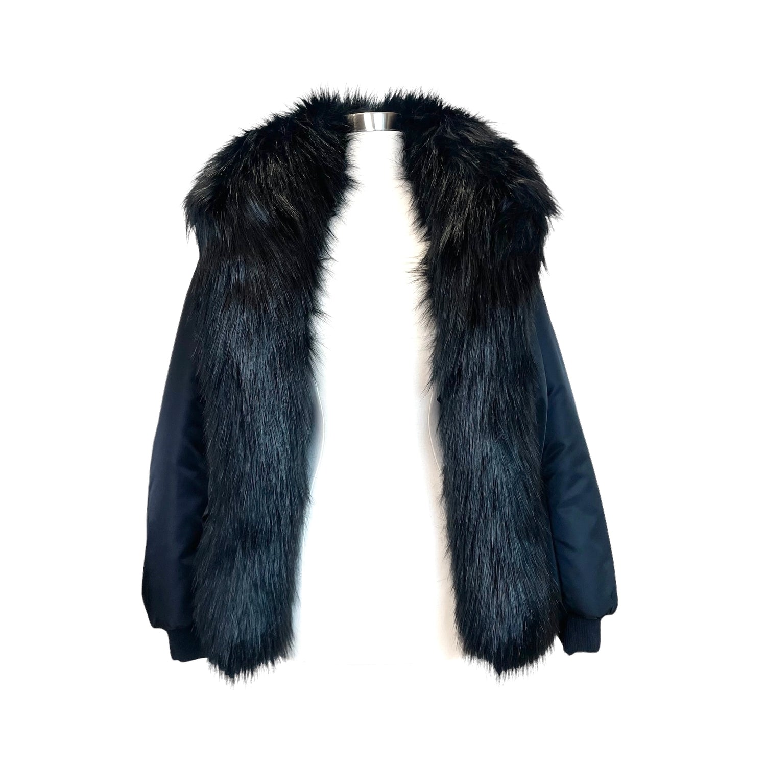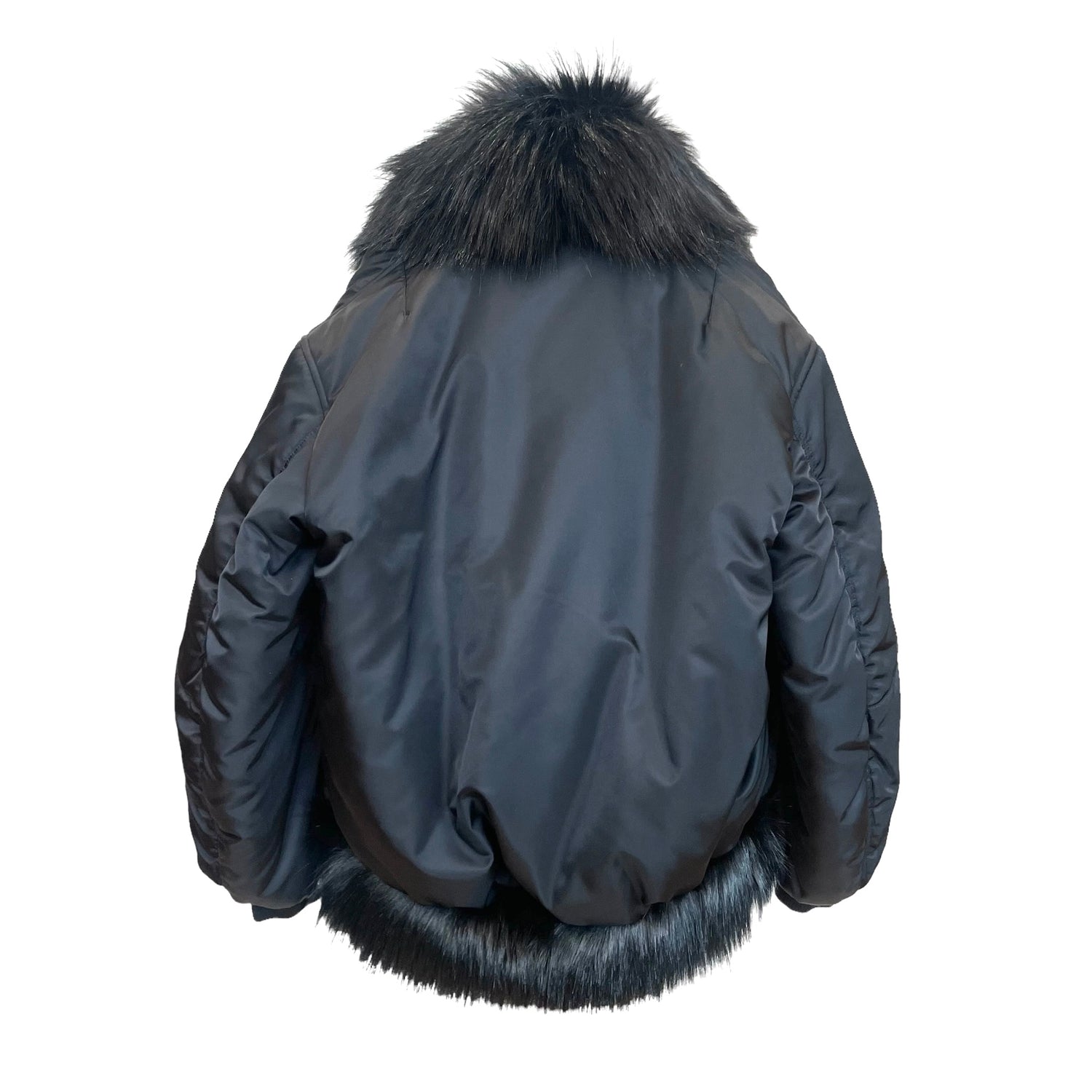 Saint Laurent 2022 black nylon and fur bomber jacket. Pockets. One interior pocket. Designer size 34.