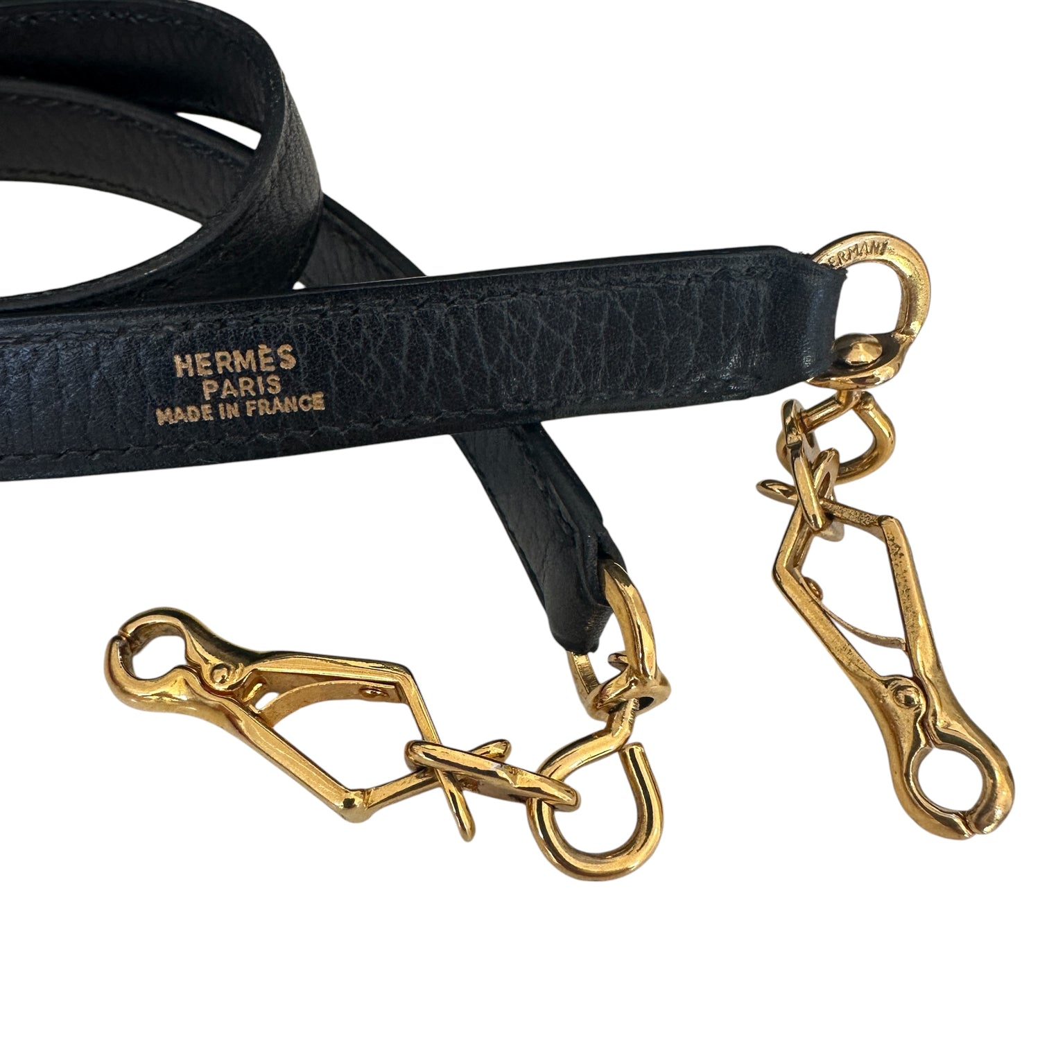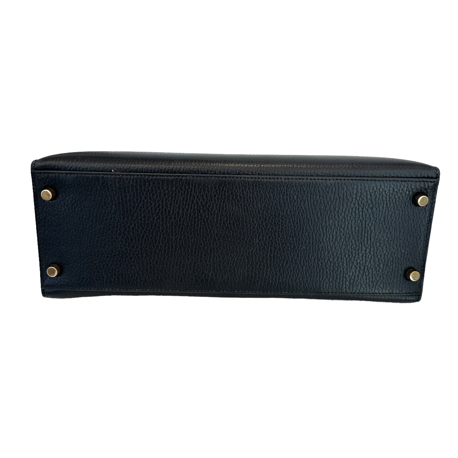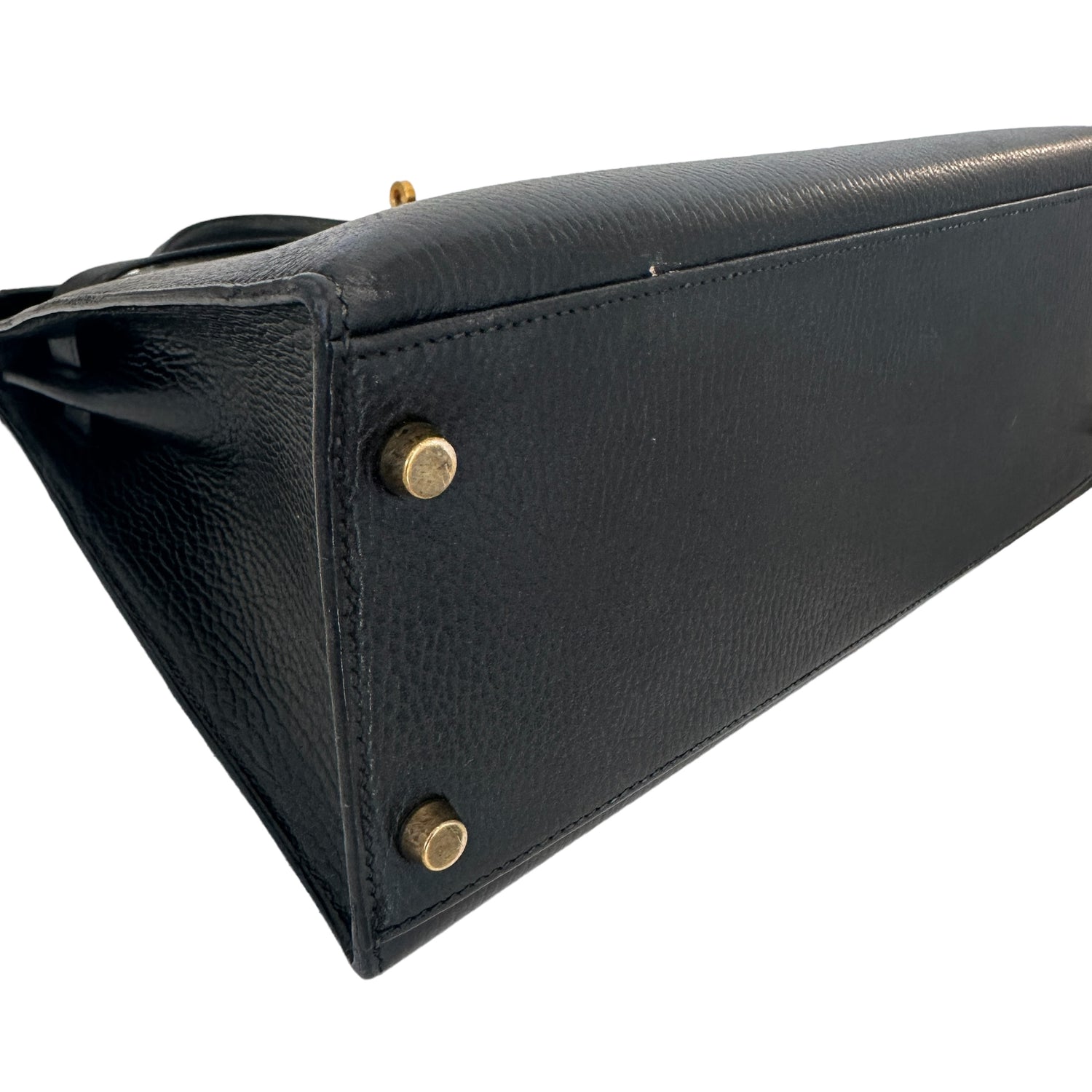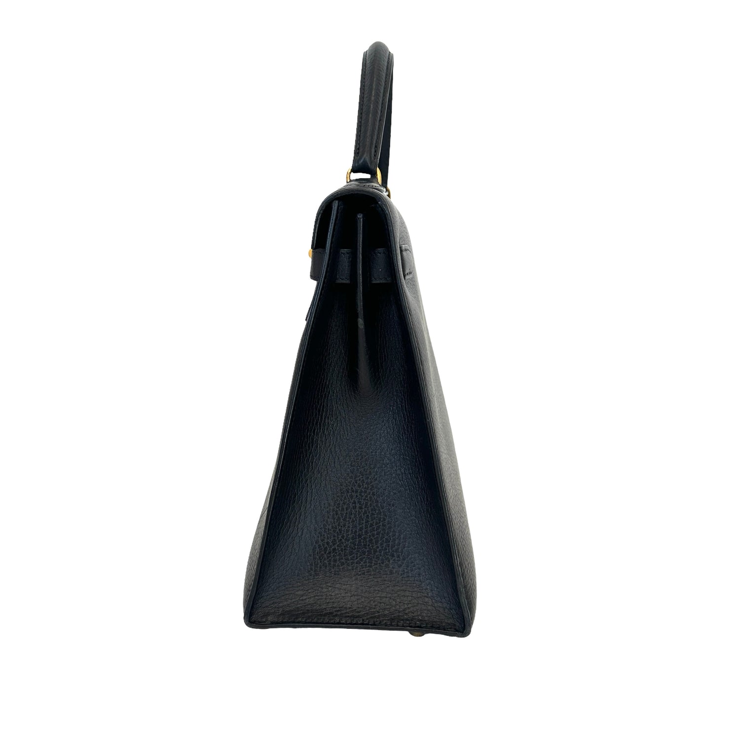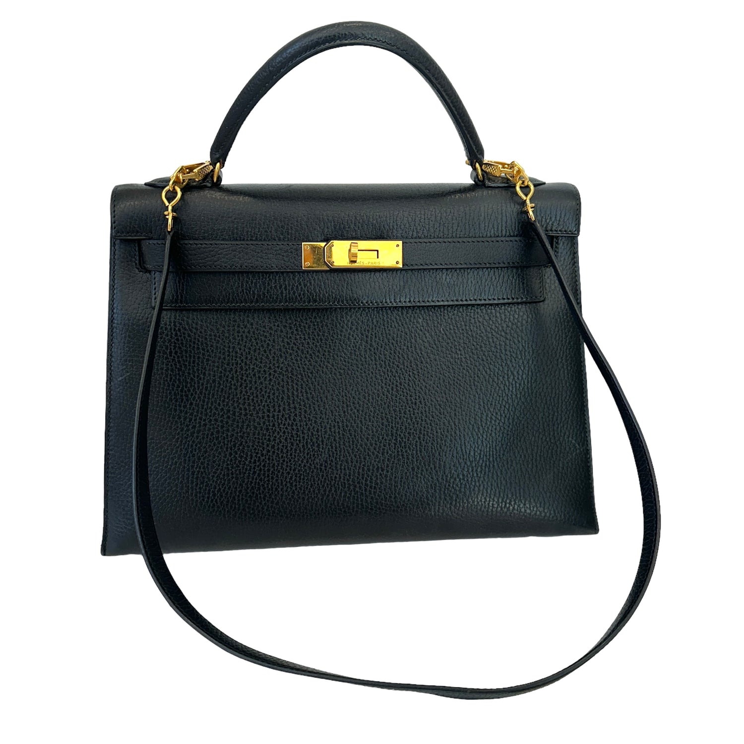 Hermes black Kelly 33 bag. Black Ardennes leather. 1991. Gold-plated hardware. Removable crossbody strap.