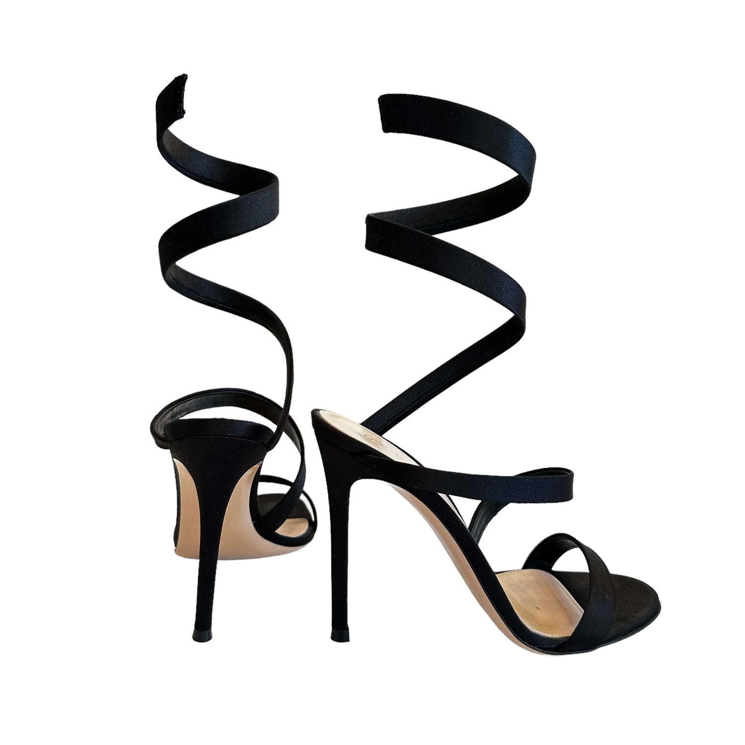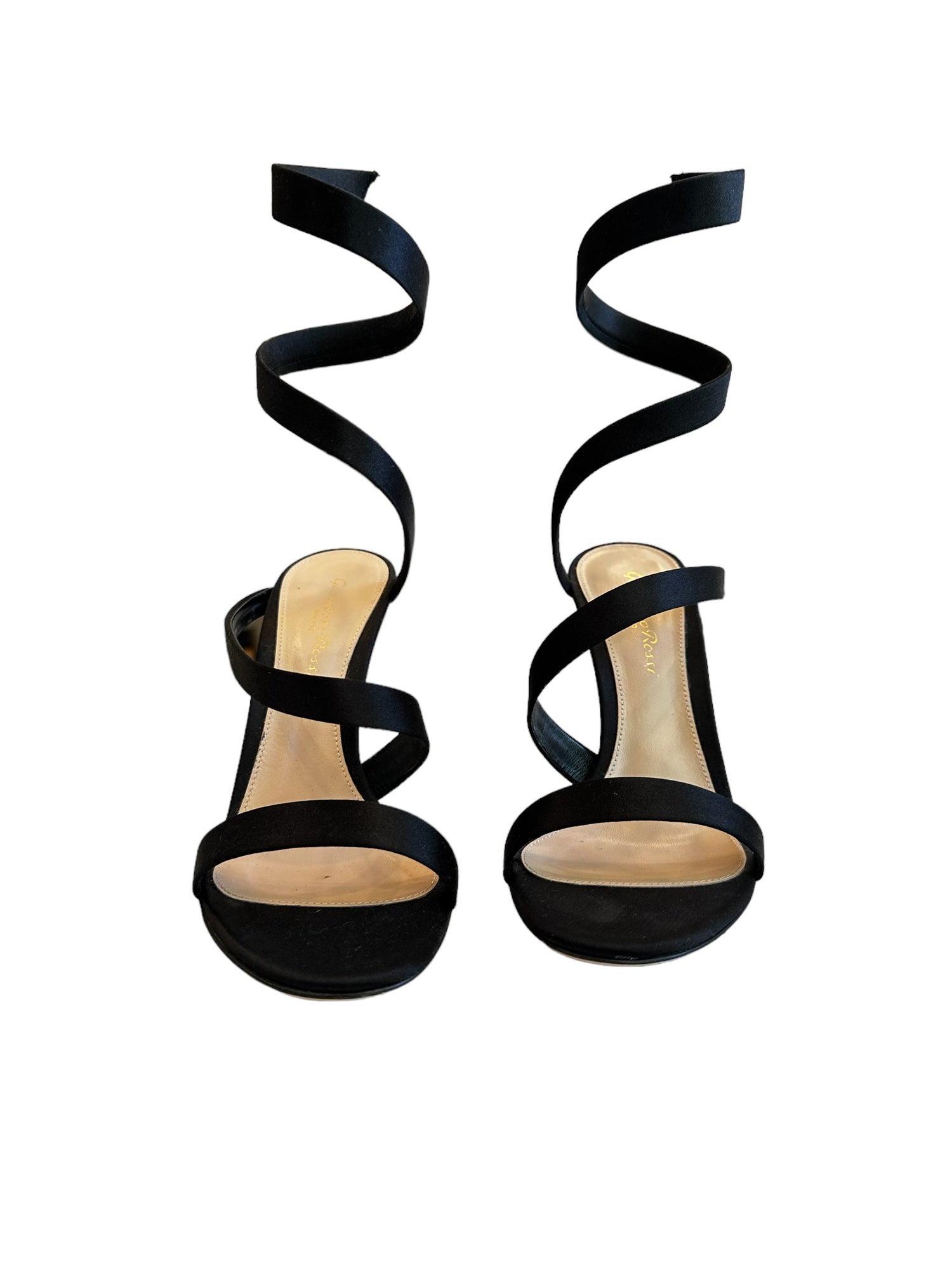 Gianvito Rossi black heels with twist around ankle straps. Incredibly unique and sexy. Designer size 36.5.