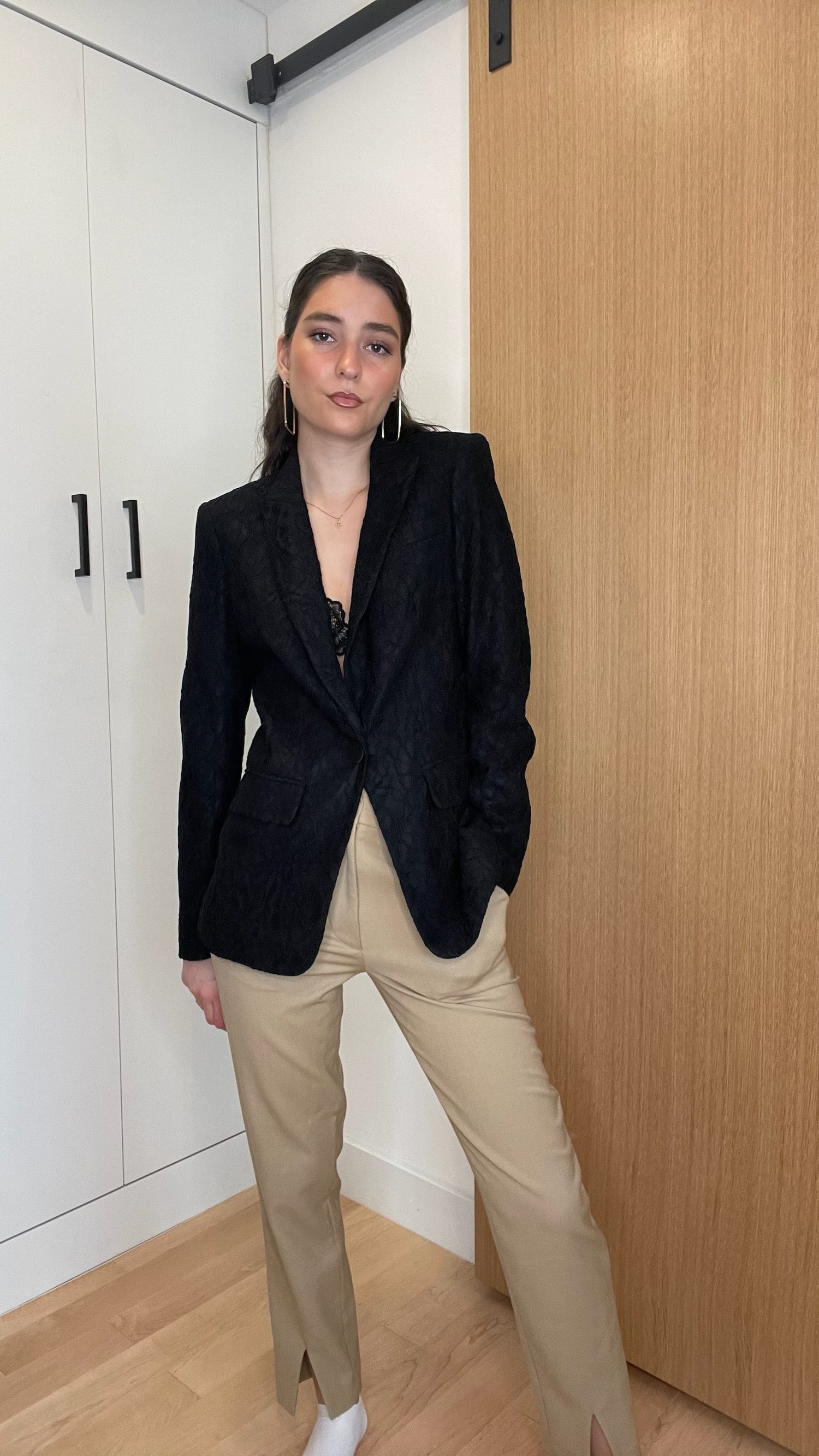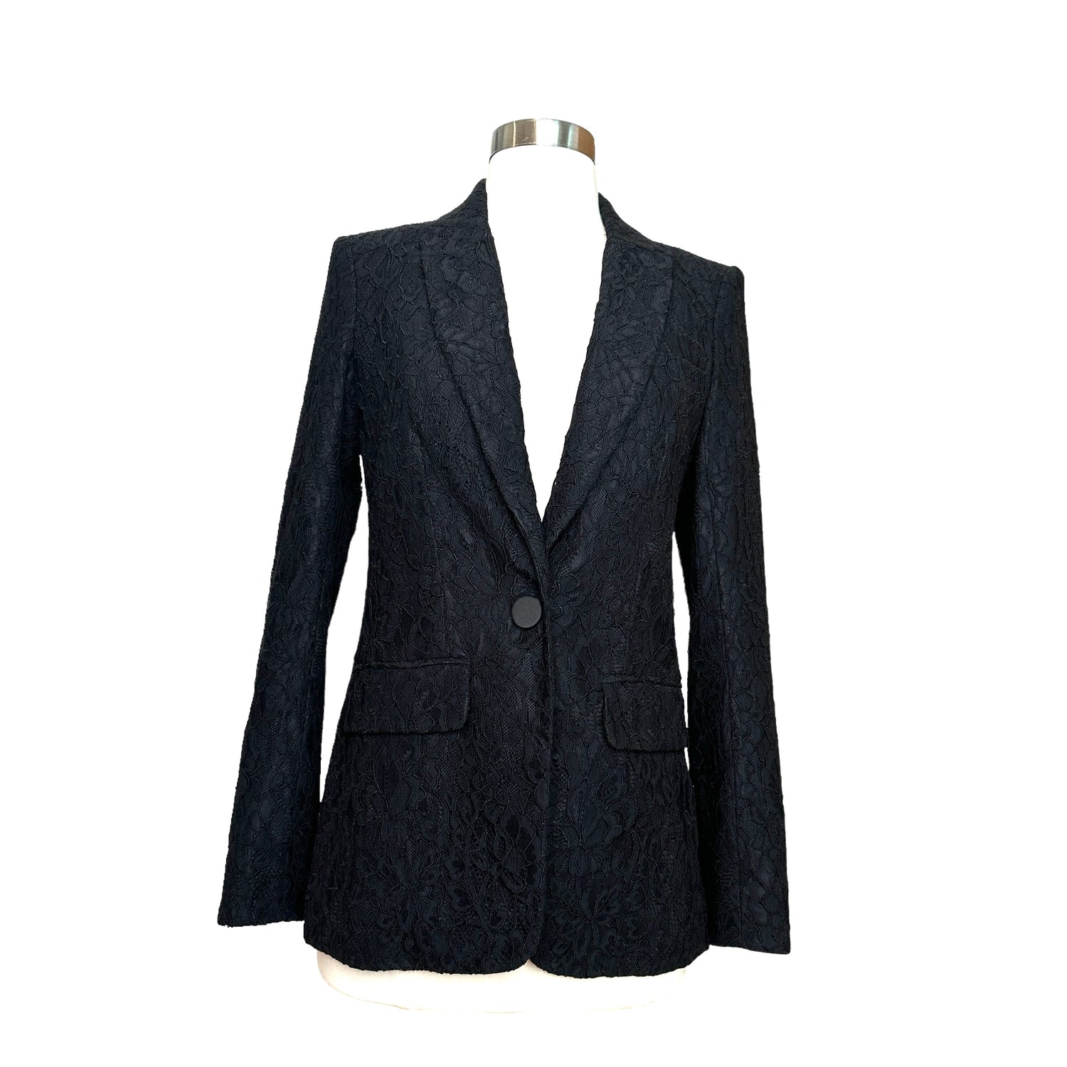 Veronica Beard black lace blazer. Pointed collar. One button closure at front. Designer size 0.