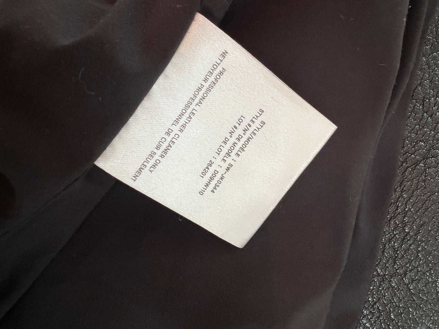 Rich, rainy leather. Two zipped pockets. Zipper on each sleeves. Lamb leather.