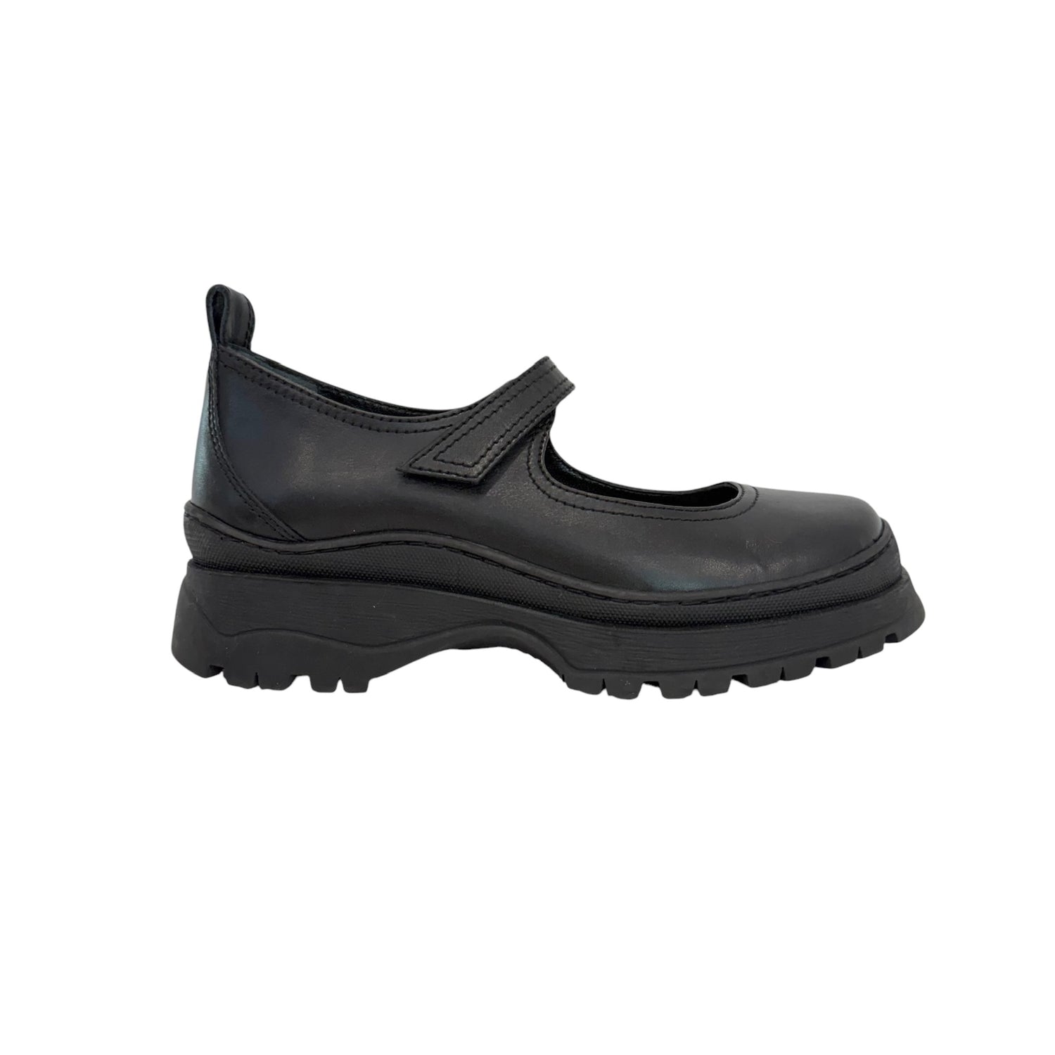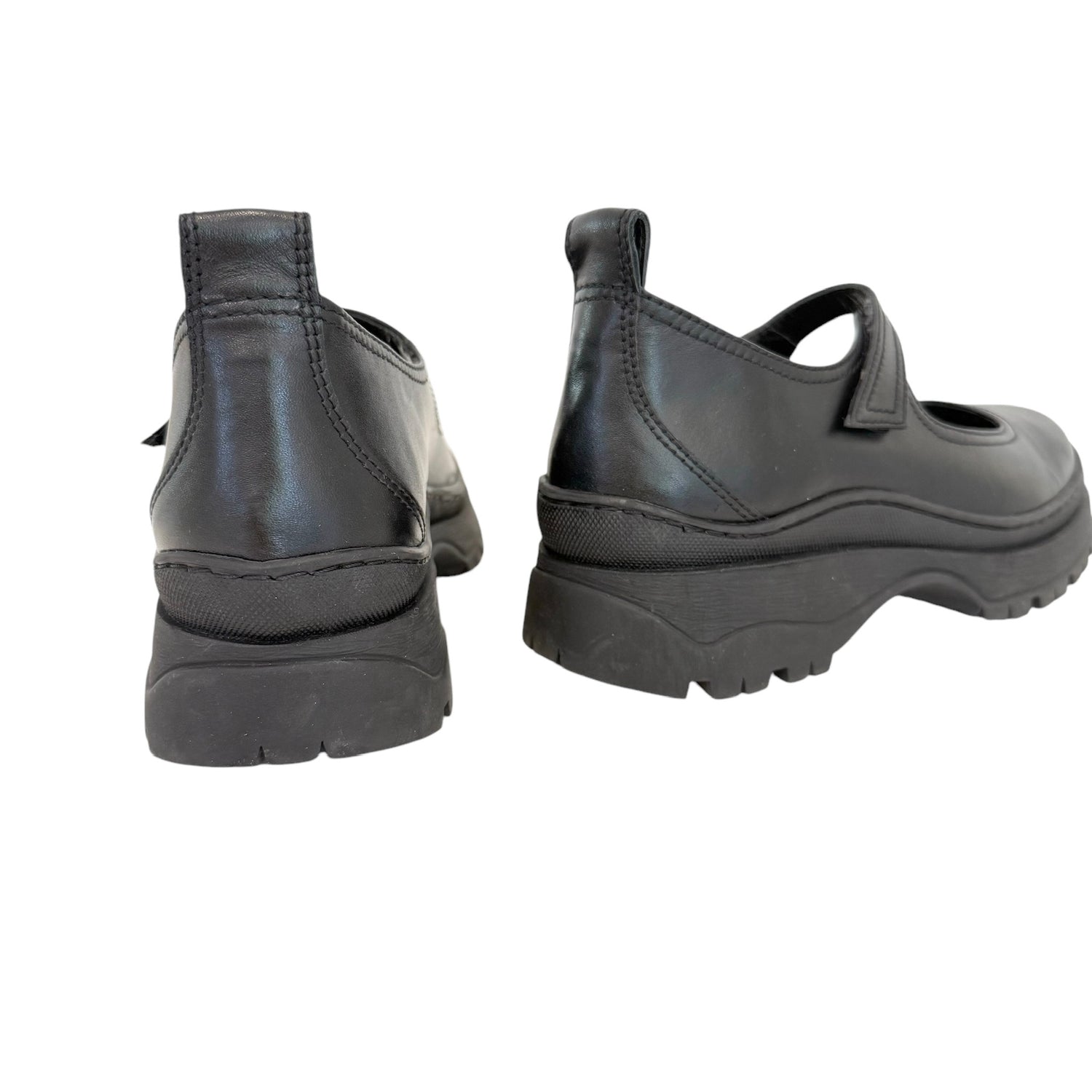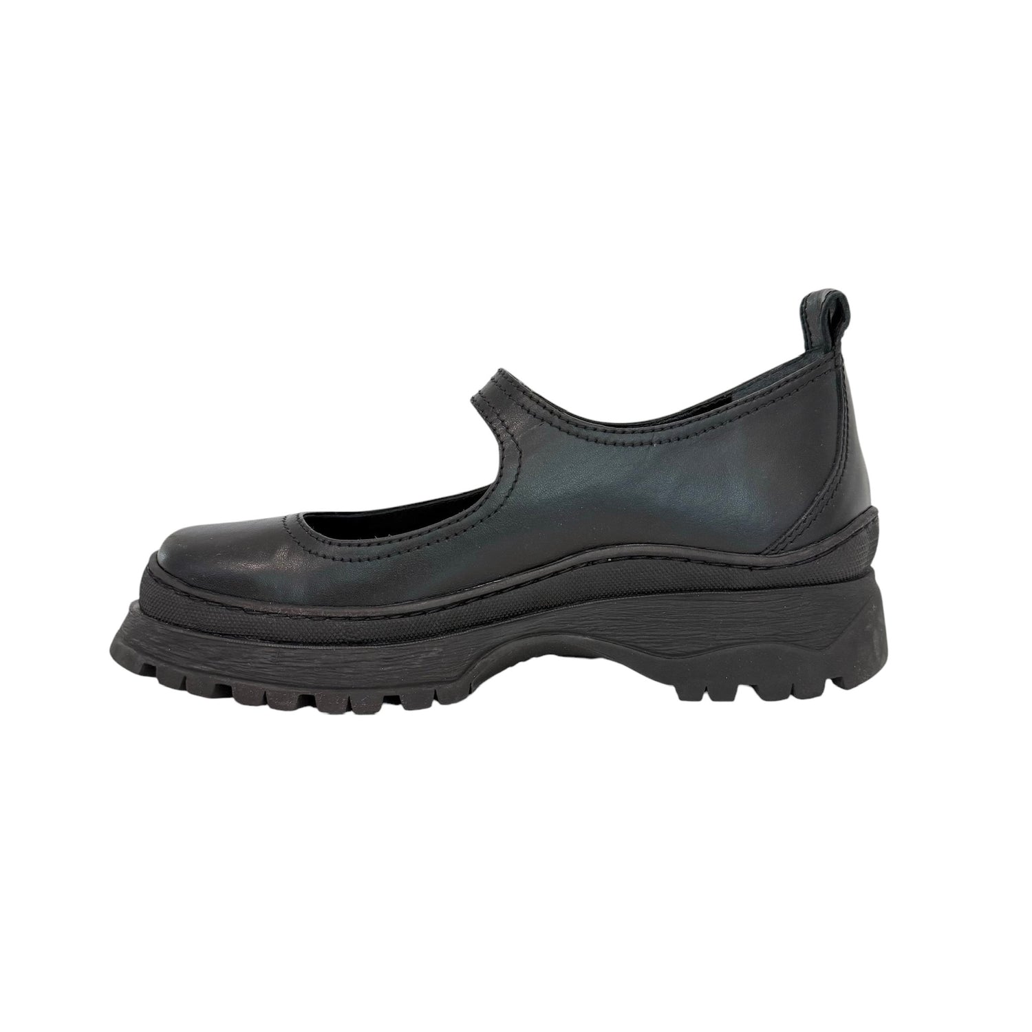 Black Leather Mary-Jane Shoes - 7