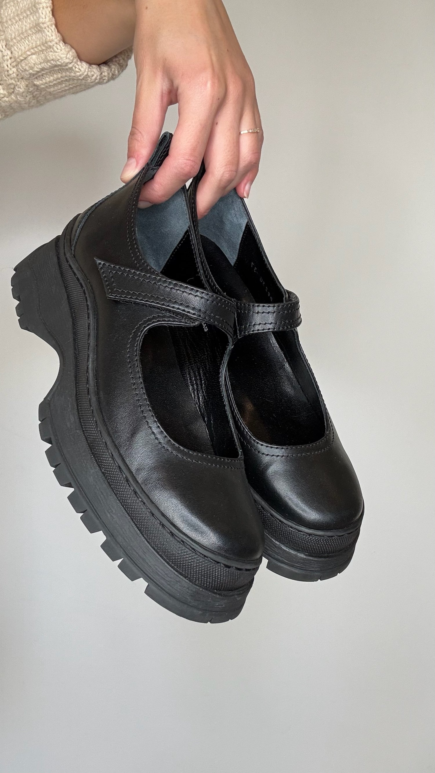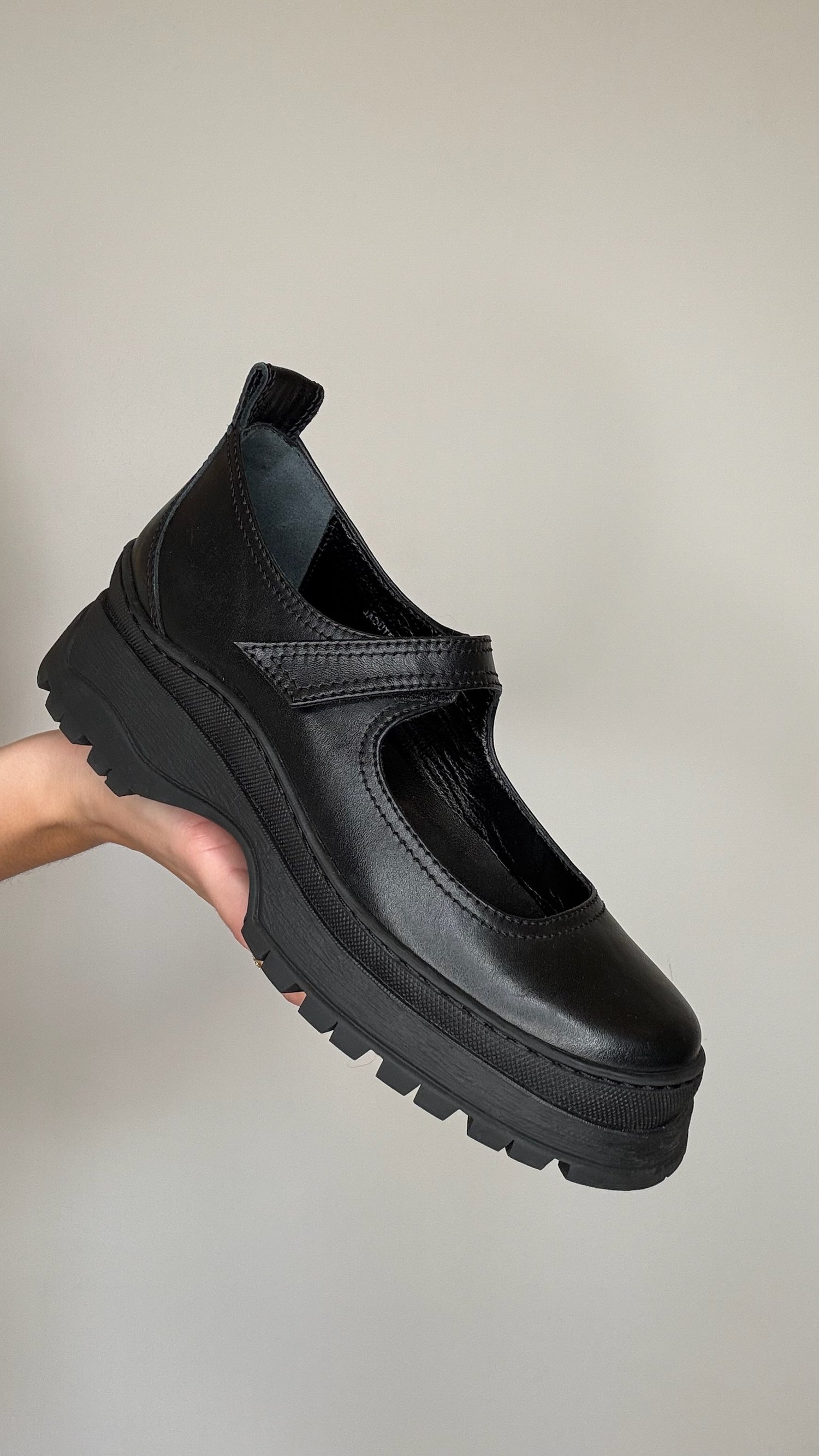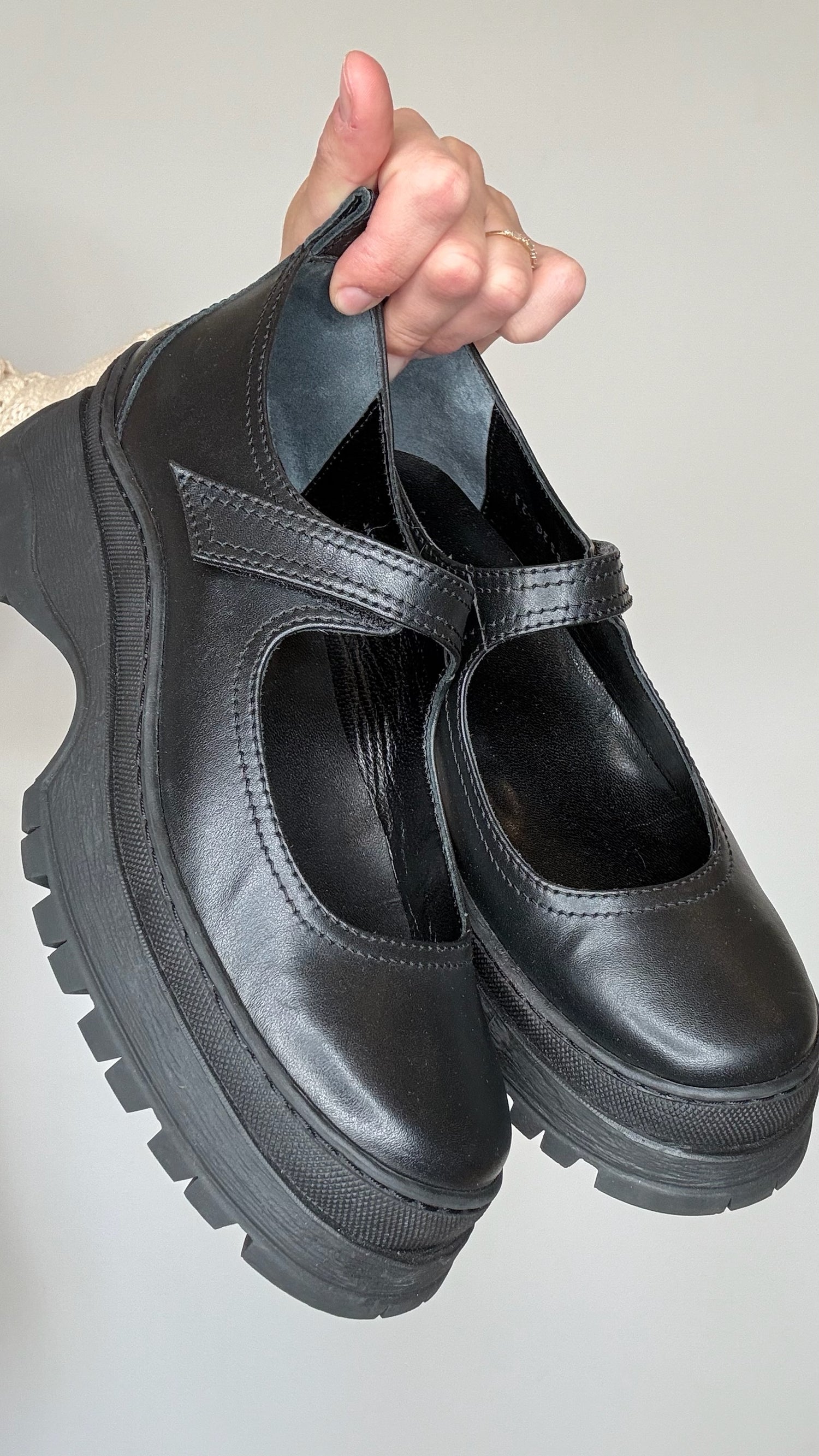 Black Leather Mary-Jane Shoes - 7
