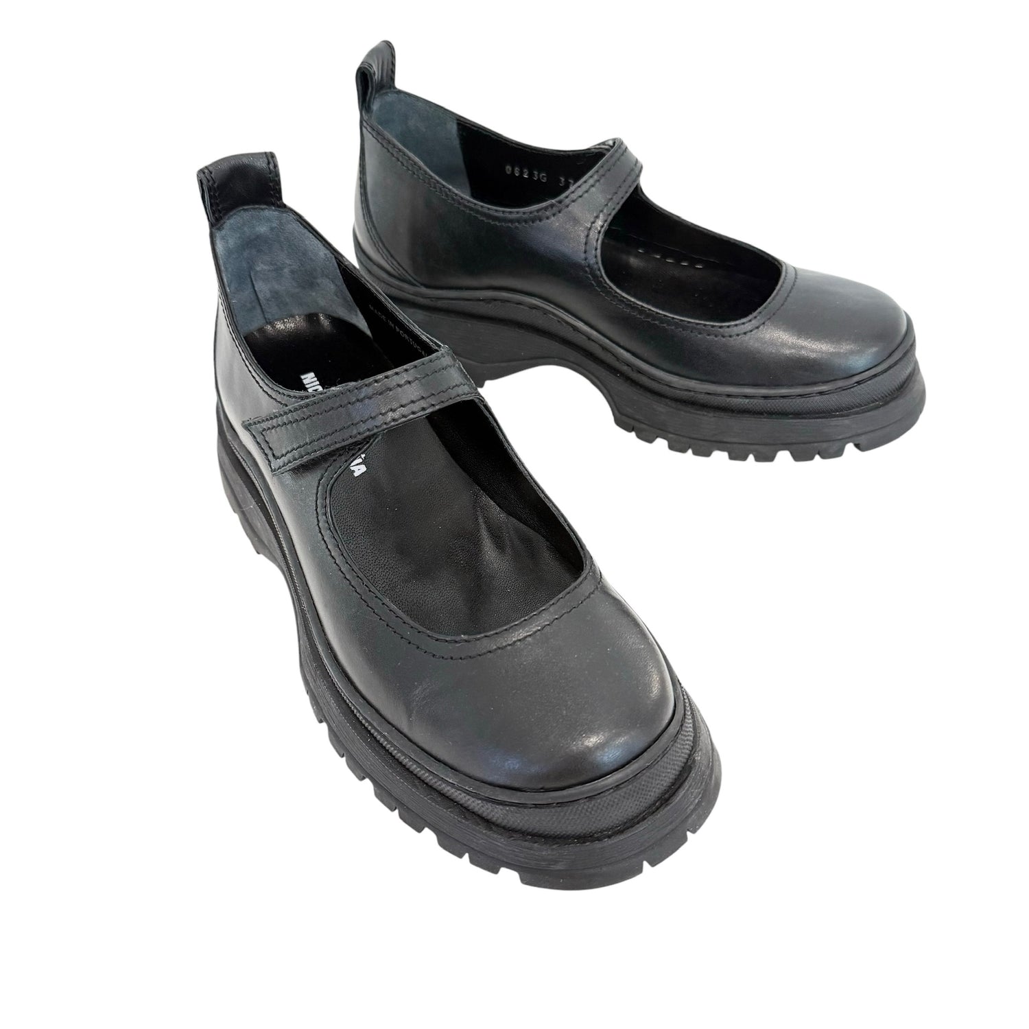 Nicole Saldana black leather Mary-Jane shoes. Designer size 37.