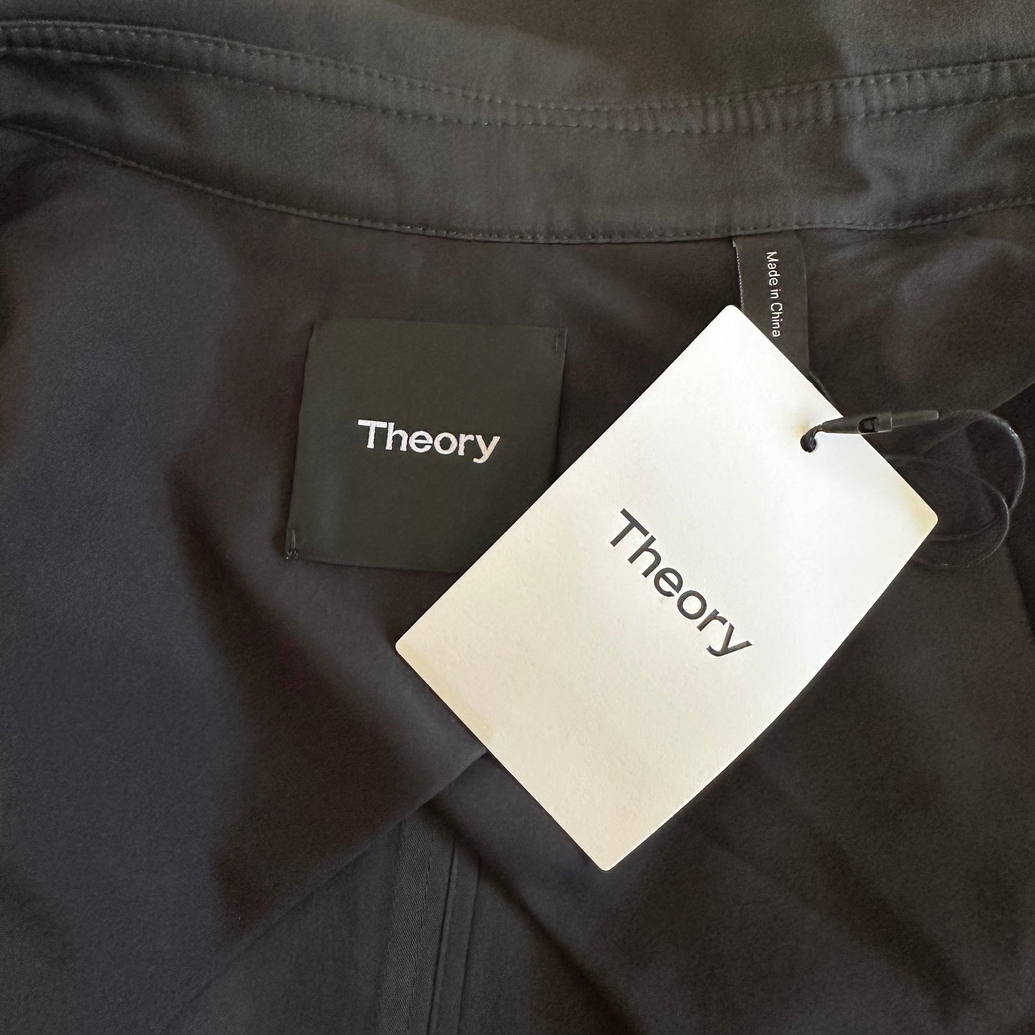 Theory light weight black blazer. Pointed collar. Removable belt. Designer size Medium.