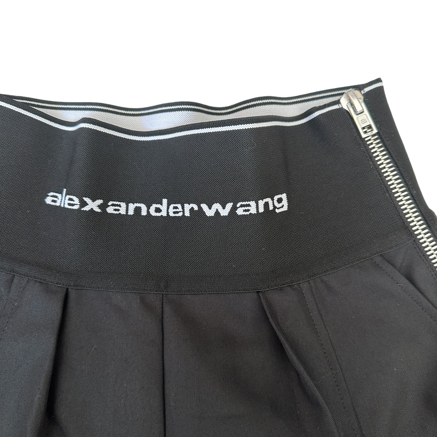 Alexander Wang black logo shorts. Logo elasticised waistband. Silver-tone zipper at side. Designer size 2.