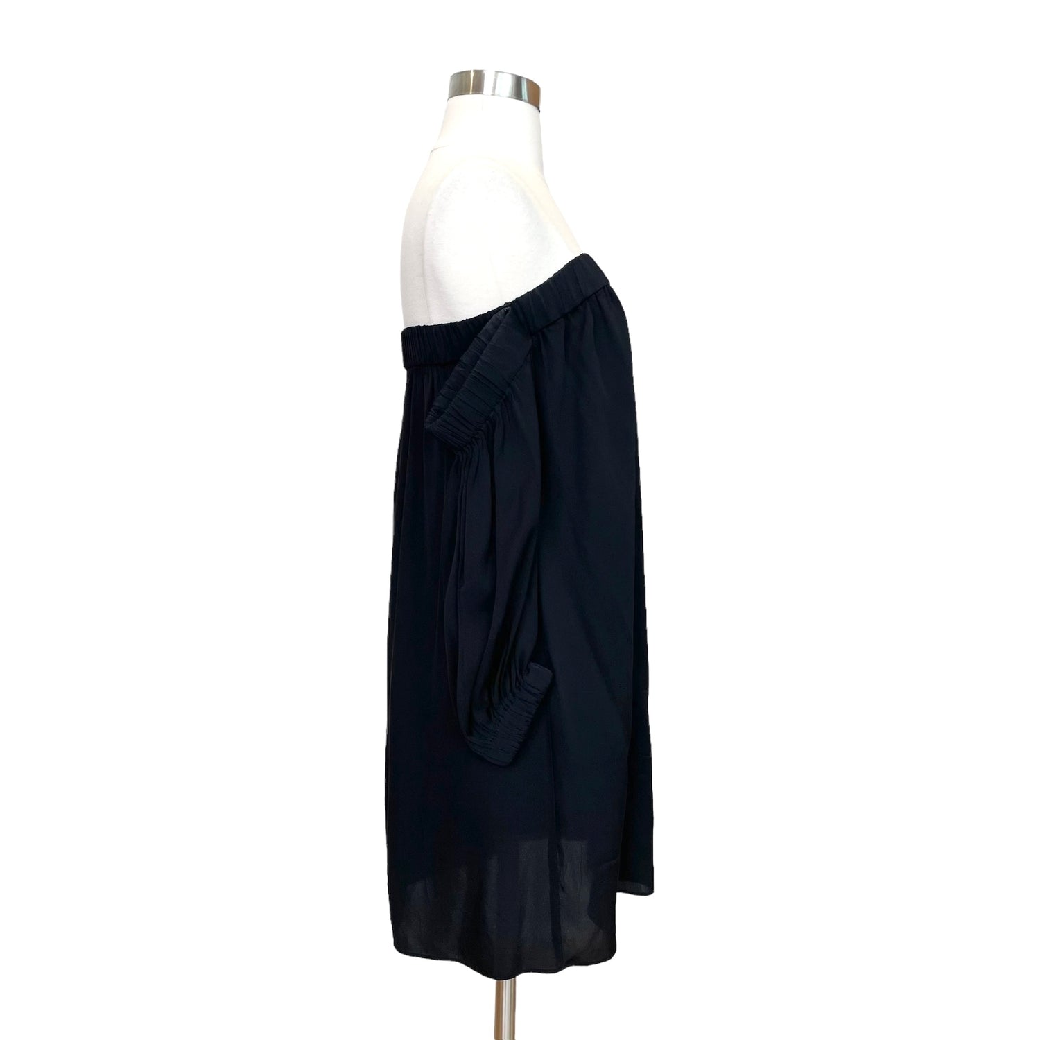 Milly off-shoulder black dress. Elasticized. Designer size small.