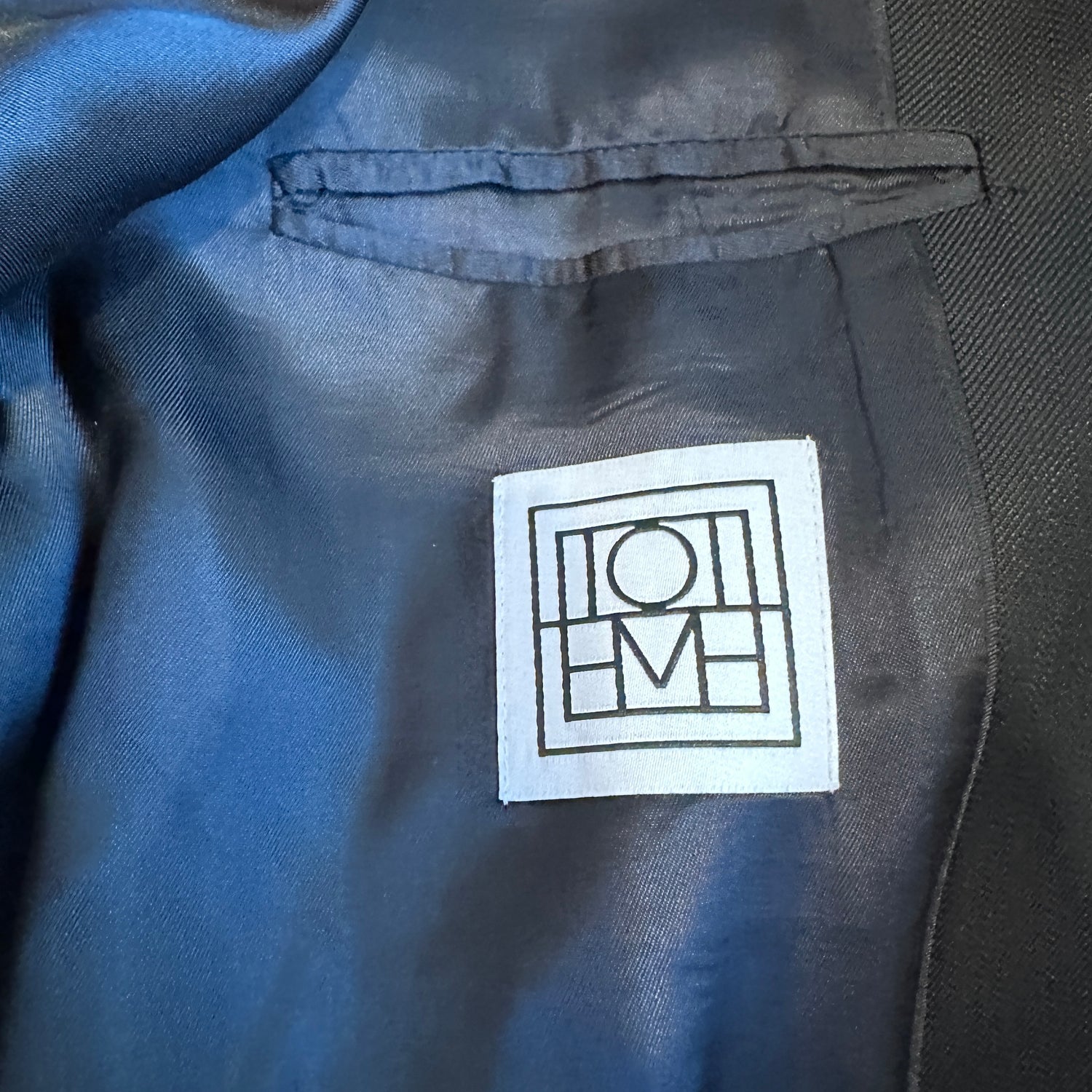 Toteme black blazer. Pointed collar. Two exterior pockets. One interior slit pocket. Designer size36.