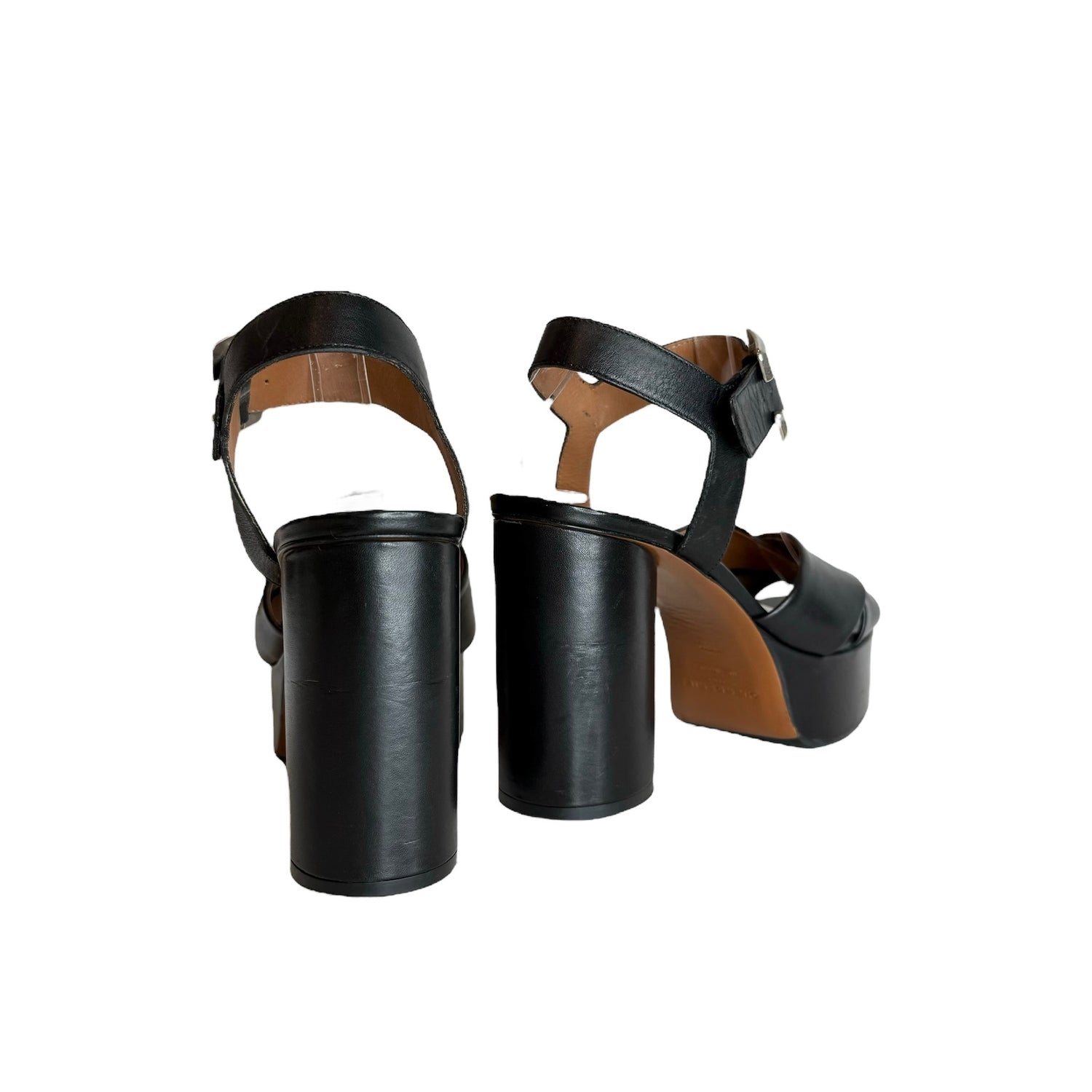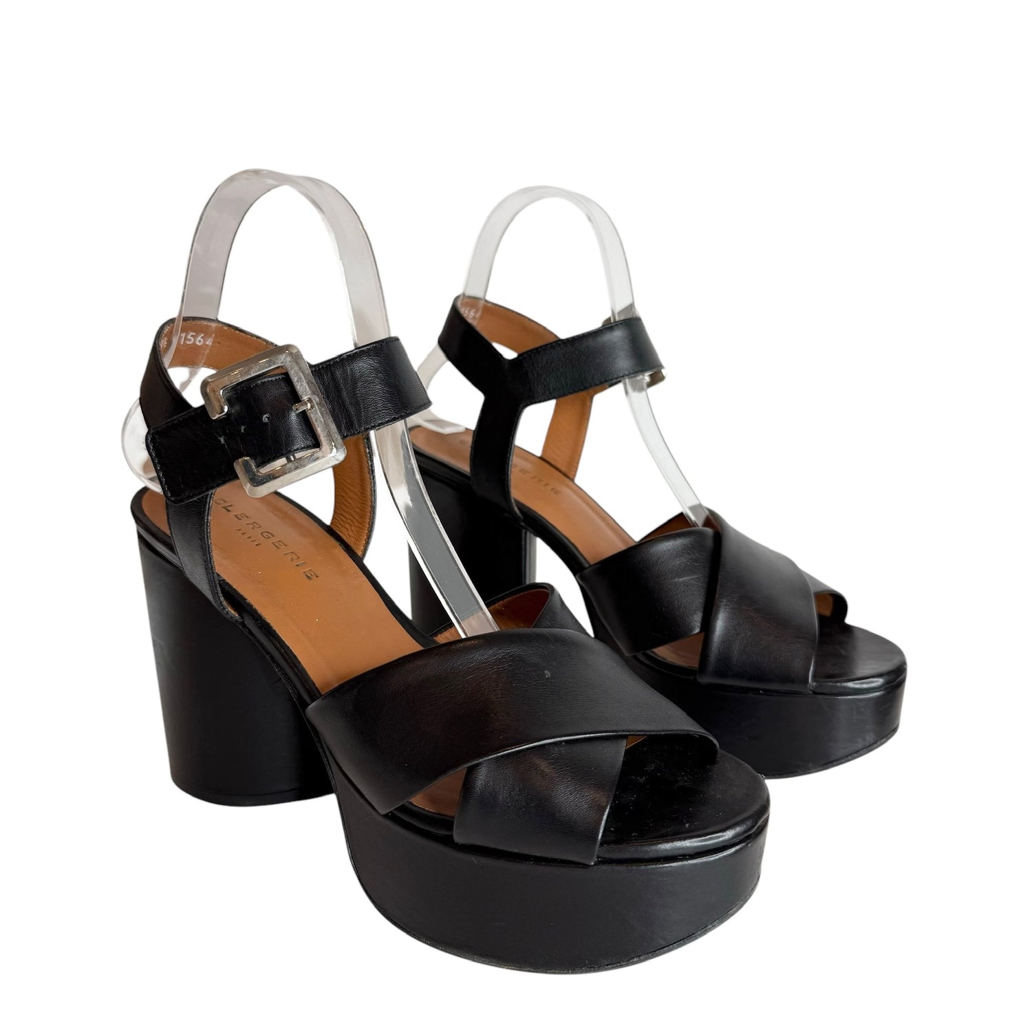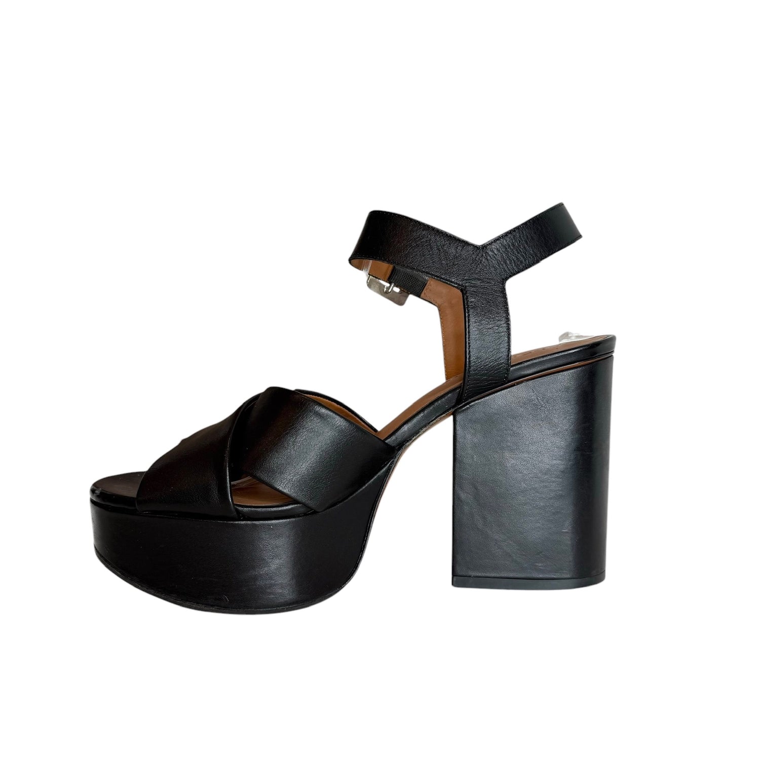 Robert Clergerie black platform heels. Black leather. Open toe with ankle strap. Designer size 38.5