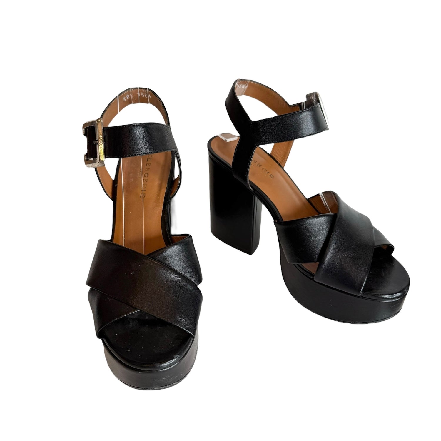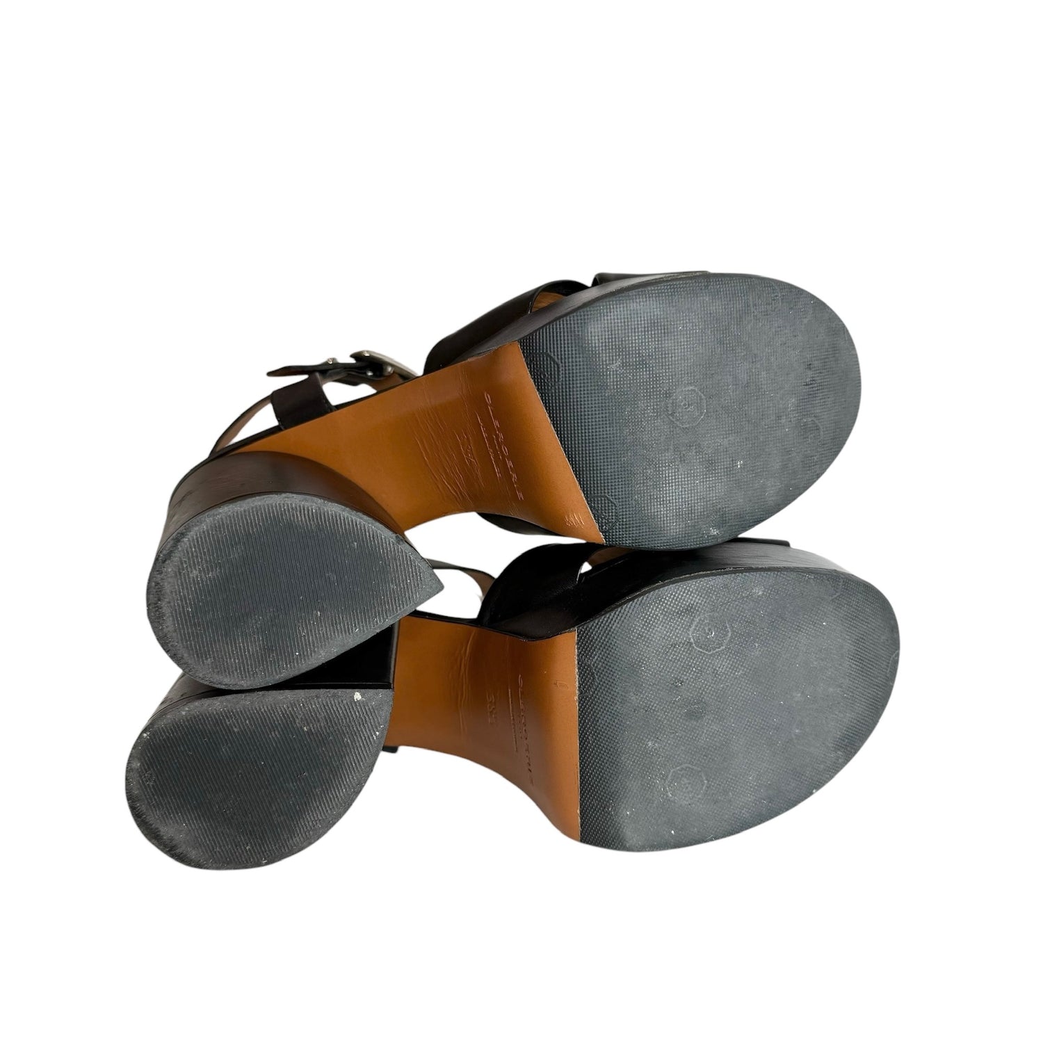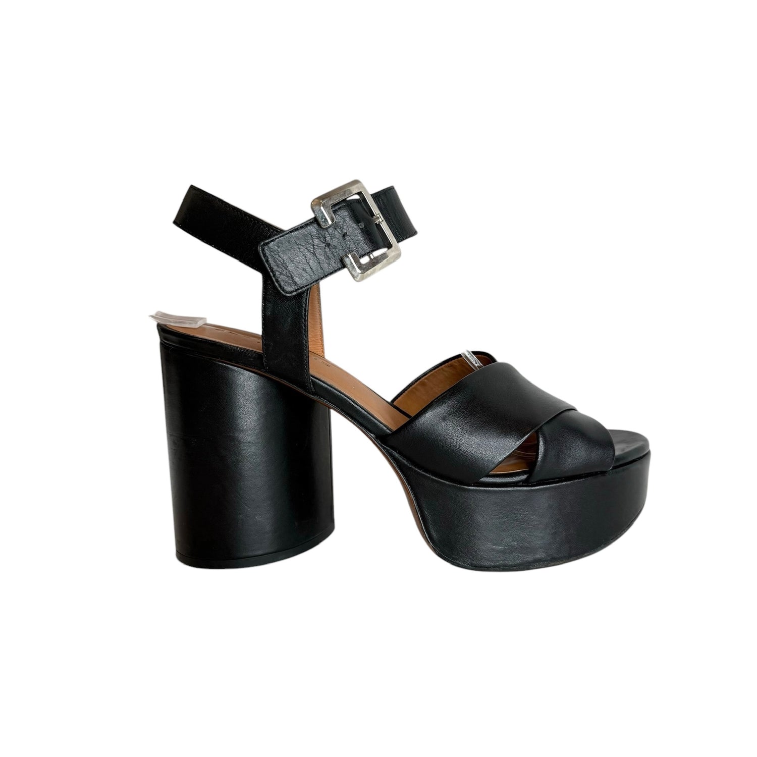 Robert Clergerie black platform heels. Black leather. Open toe with ankle strap. Designer size 38.5