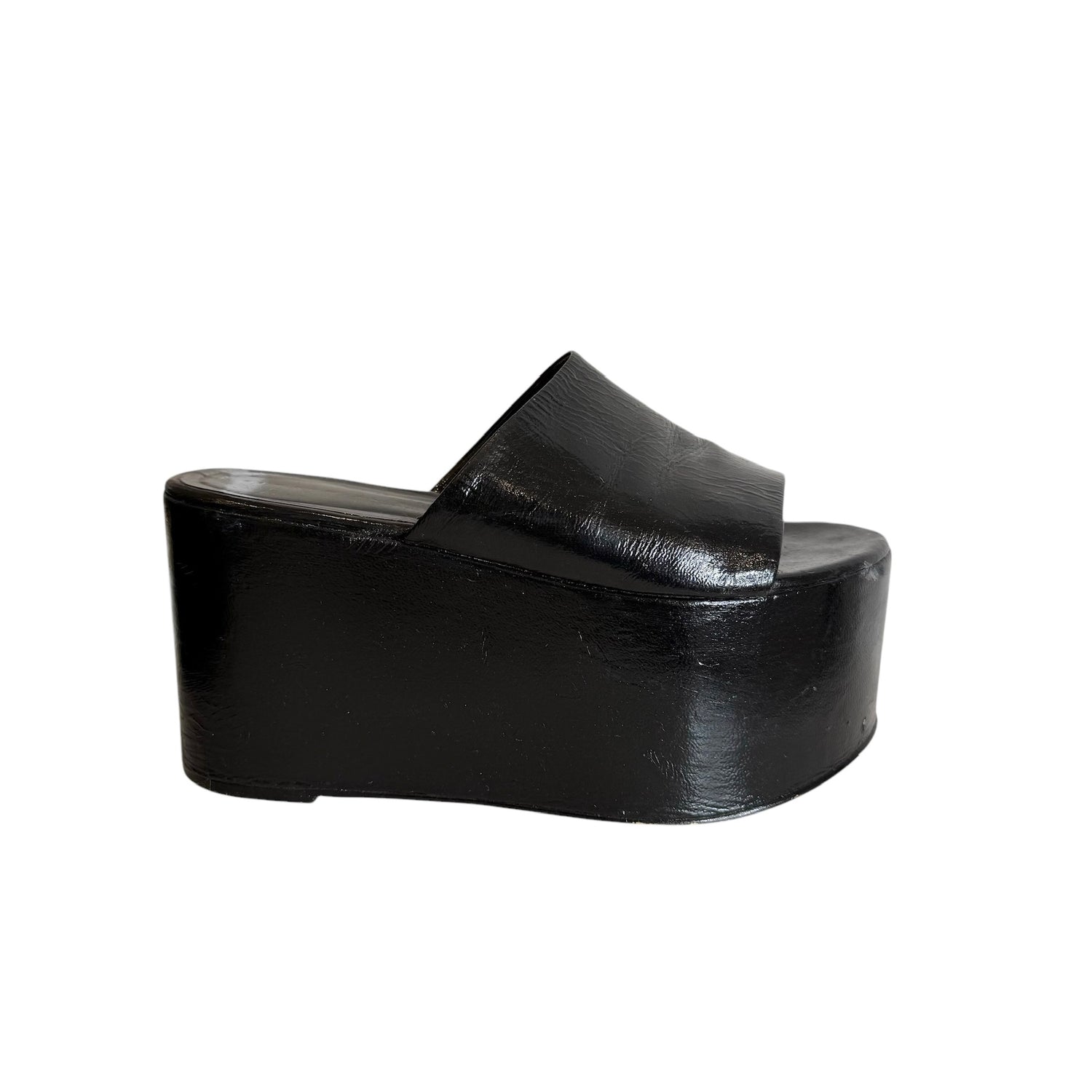 Simon Miller platform shoes. Black leather. Round toe. Designer size 38.