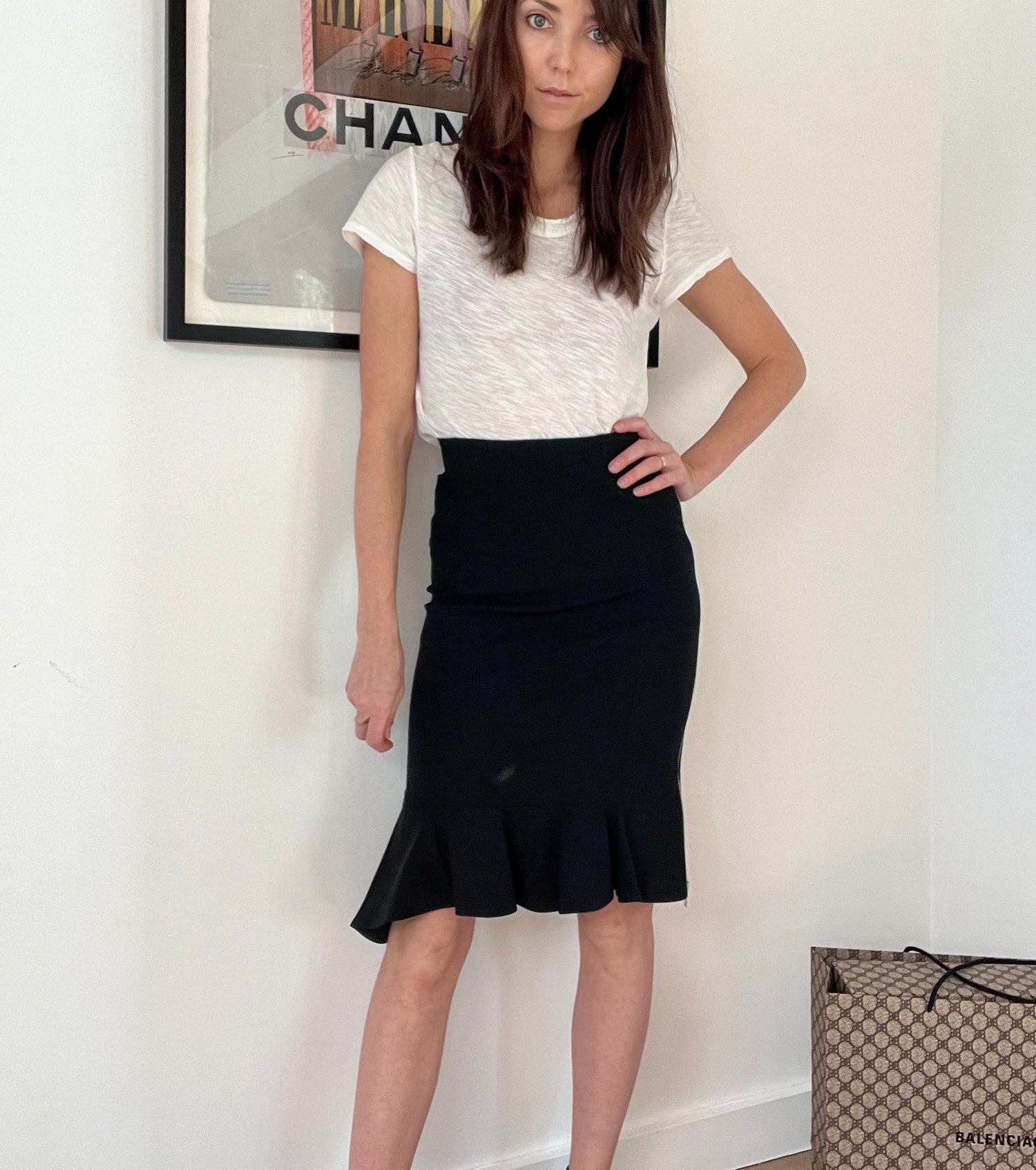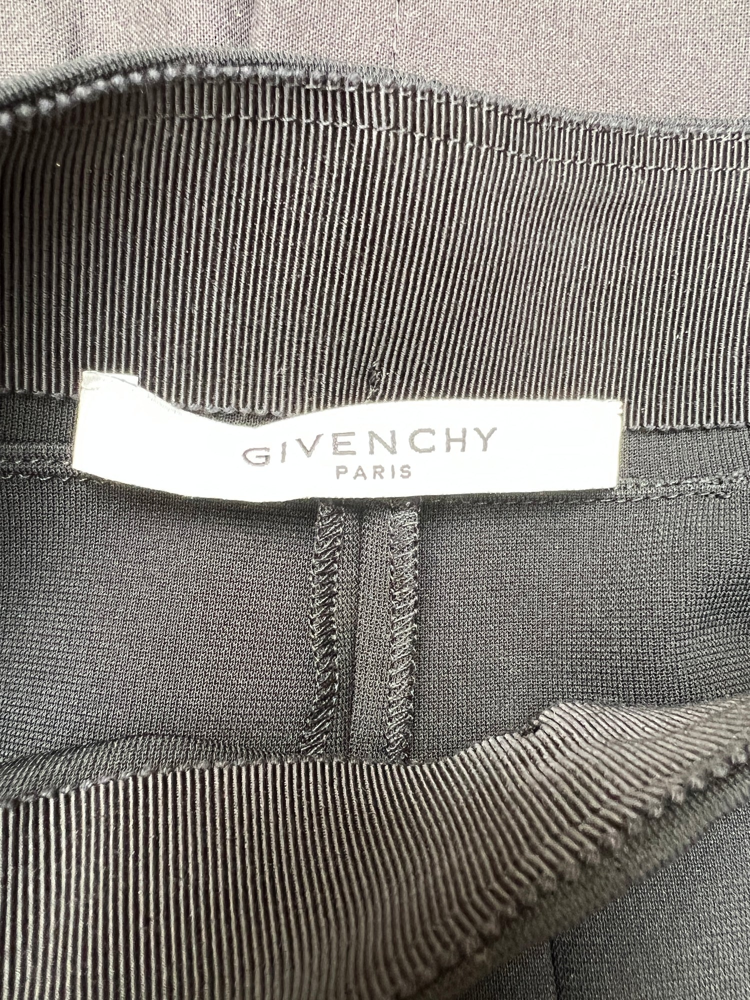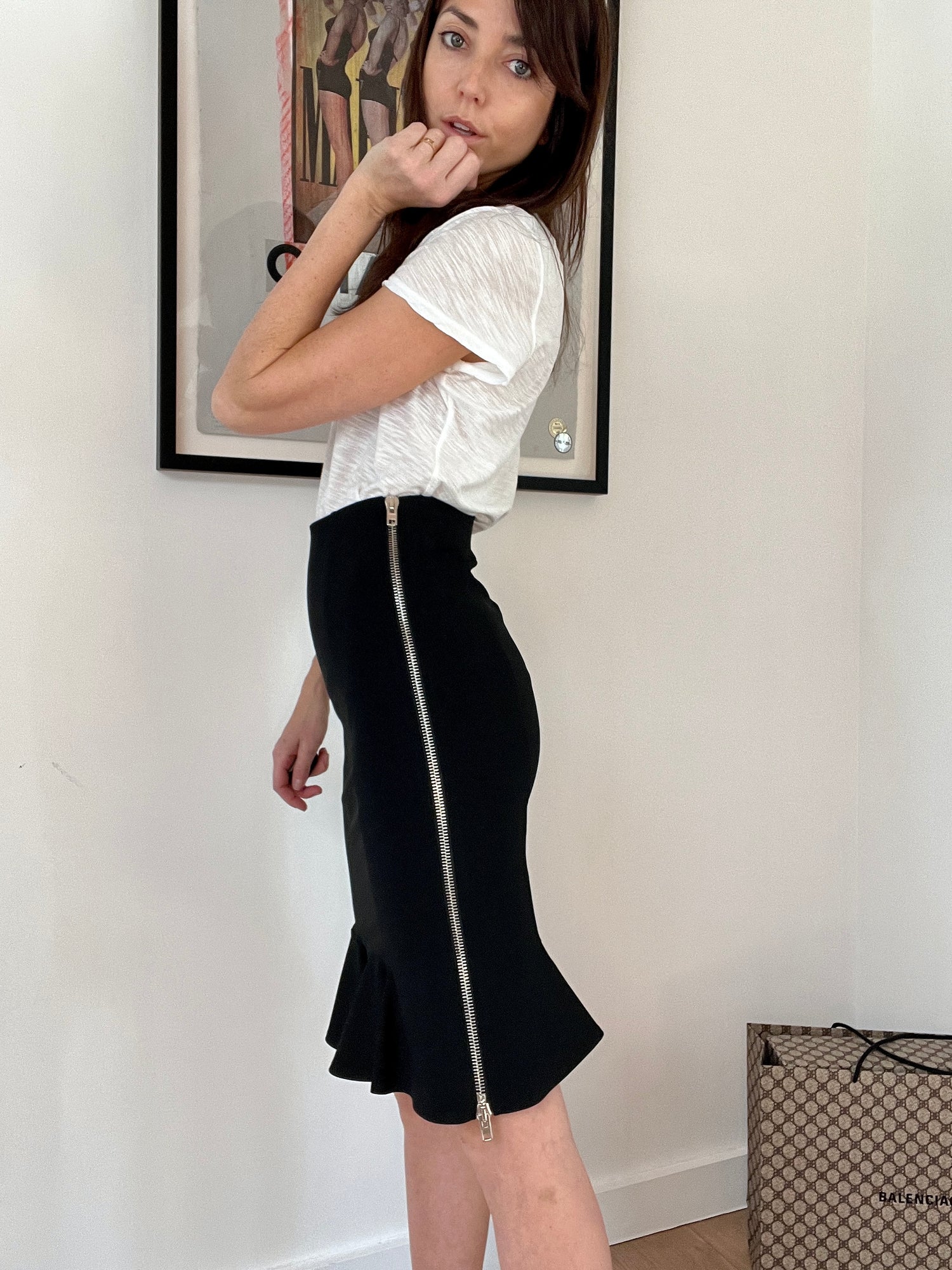 Black Givenchy skirt with large zipper at left side. Size 40.