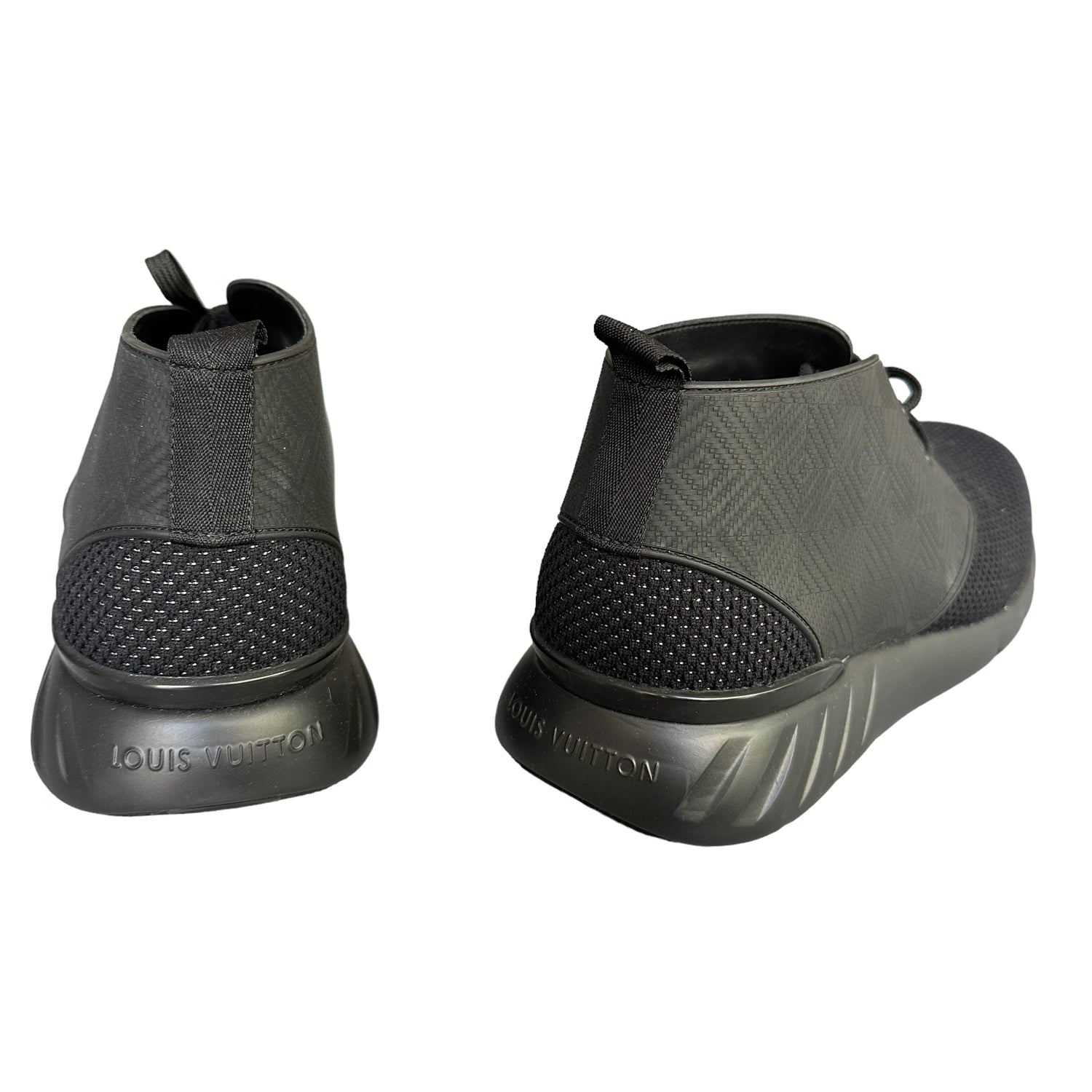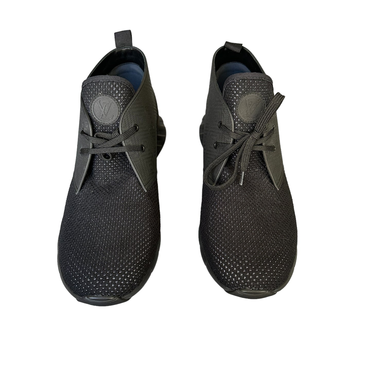 Louis Vuitton black sneakers. Designer size 9.5 (men), 11 (women).