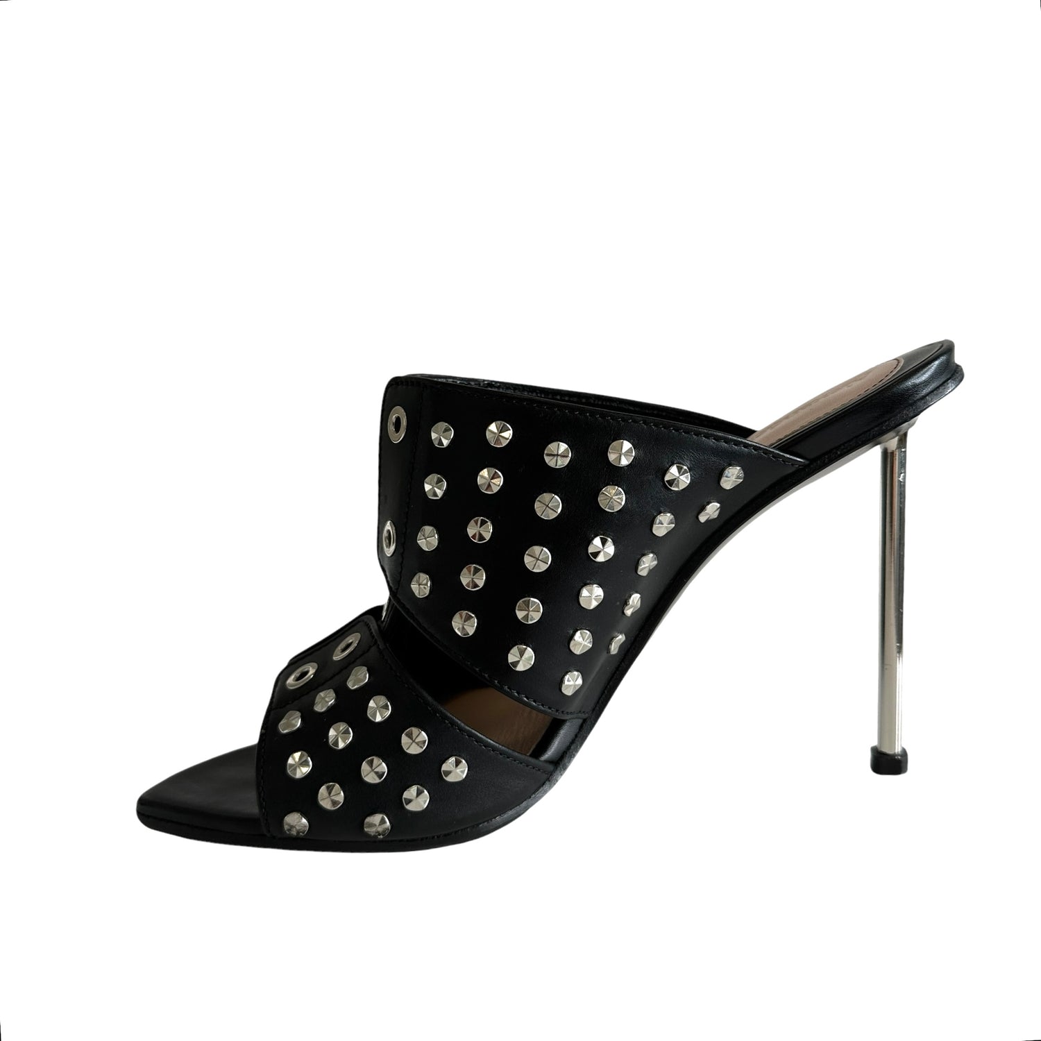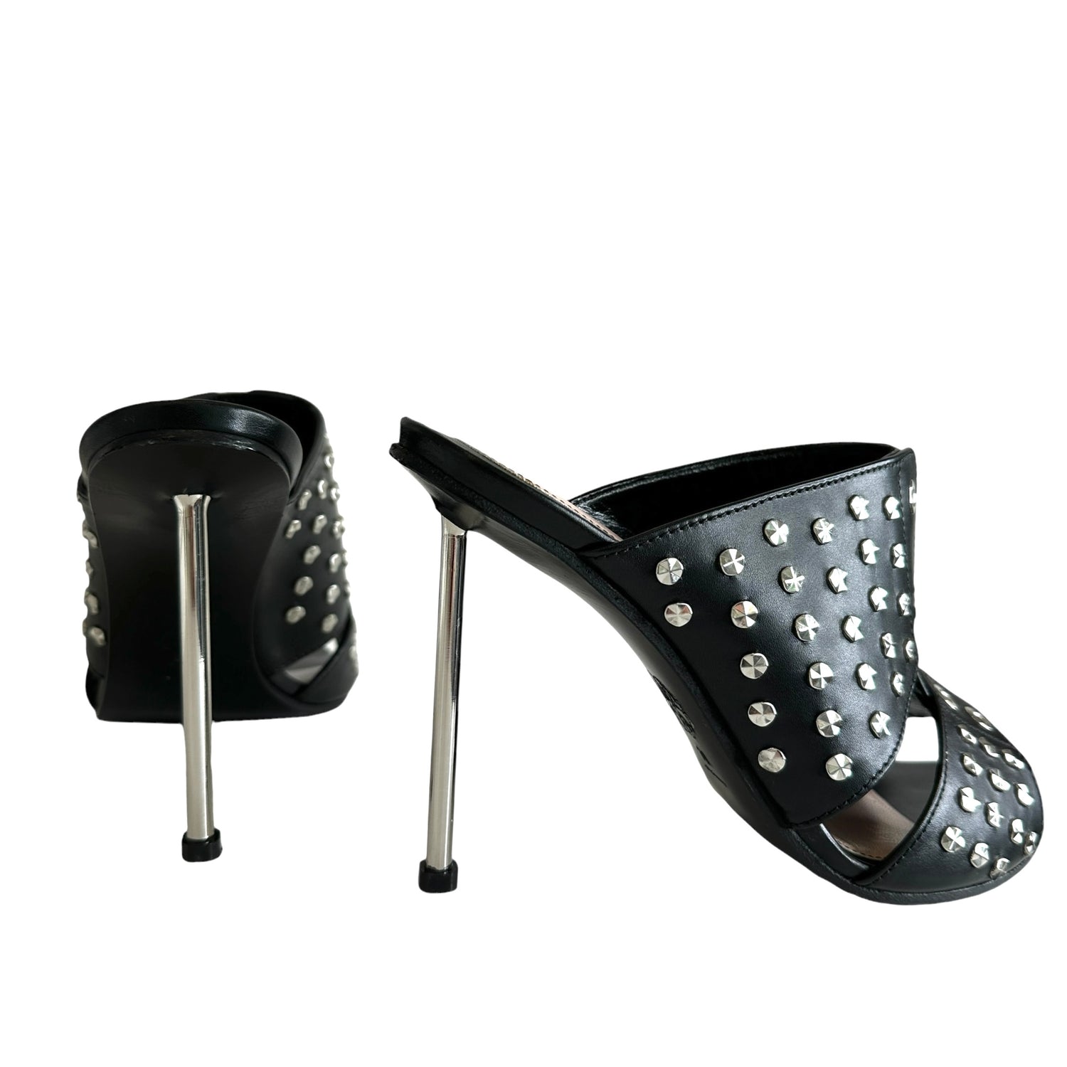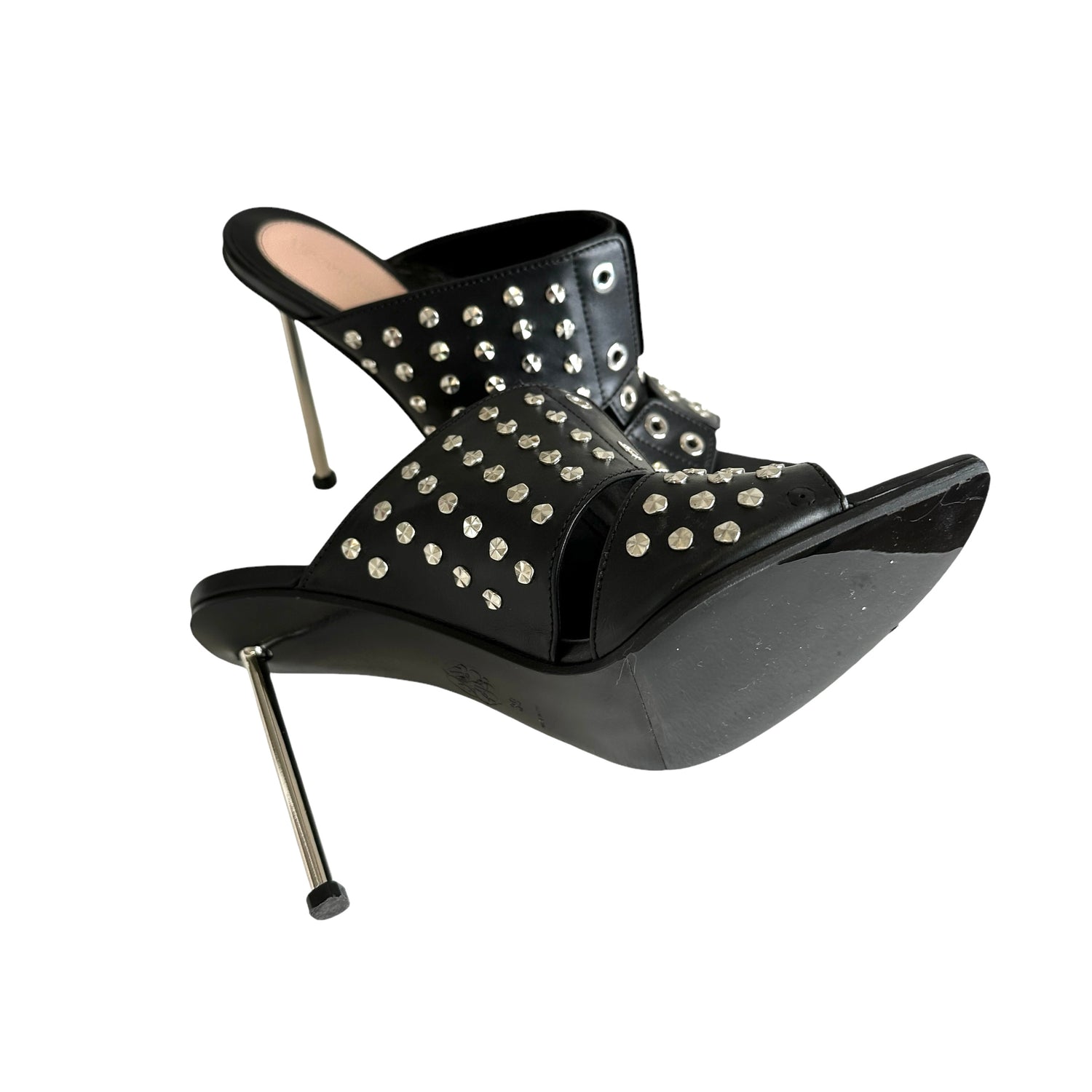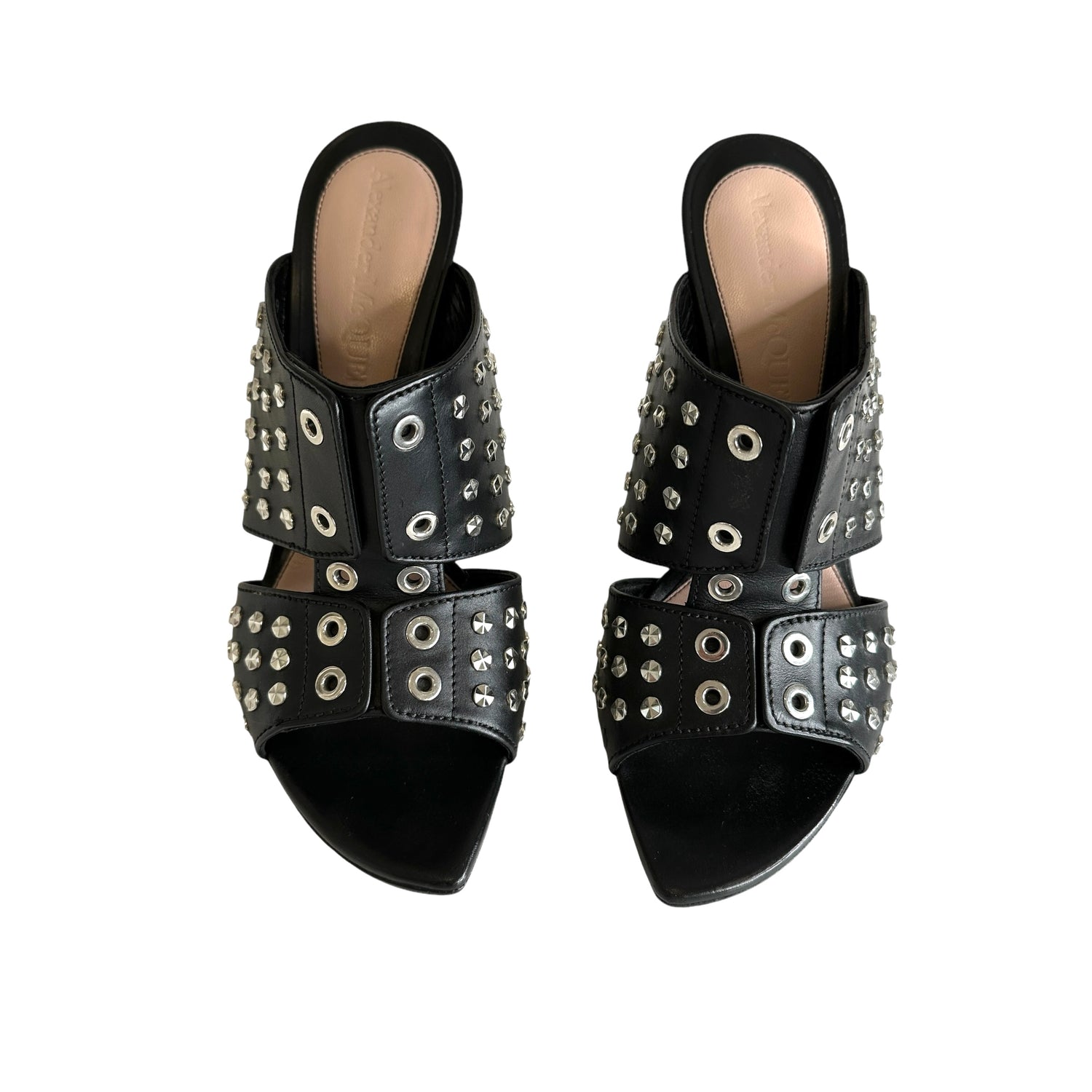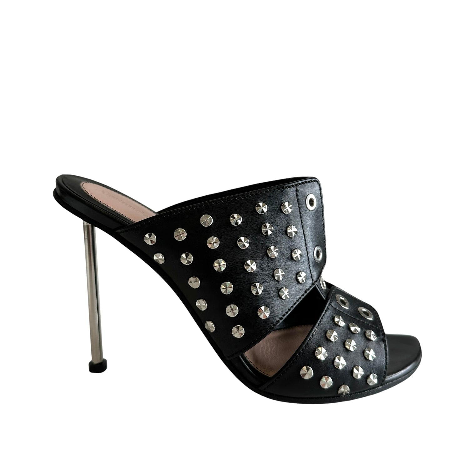 Alexandre McQueen high heels. Open toe. Silver metal heels. Designer size 39 (Insoles 10").