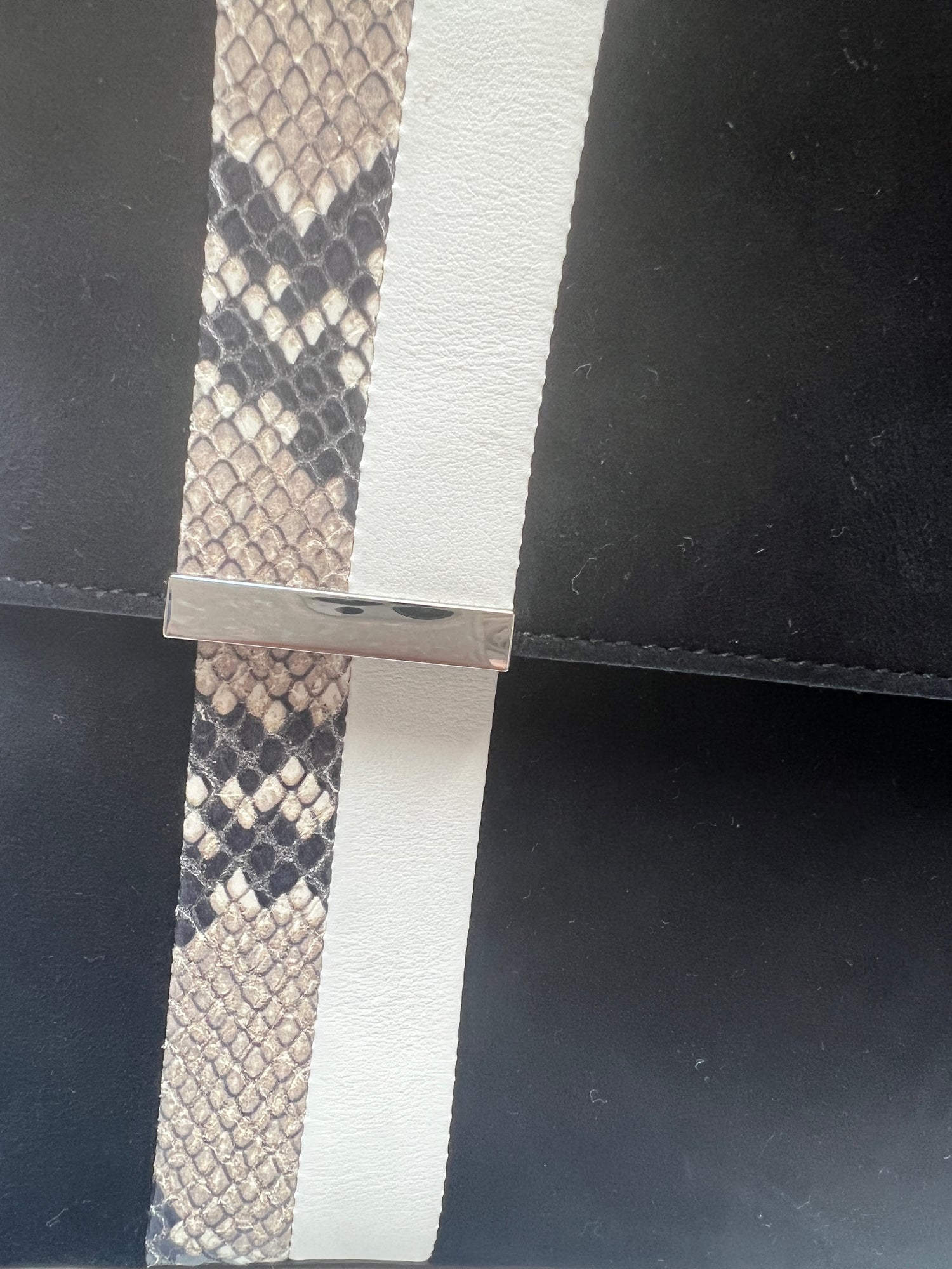 Super cute structured bag. Comes with a strap to be worn at shouler or crossbody. Silver tone hardware.