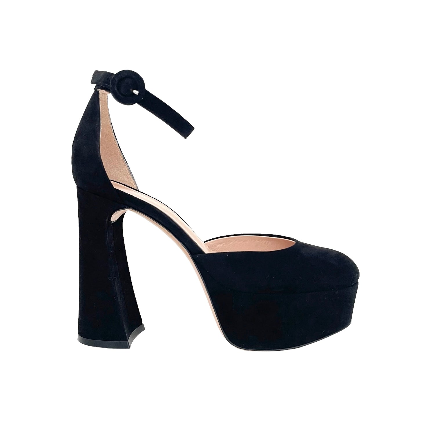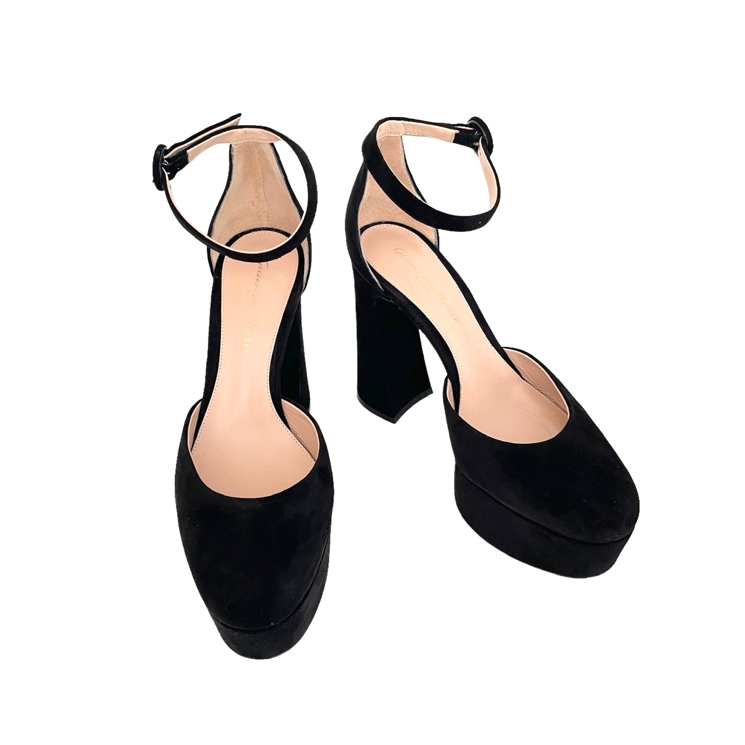 Gianvito Rossi black suede platform heels. Designer size 36.5