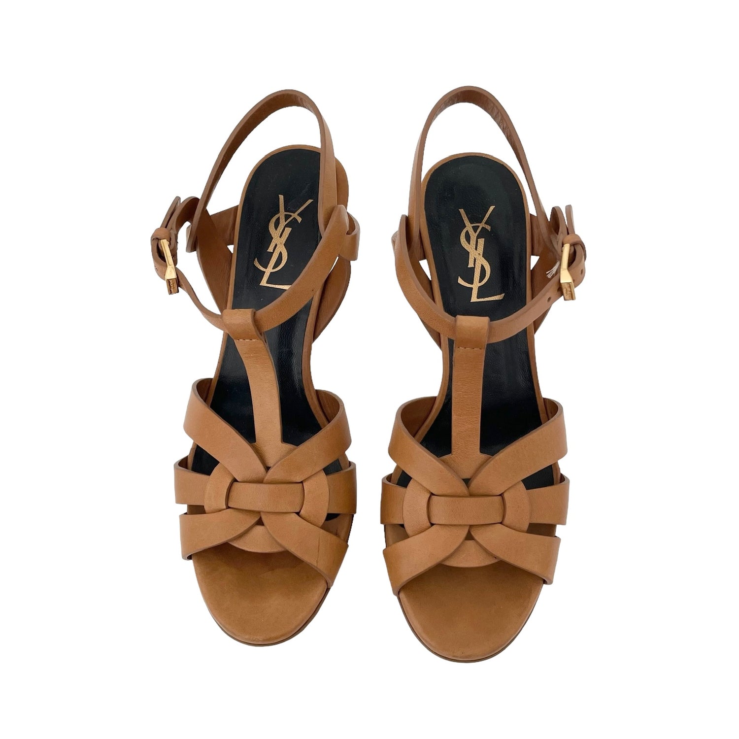 Saint Laurent Tribute brown leather heels. Designer size 36