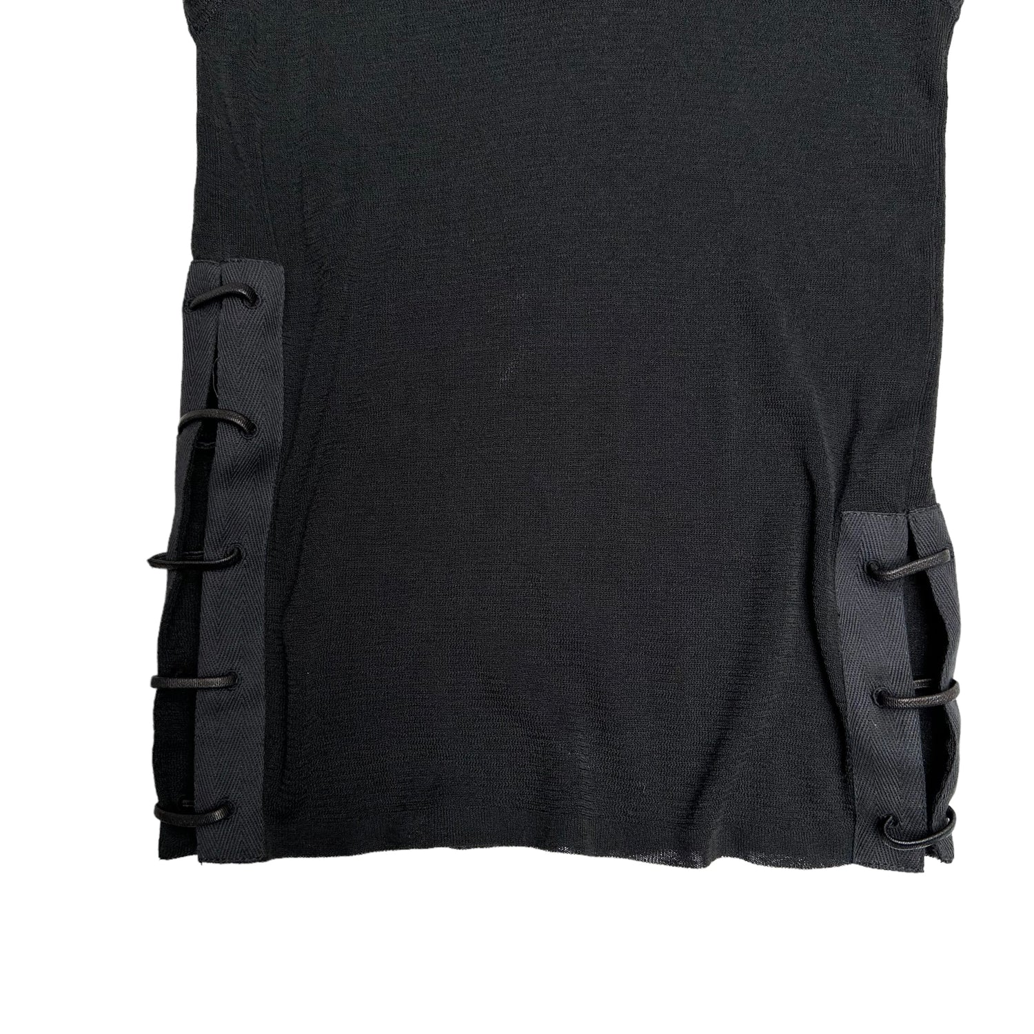 Gucci by Tom Ford black vintage tank top. Leather tassels at bottom. Designer size XS.