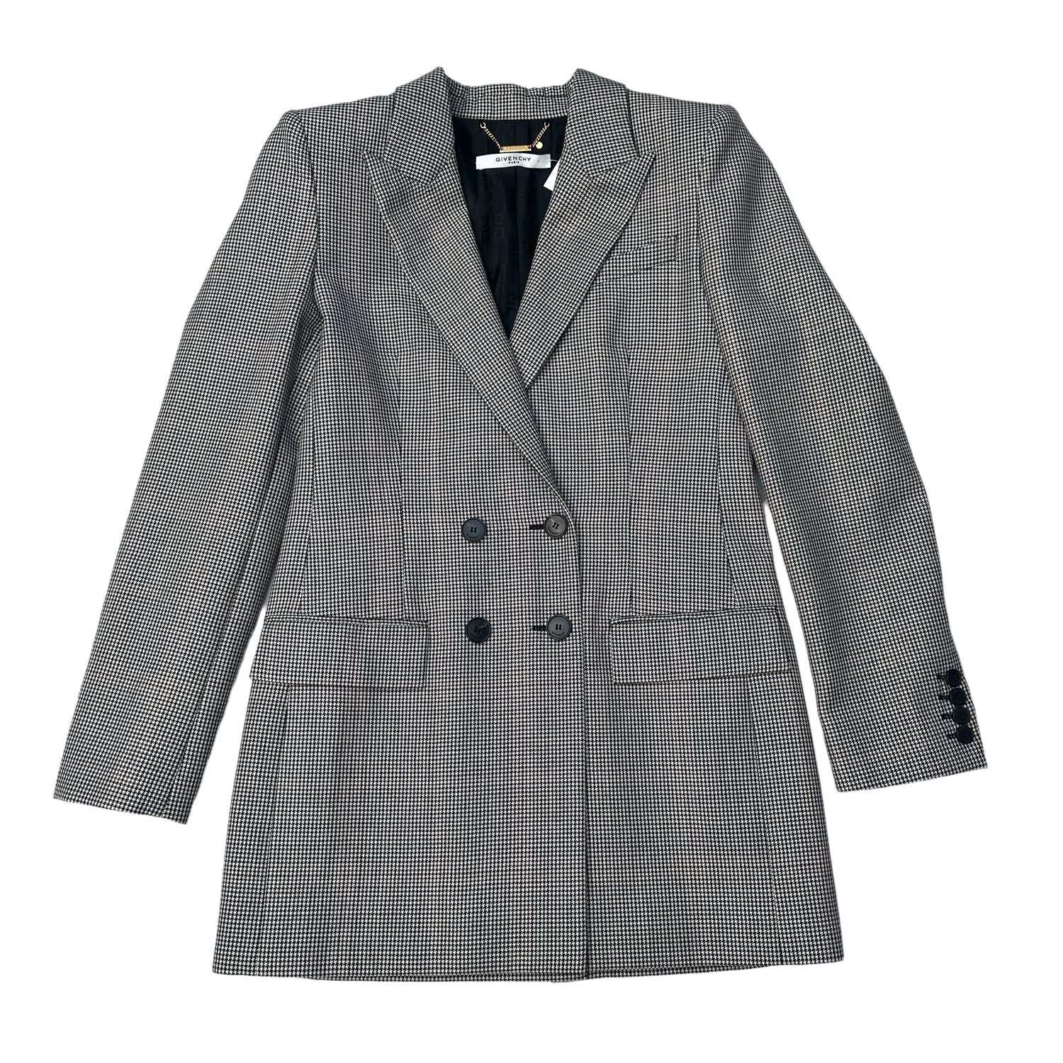 Givenchy blazer. Button closure at front. Pointed collar. Light shoulder padding. Absolutely a chic and staple piece! Designer size 38.